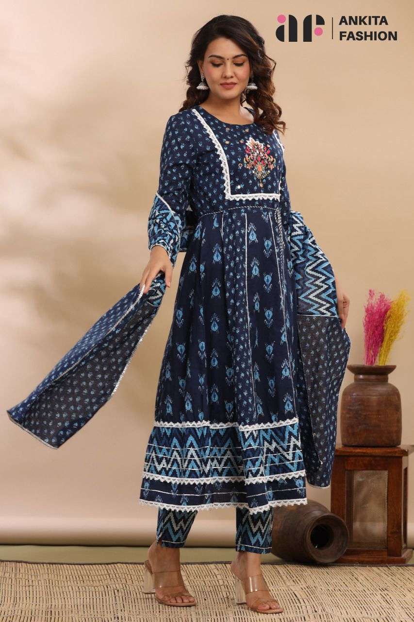 Ankita Fashion Launching New Designer Gown dupatta and bottom It’s finally time to embrace the festivities with a refreshing spin! Fabric :- Pure Cotton maslin with cotton and hand work beautiful dupatta and bottom Rate :- 1495/- Ready to dispatch |