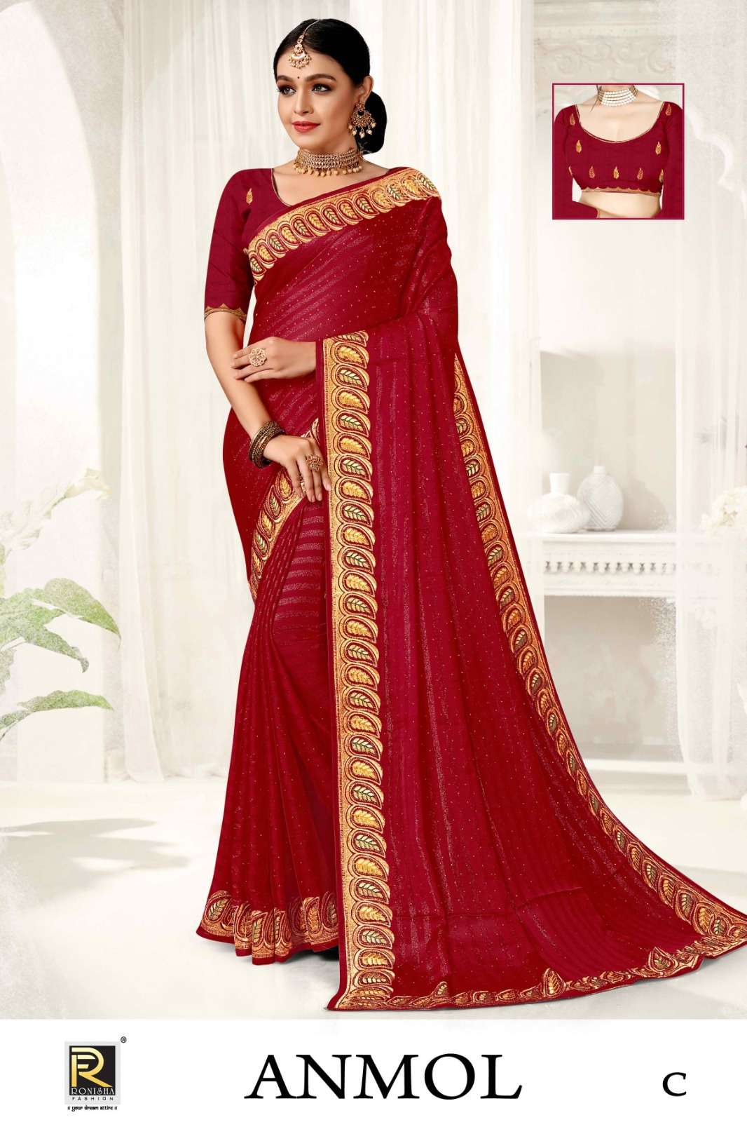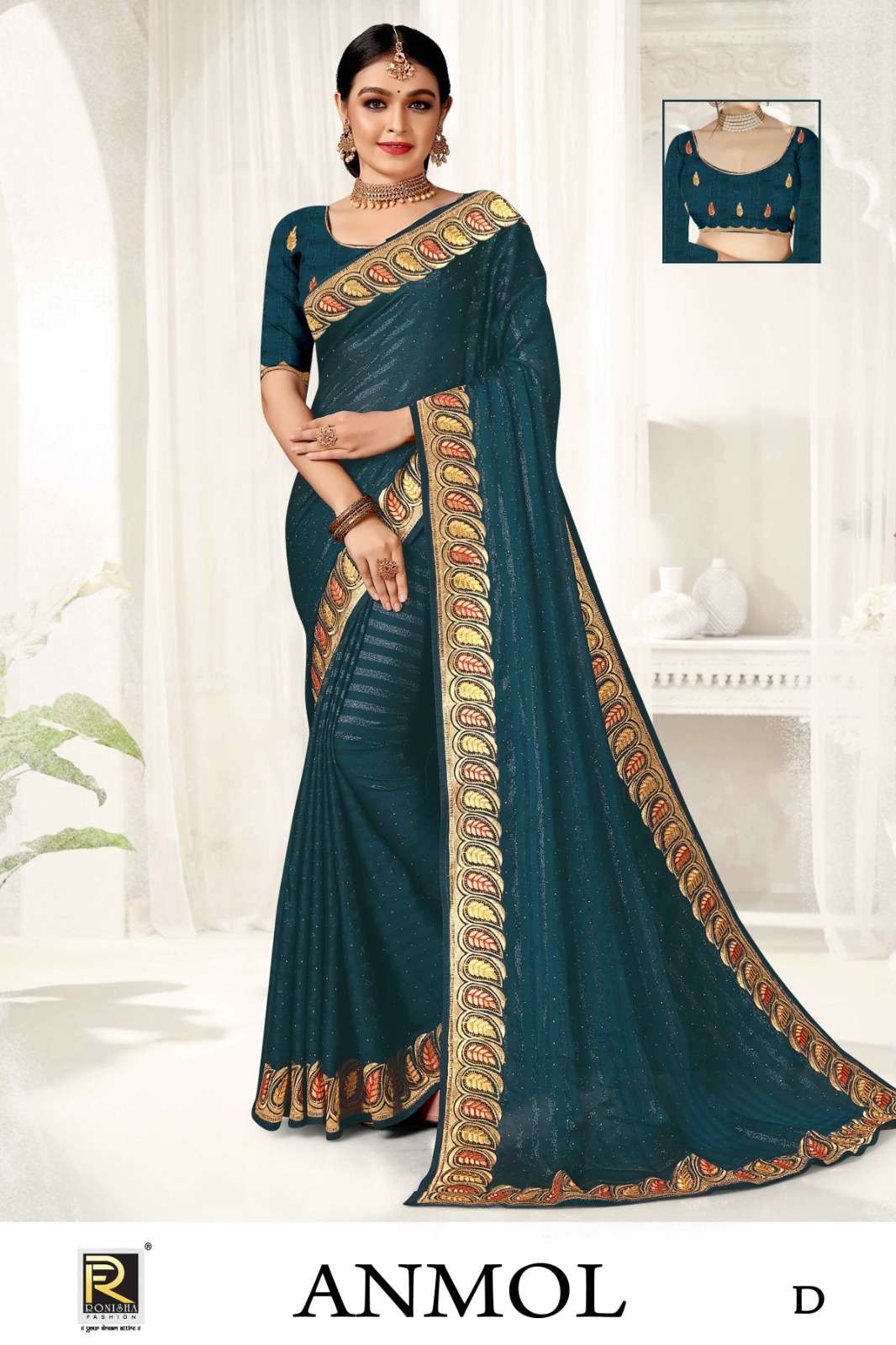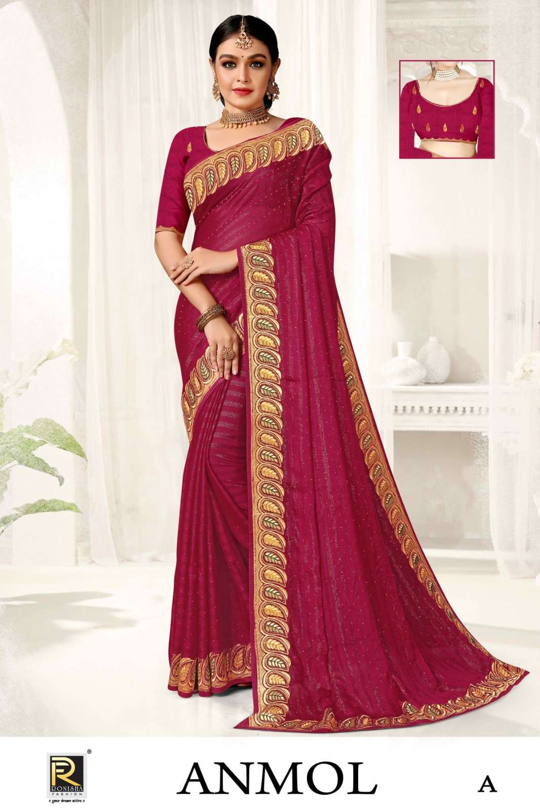 ANMOL BY RANJNA SAREE FANCY FABRICS SELF PETTERN WITH EMBROIDERY WORK AND SIROSKI DIAMOND WORK SUPER HIT COLLECTION