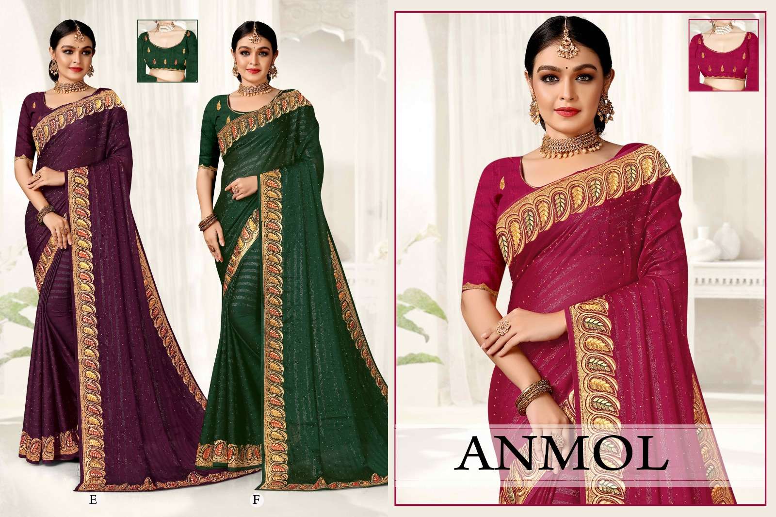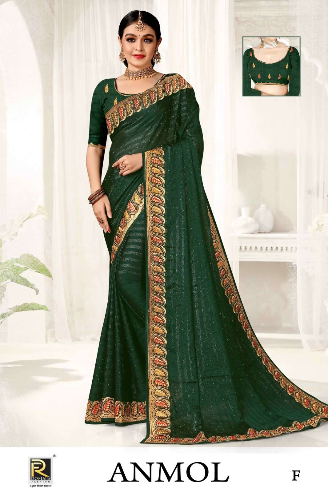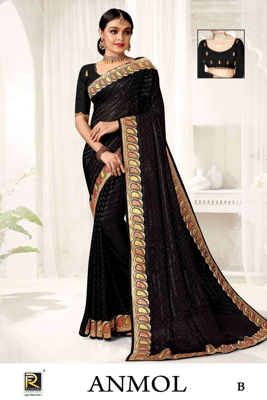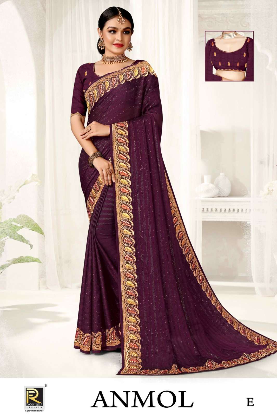 ANMOL BY RANJNA SAREE FANCY FABRICS SELF PETTERN WITH EMBROIDERY WORK AND SIROSKI DIAMOND WORK SUPER HIT COLLECTION