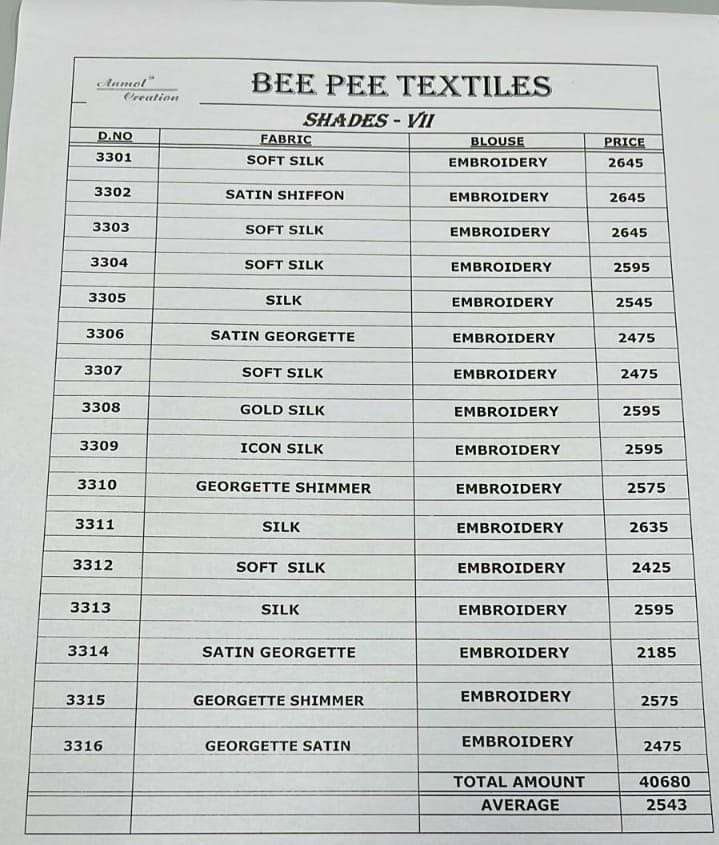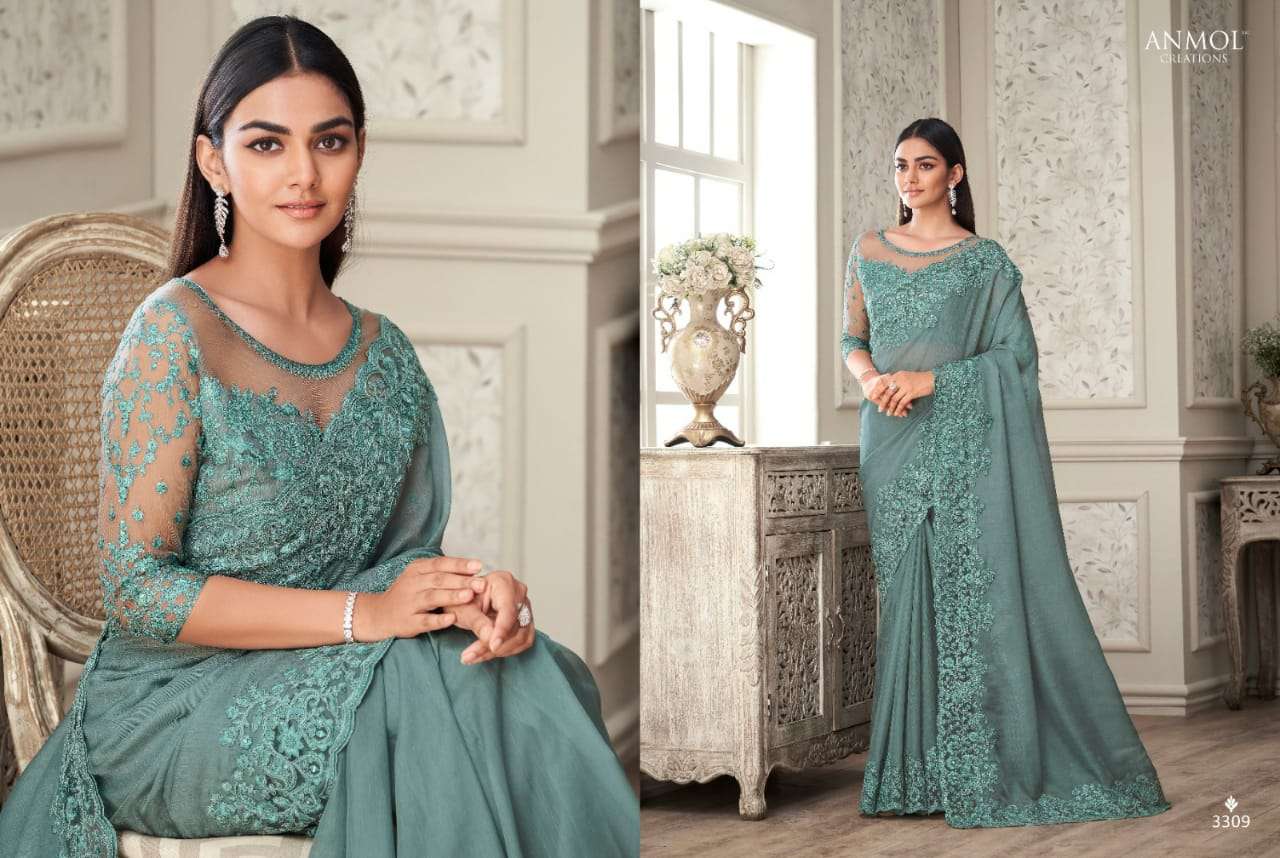 anmol creations shades vol 7 3301-3316 embroidery party wear sarees
