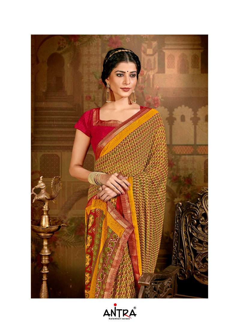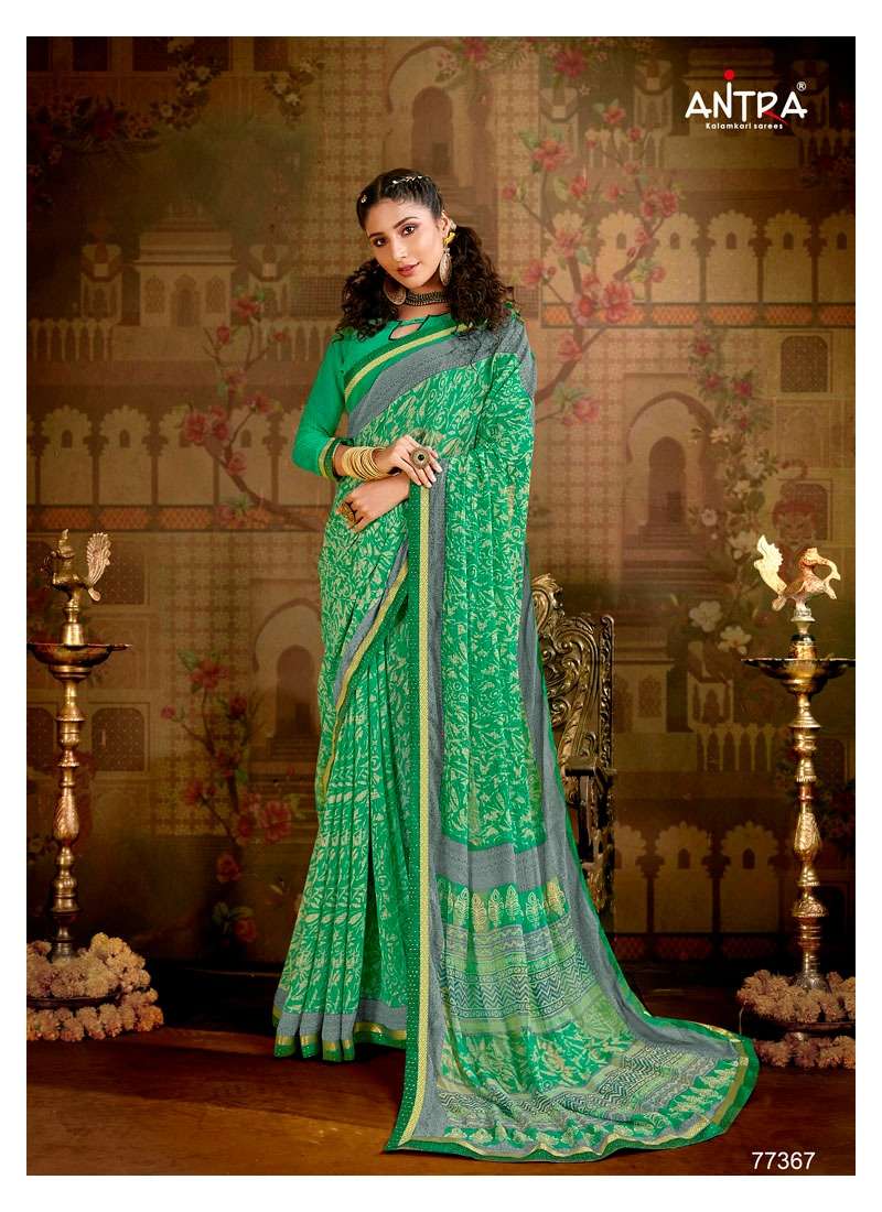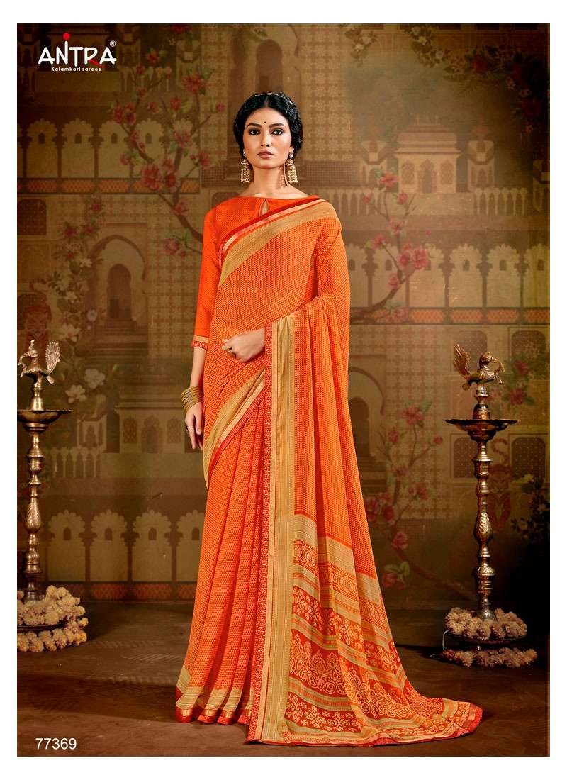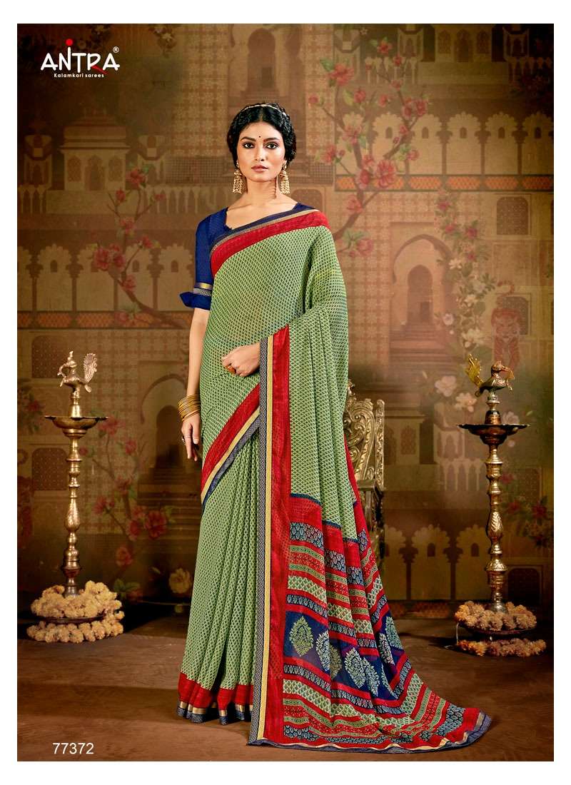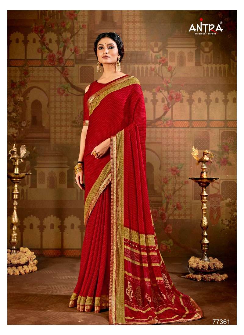 Brand = ANTRA Catalog = ALIZA FANCY ALFINO CHIFFON PRINTED SAREE WITH BROCKET LACE Packing : READY |
