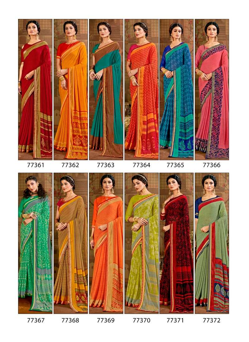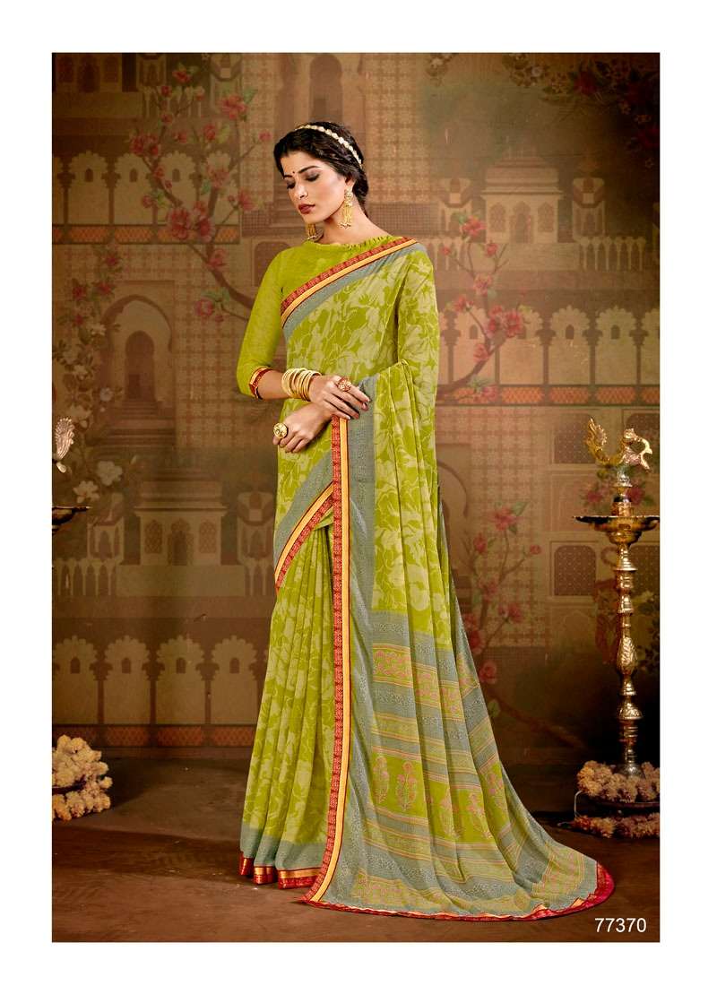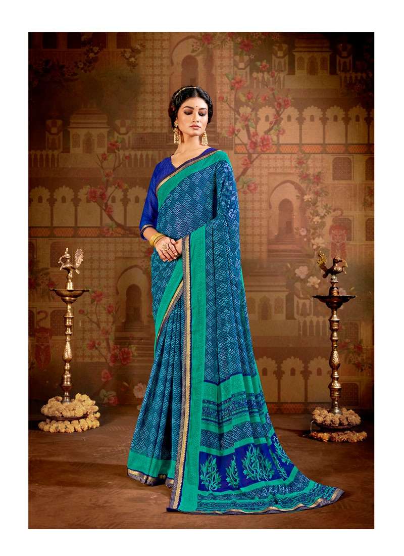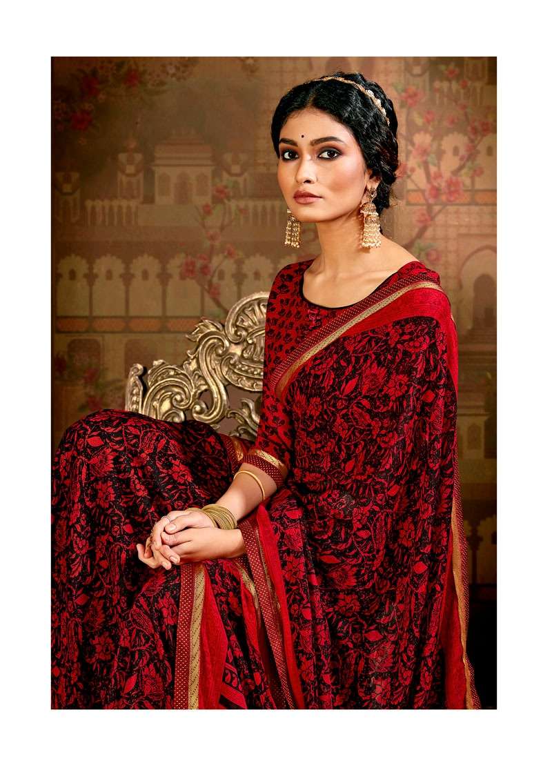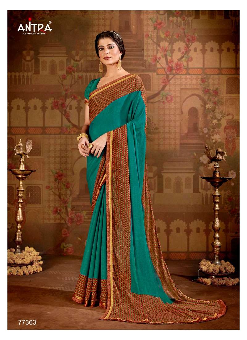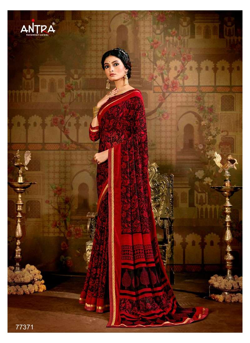 Brand = ANTRA Catalog = ALIZA FANCY ALFINO CHIFFON PRINTED SAREE WITH BROCKET LACE Packing : READY |