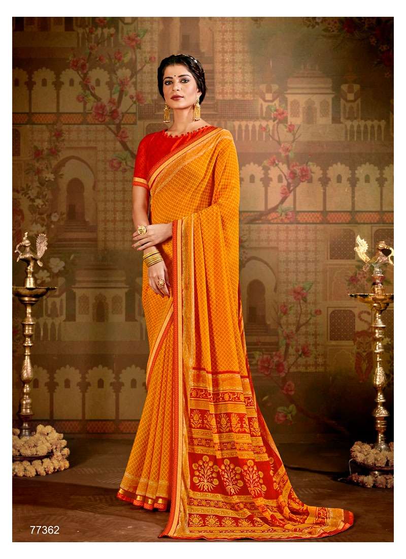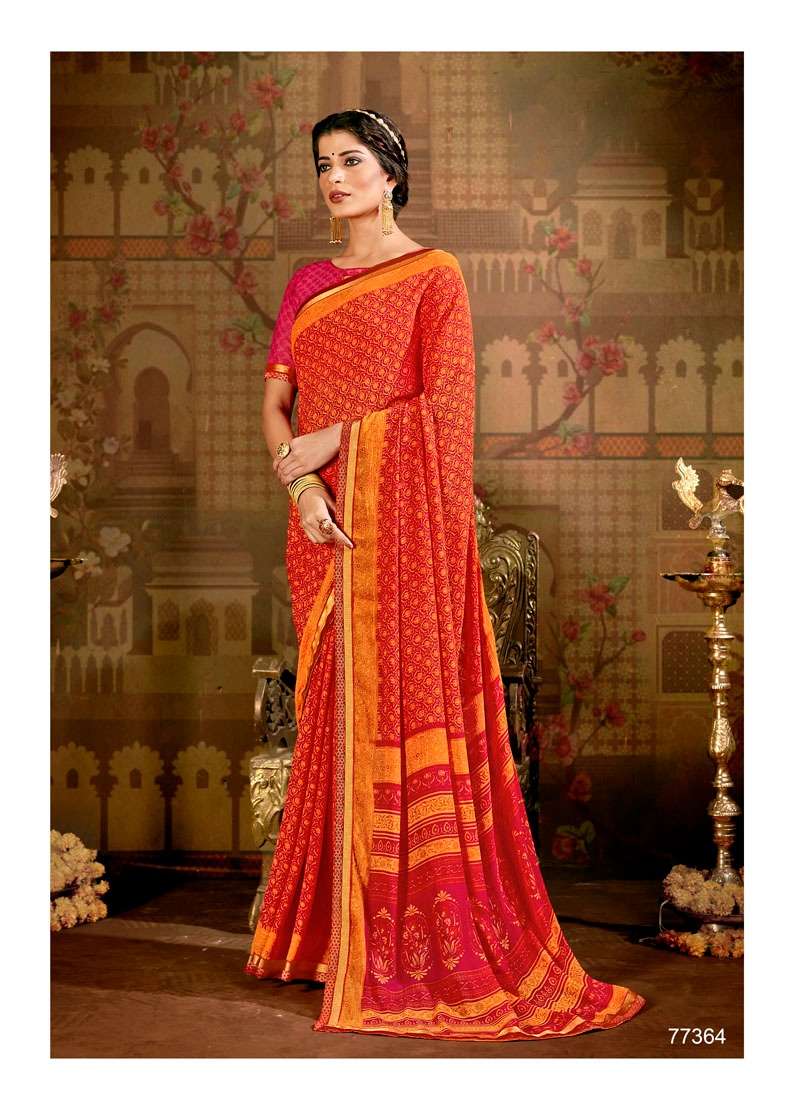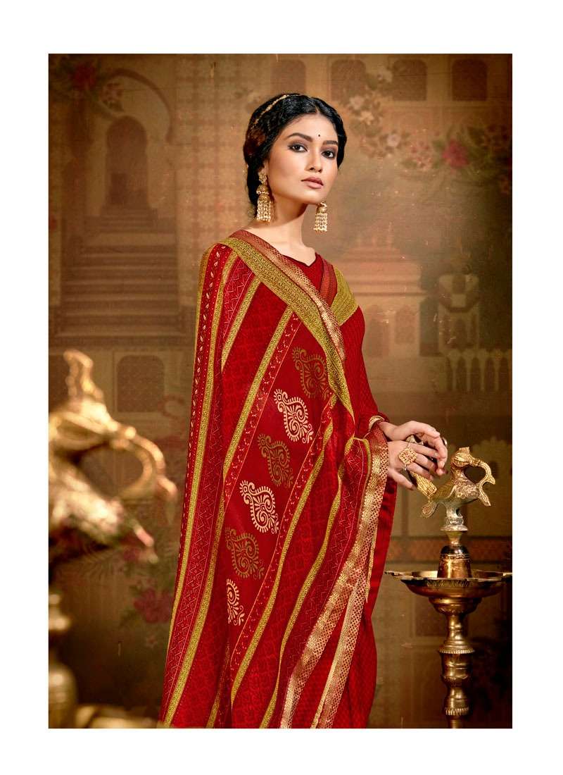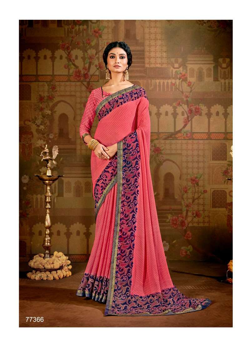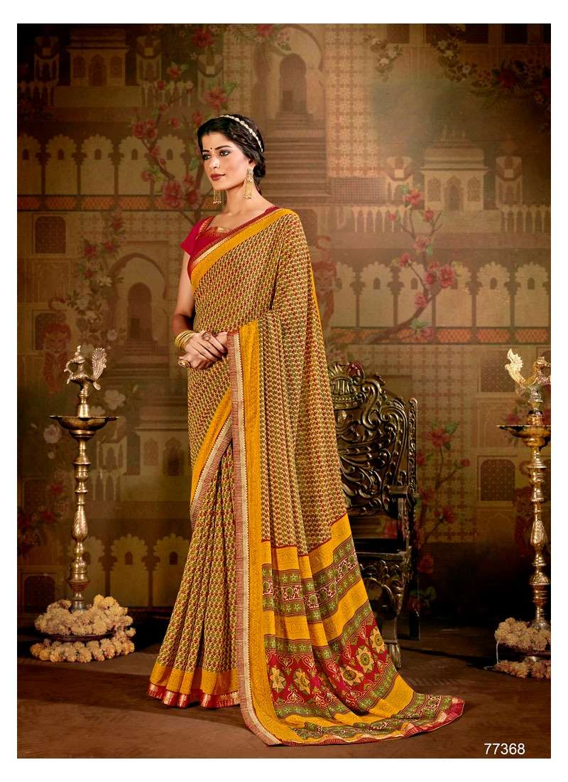 Brand = ANTRA Catalog = ALIZA FANCY ALFINO CHIFFON PRINTED SAREE WITH BROCKET LACE Packing : READY |