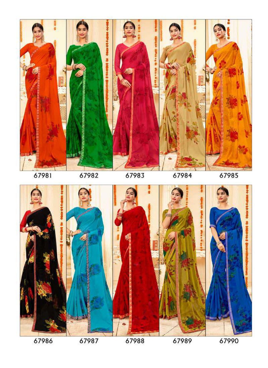 SURAT Catalog :-ANOKHI Volume :-5 Fabric :-60 GRAMS CHIFFON Packing :-BOX Rate- 528 per Pcs . Set to set. GST 5 Percent Extra Cut/Length :-6.3 FANCY CHIFFONE PRINTED SAREE WITH LACE AND PAGO WORK ANTRA LIFESTYLE |