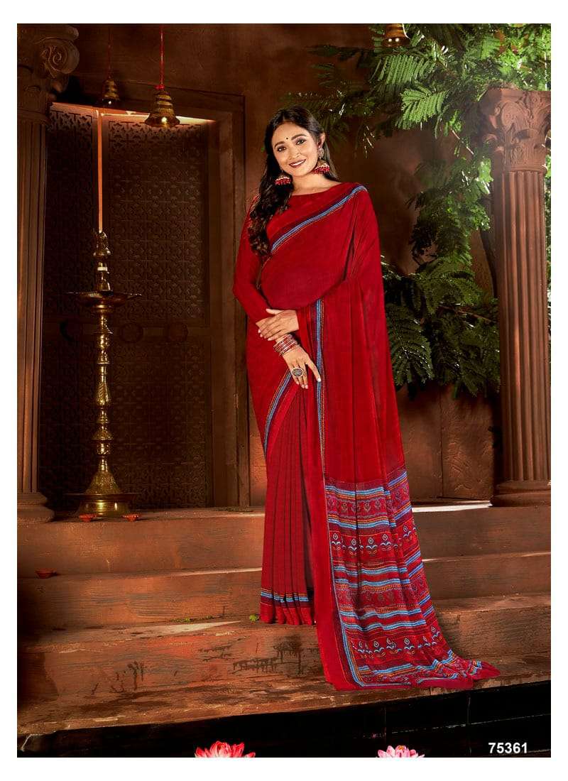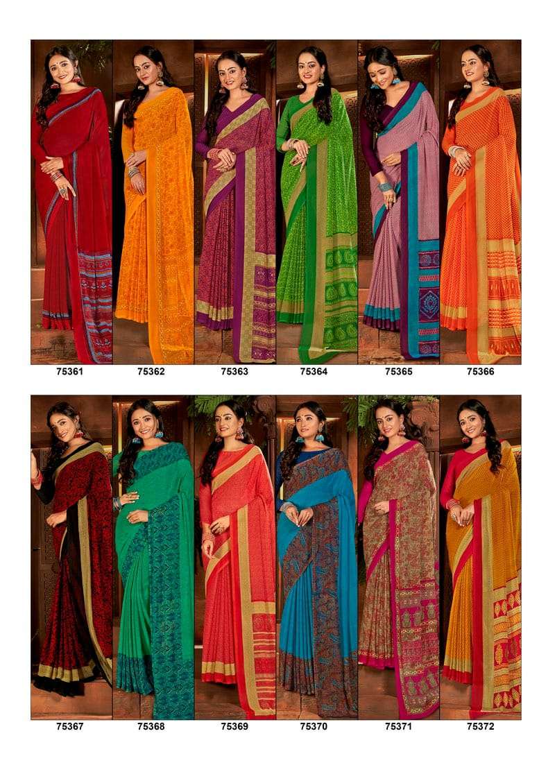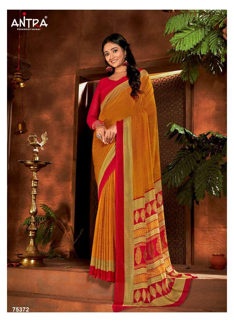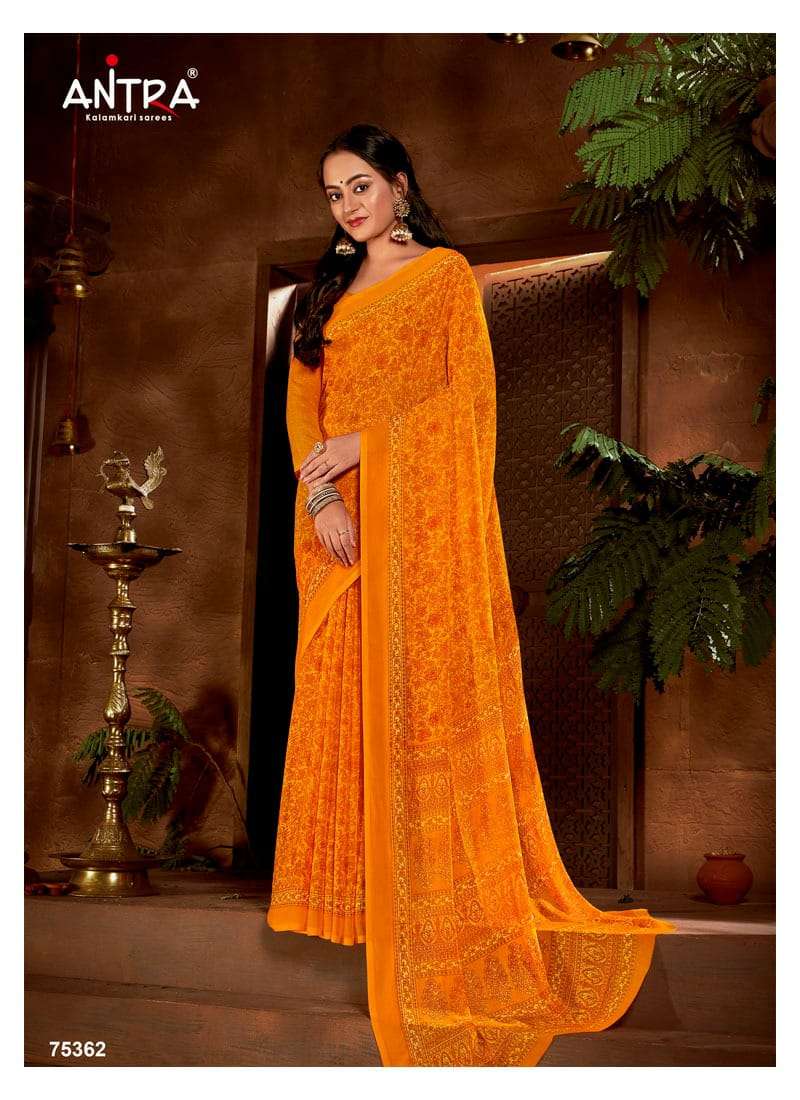Brand = ANTRA Catalog :- ISHANI Volume :- 19 Fabric :- ALFINO CHIFFON Packing :- BOX Ex-mill Price :- *427/-  per pcs * Set to set Cut/Length :- 6.30 ALFINO CHIFFON REGULER PRINT SAREE PACKING - Today |