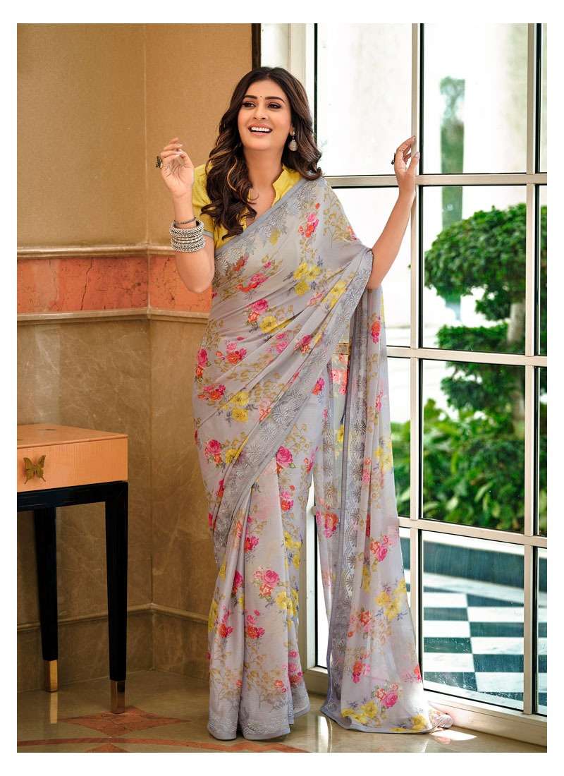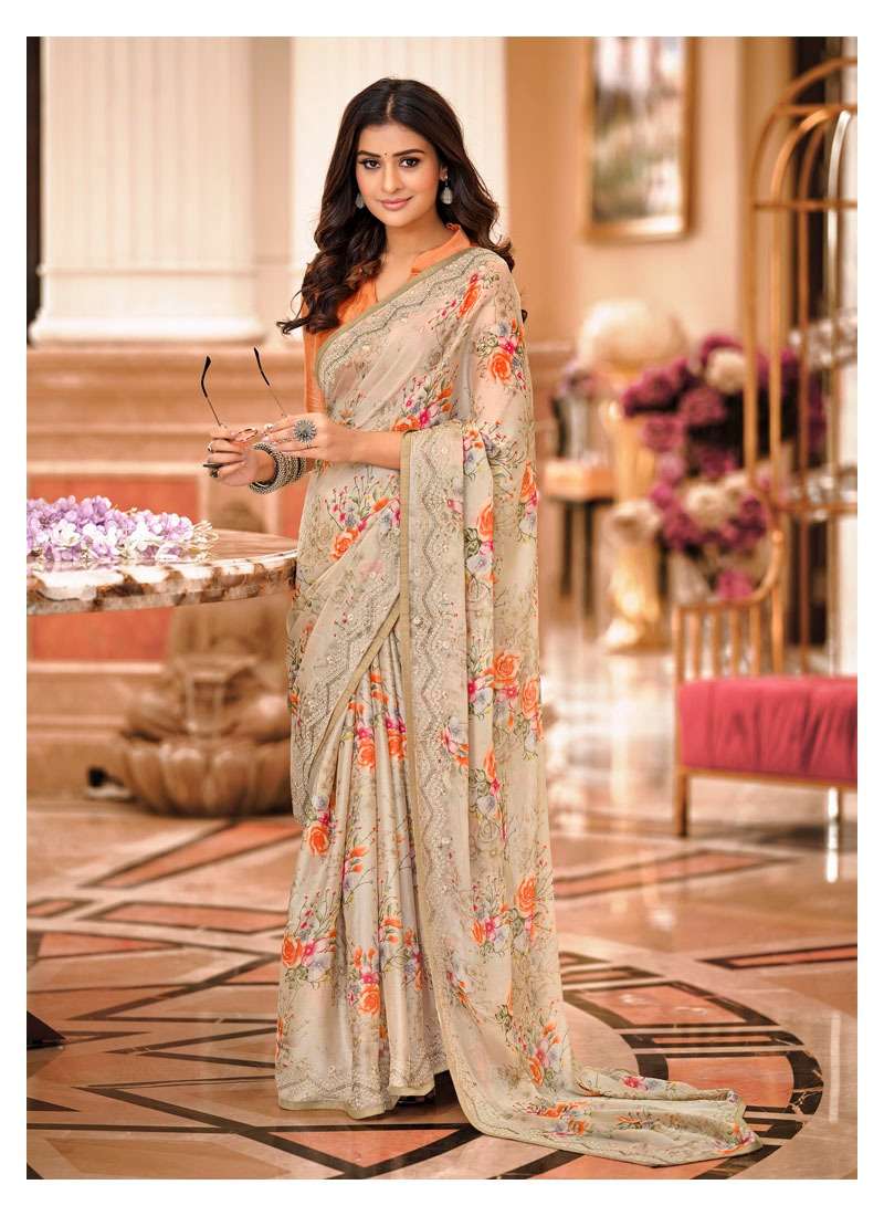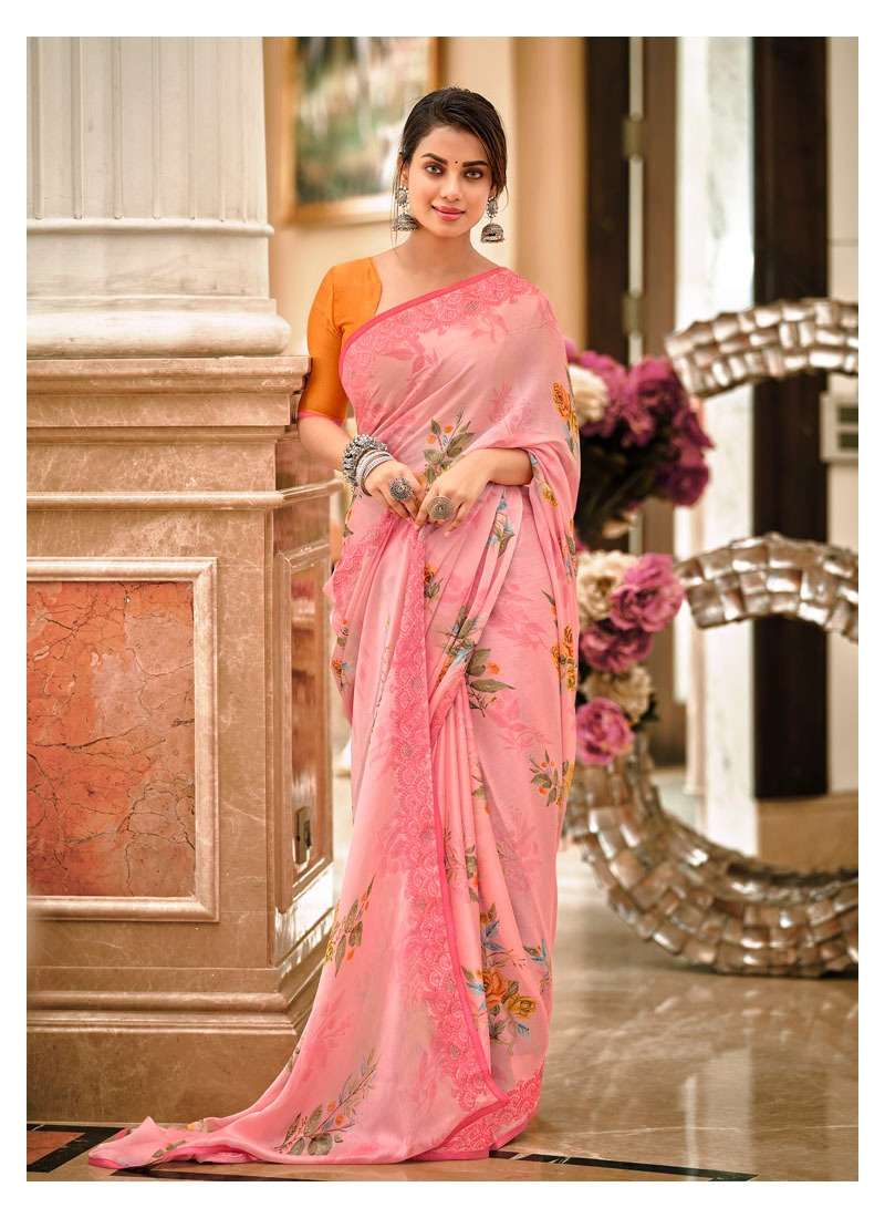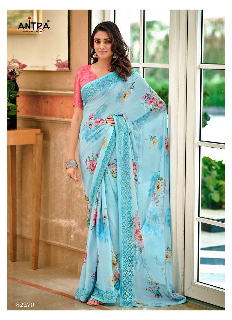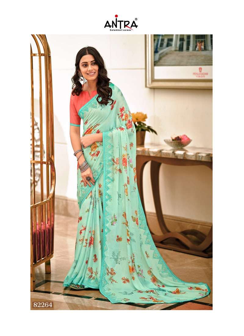 Brand = ANTRA Catalog = JASMINE BEAUTY P/P MOSS CHIFFON PRINT SAREE & LACE |