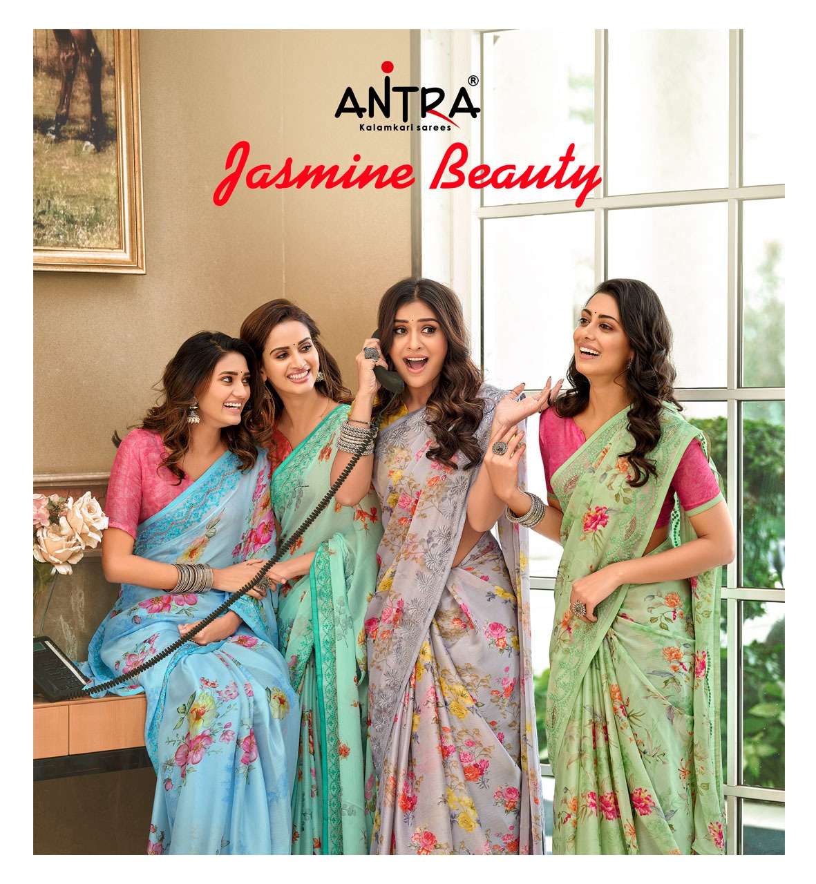antra jasmine beauty vol 1 moss chiffon printed sarees