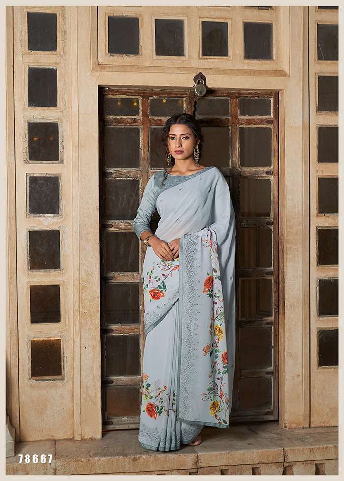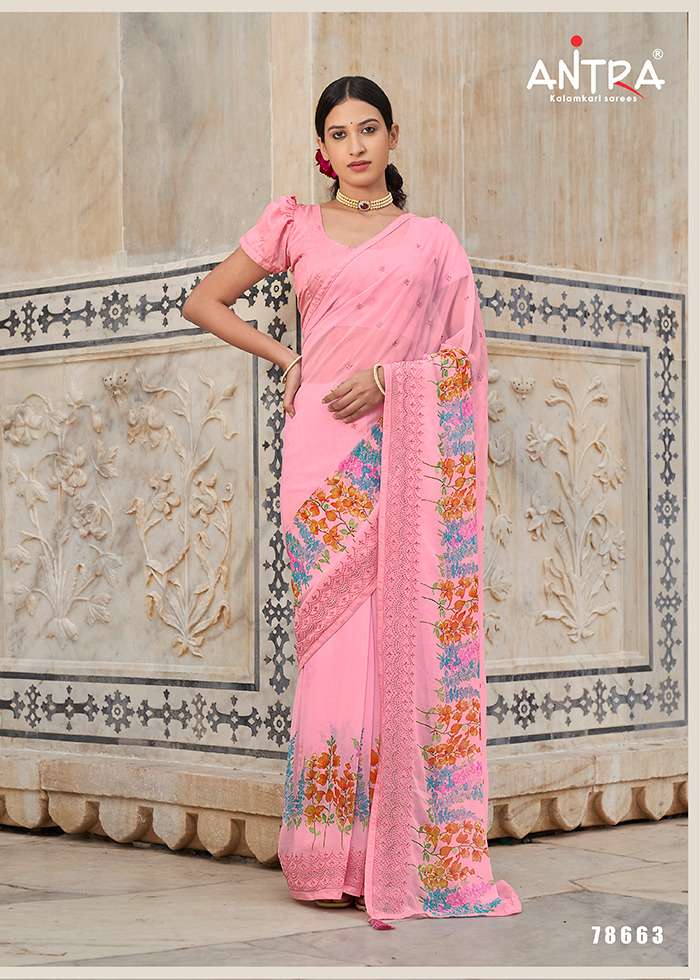 antra lalita vol 1 georgette embroidery designer saree wholesaler