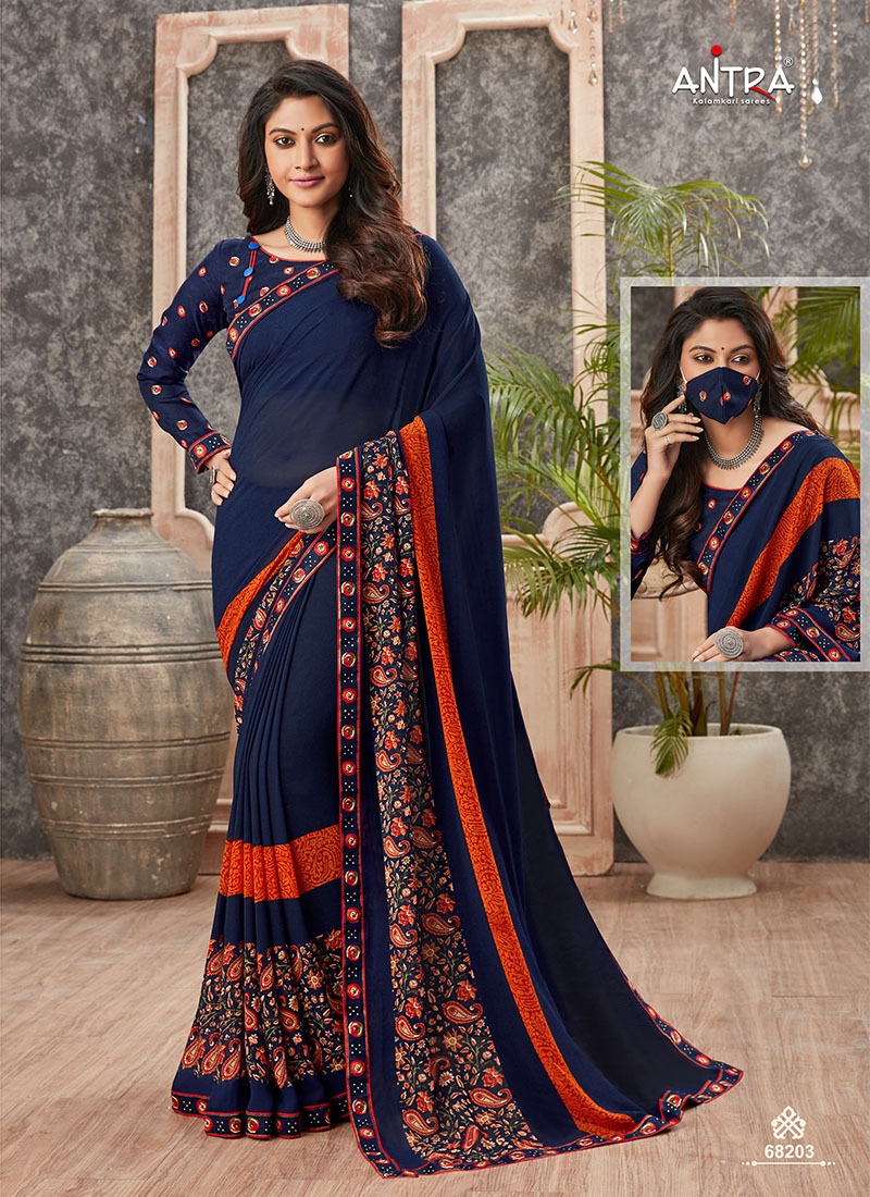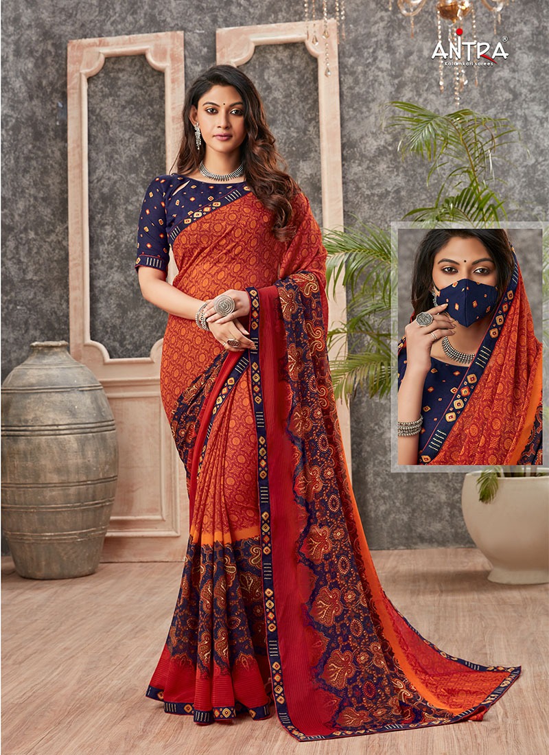 Antra Launch Navrang Fancy Printed Saree With Mask Collection