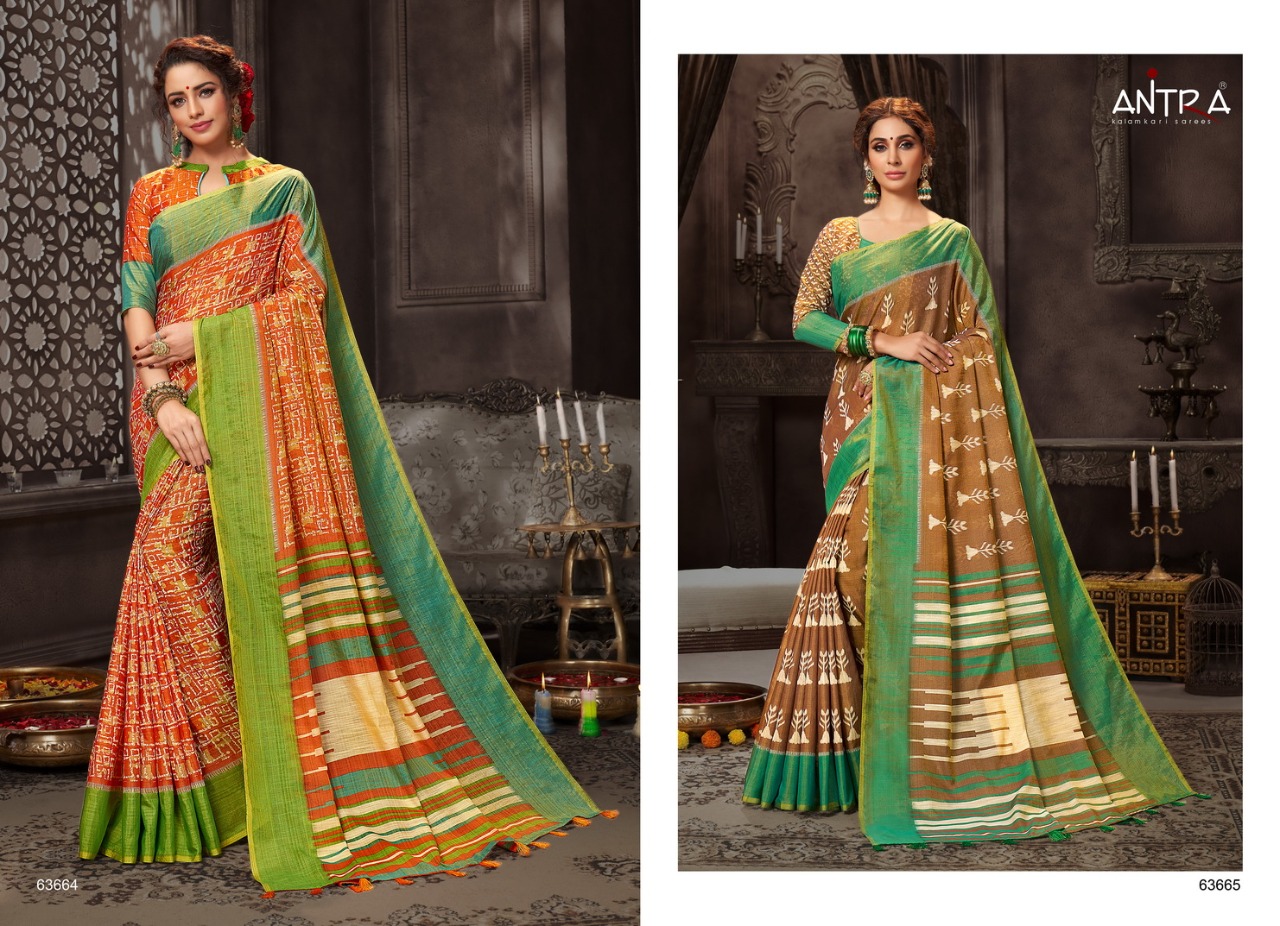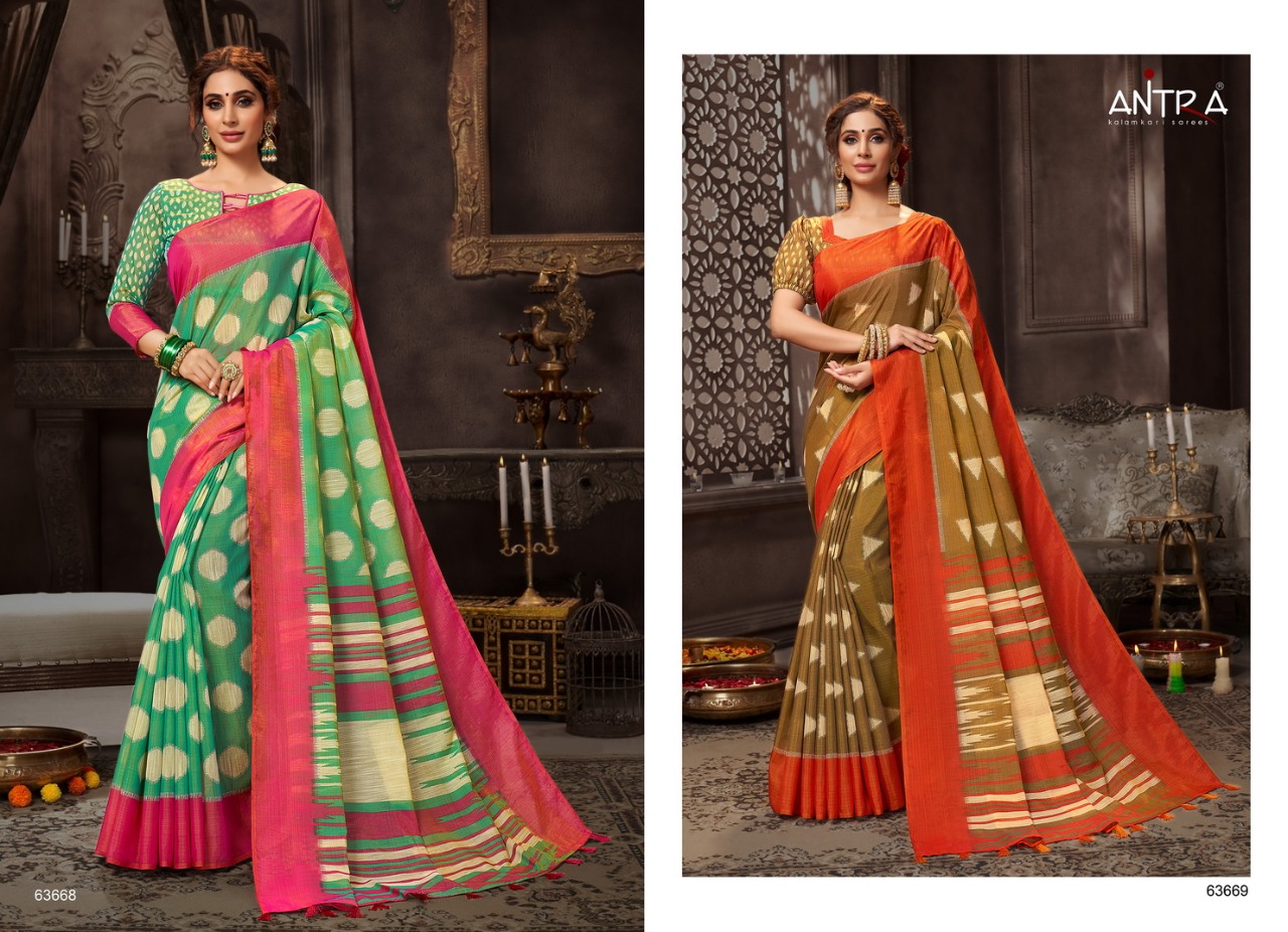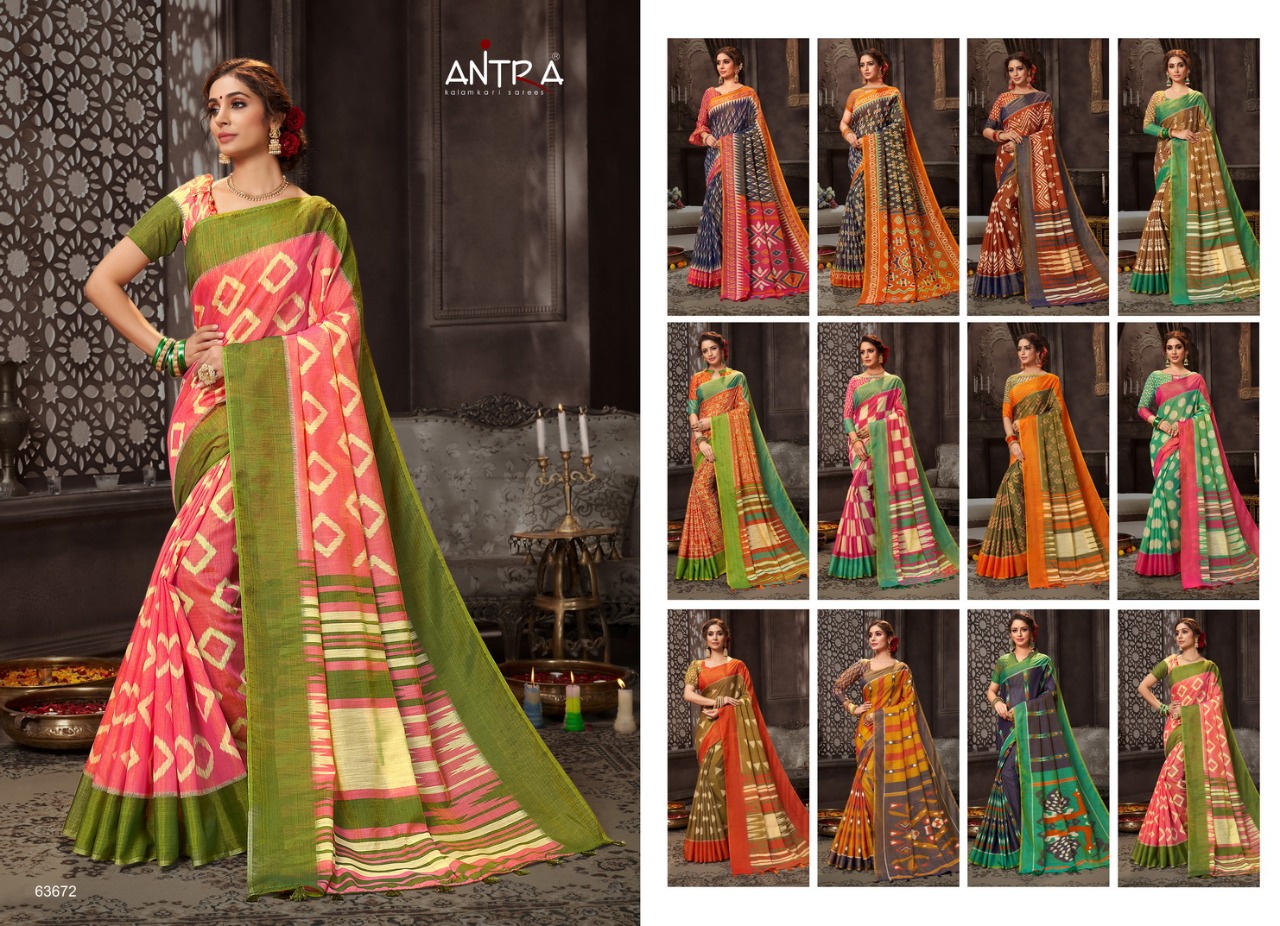 Antra Sarees Presents Latest Collection Launched on 27-09-2019. Presenting Beautiful collection of 12 PCS with Unstitched .