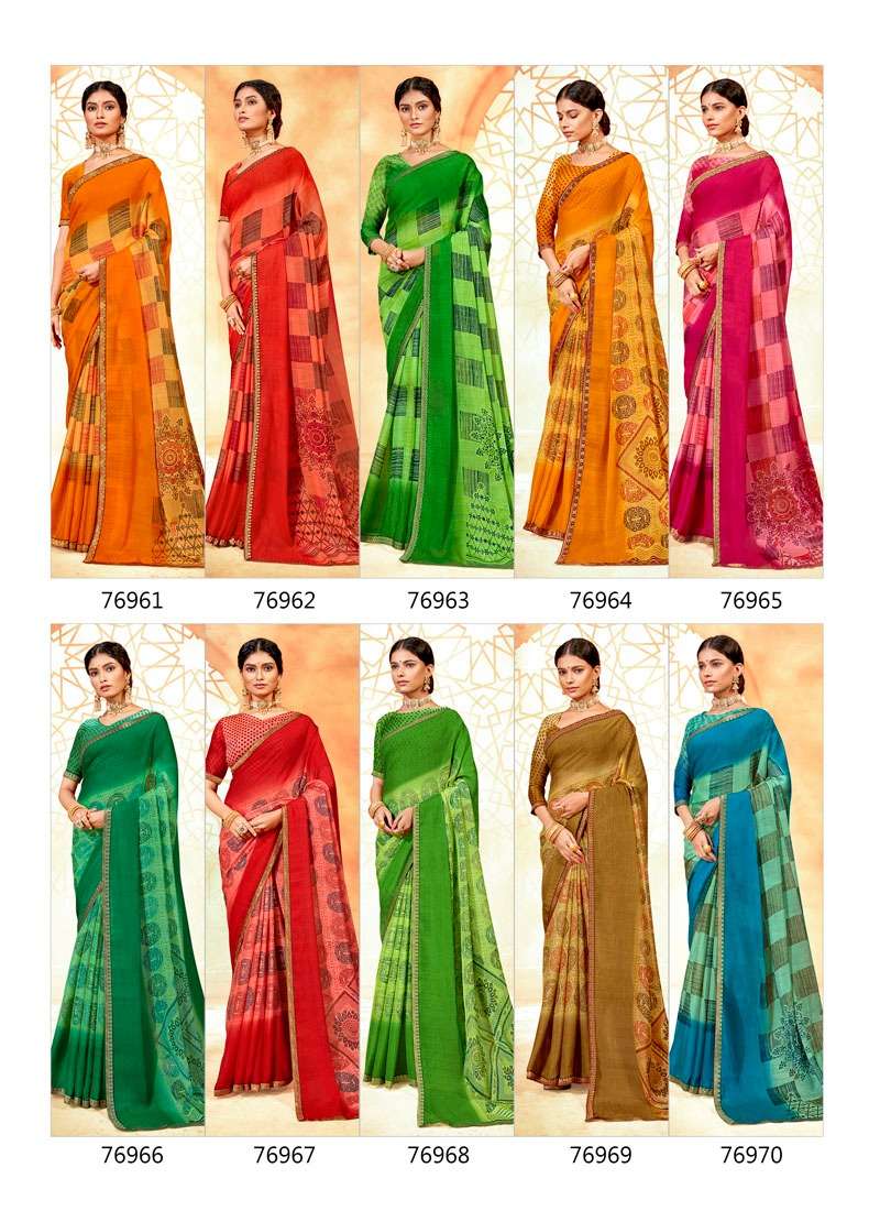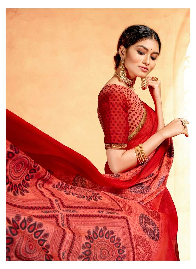 Brand = ANTRA Catalog = UGADI CHIFFON FANCY P/C SHAHI CHIFFON PRINT LACE SAREE AND BLOUSE Packing : READY |