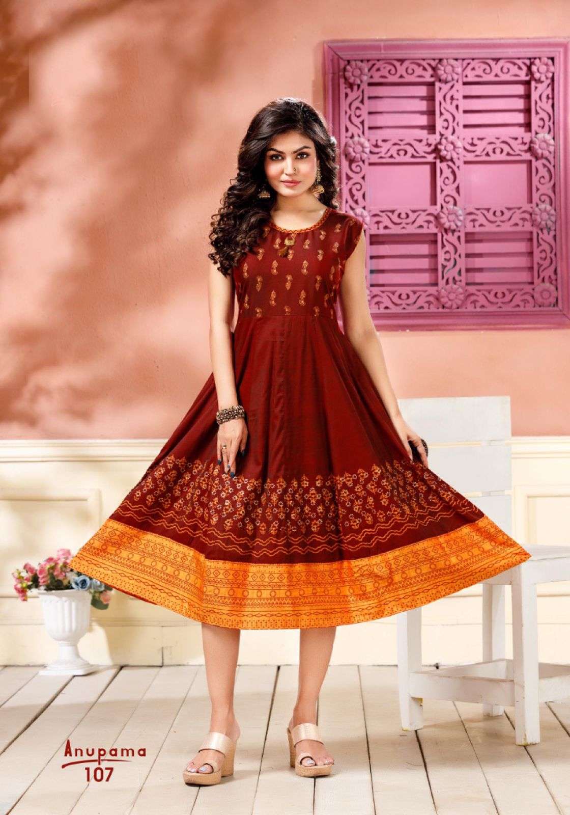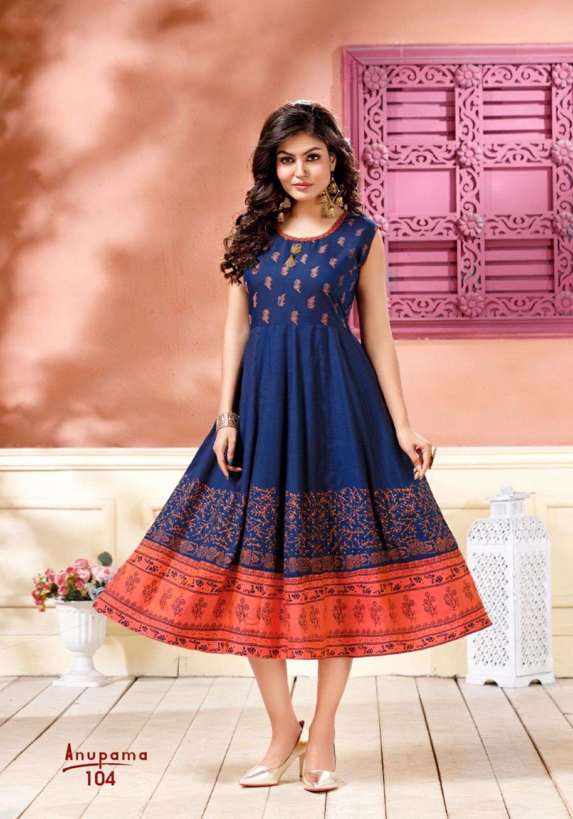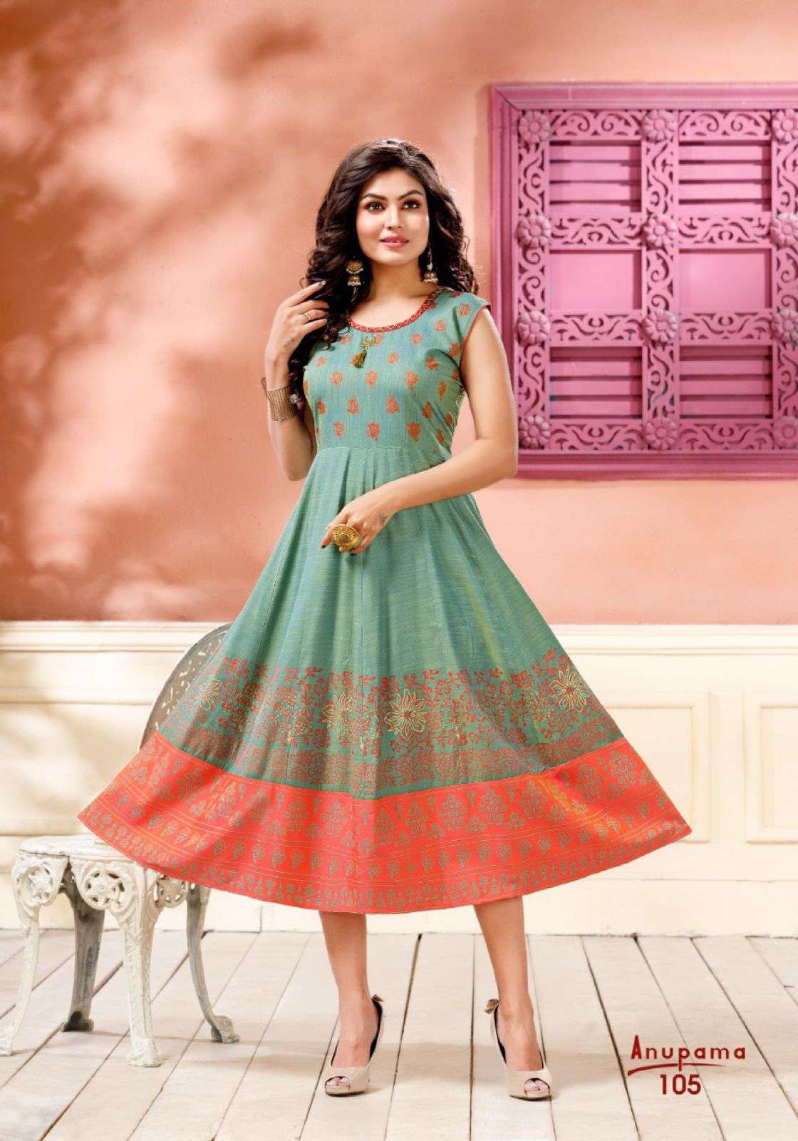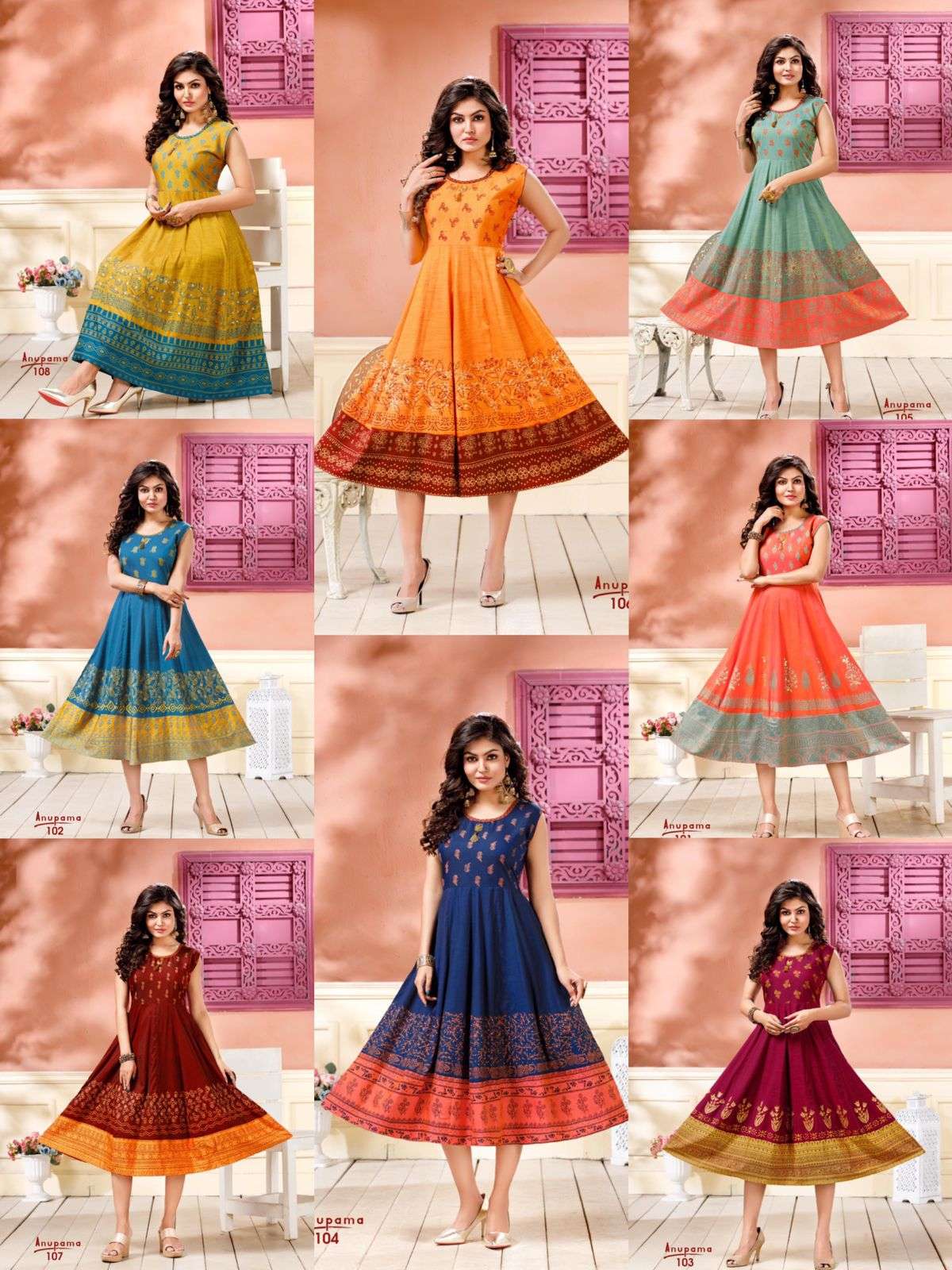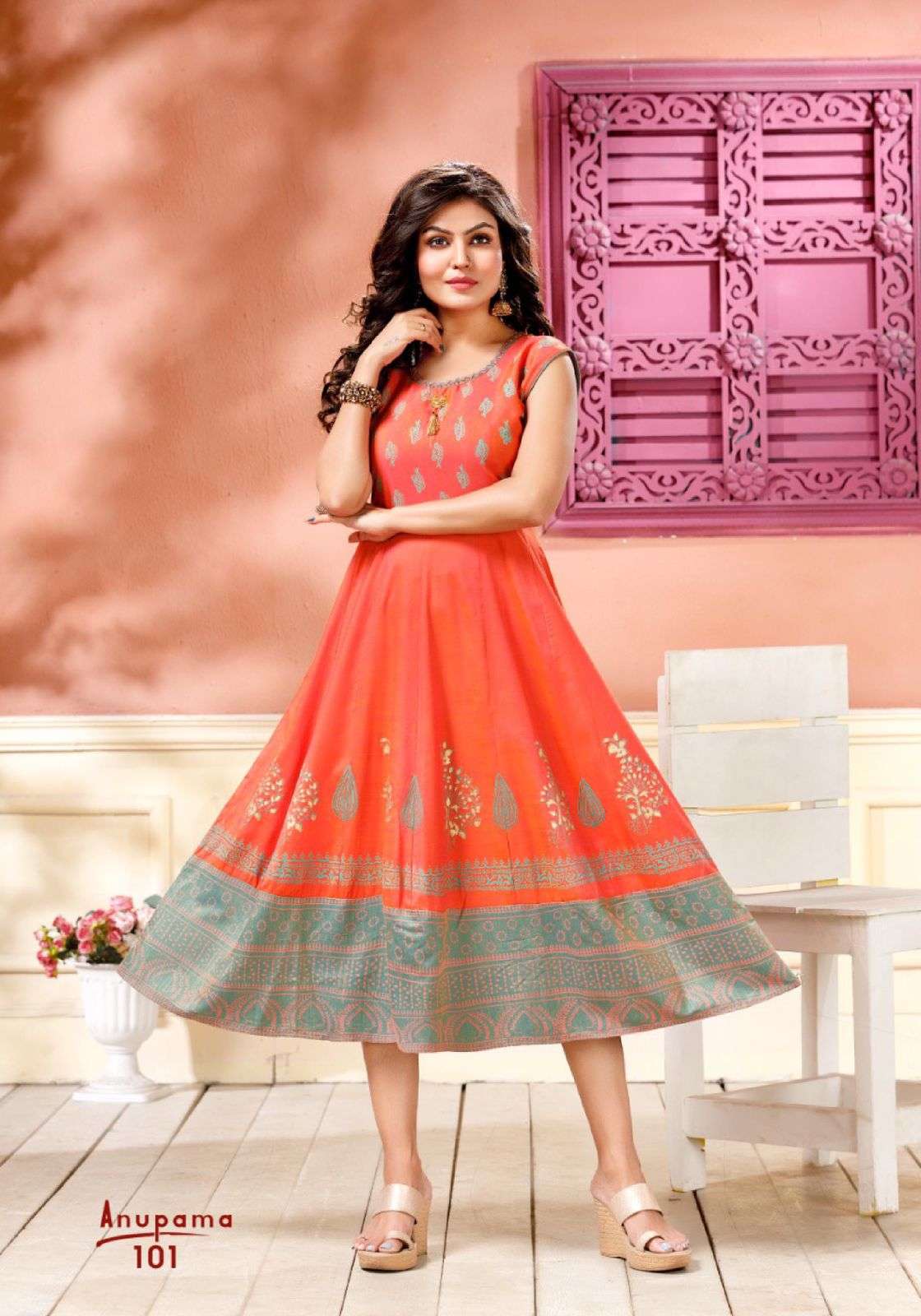 ANUPAMA HEAVY RAYON SILK FABRIC KURTI CATALOG WHOLESALER BEST RATE