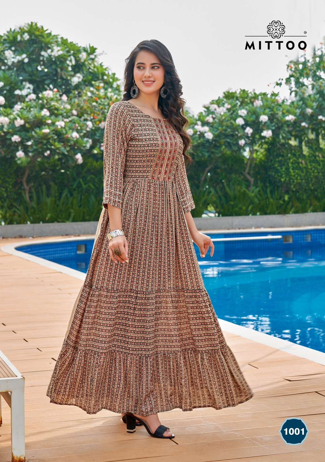 anushree by mittoo readymade rayon wrinkle printed fancy long gowns