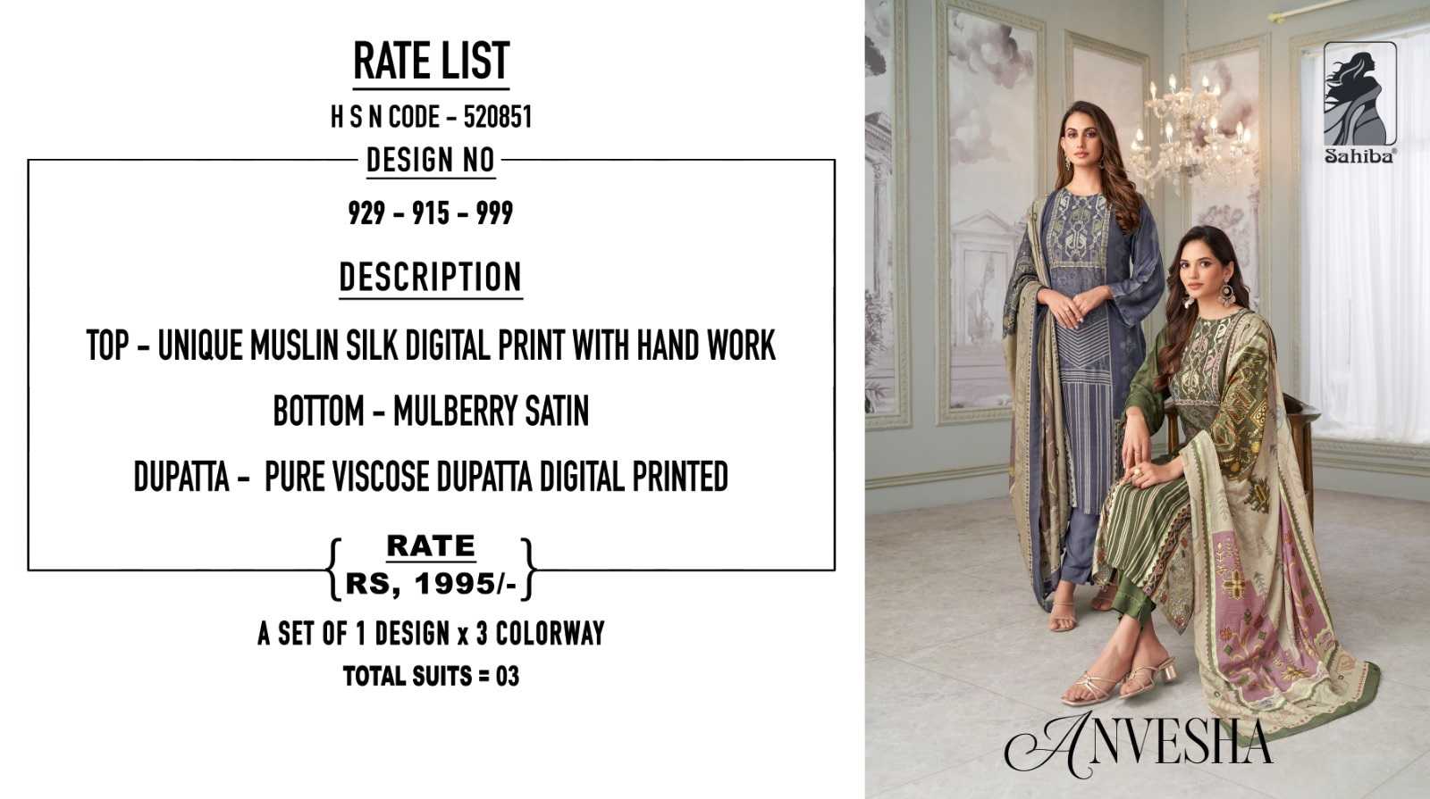 anwesha by sahiba digital print muslin silk 3pcs suits exports