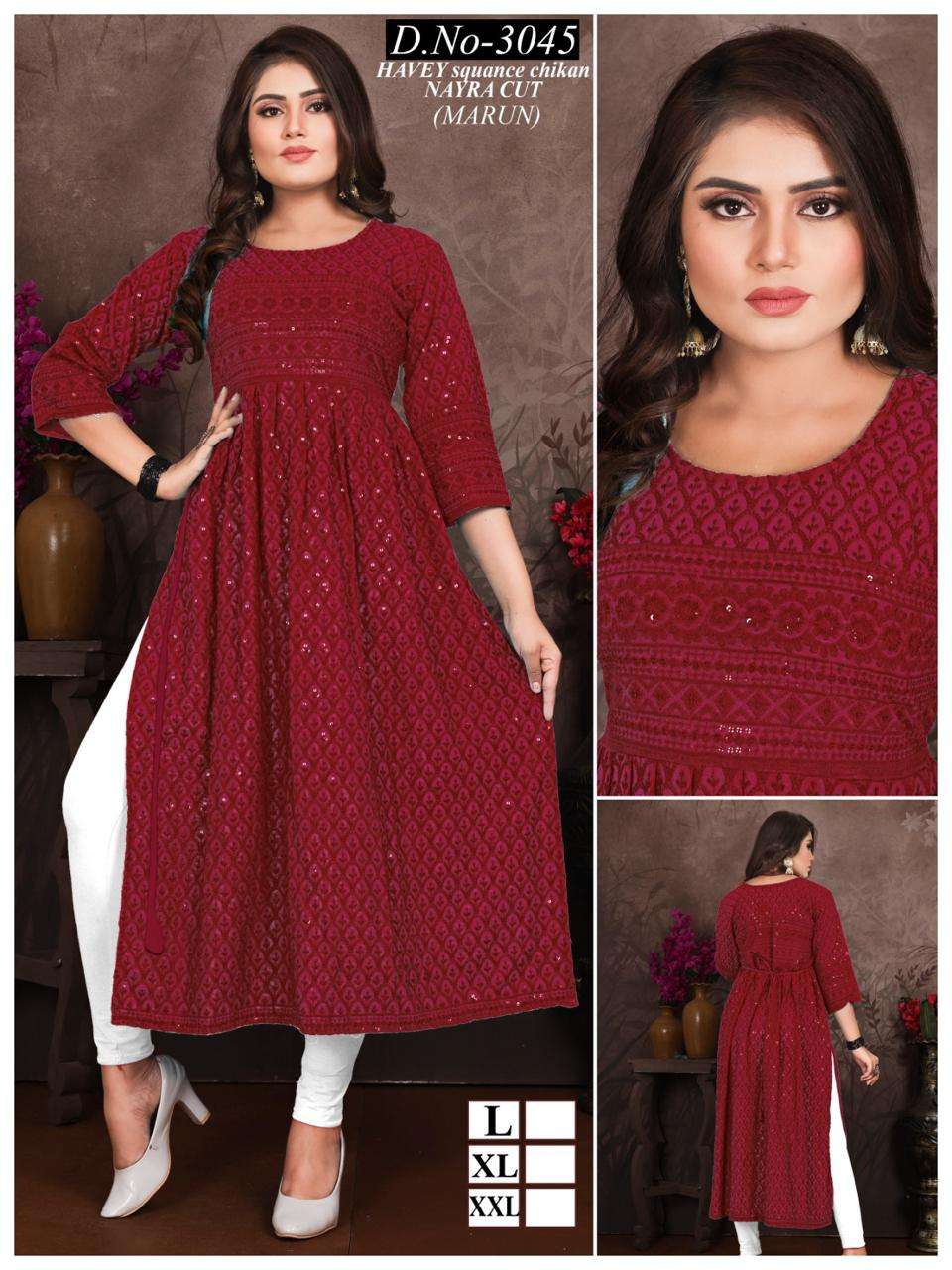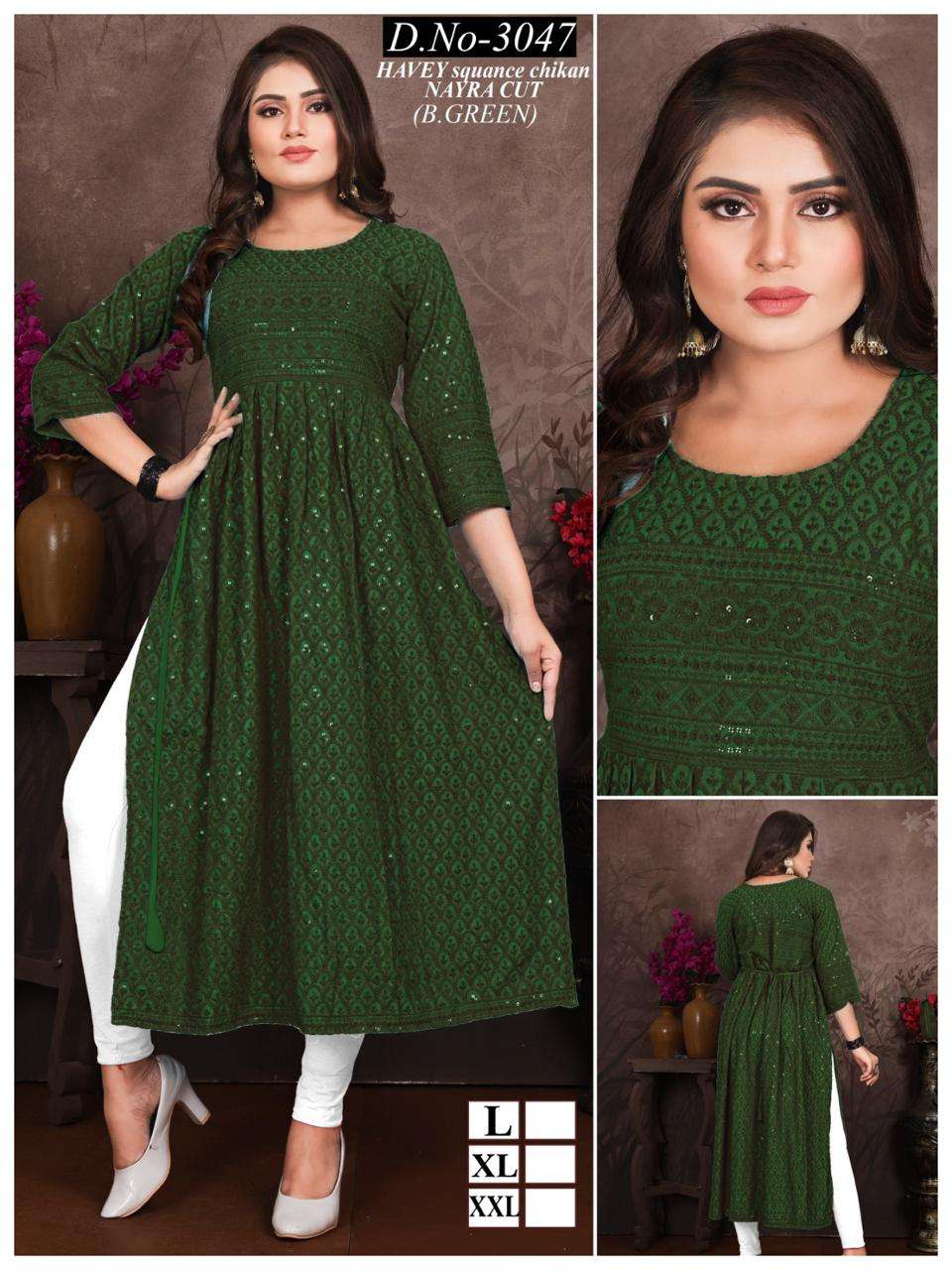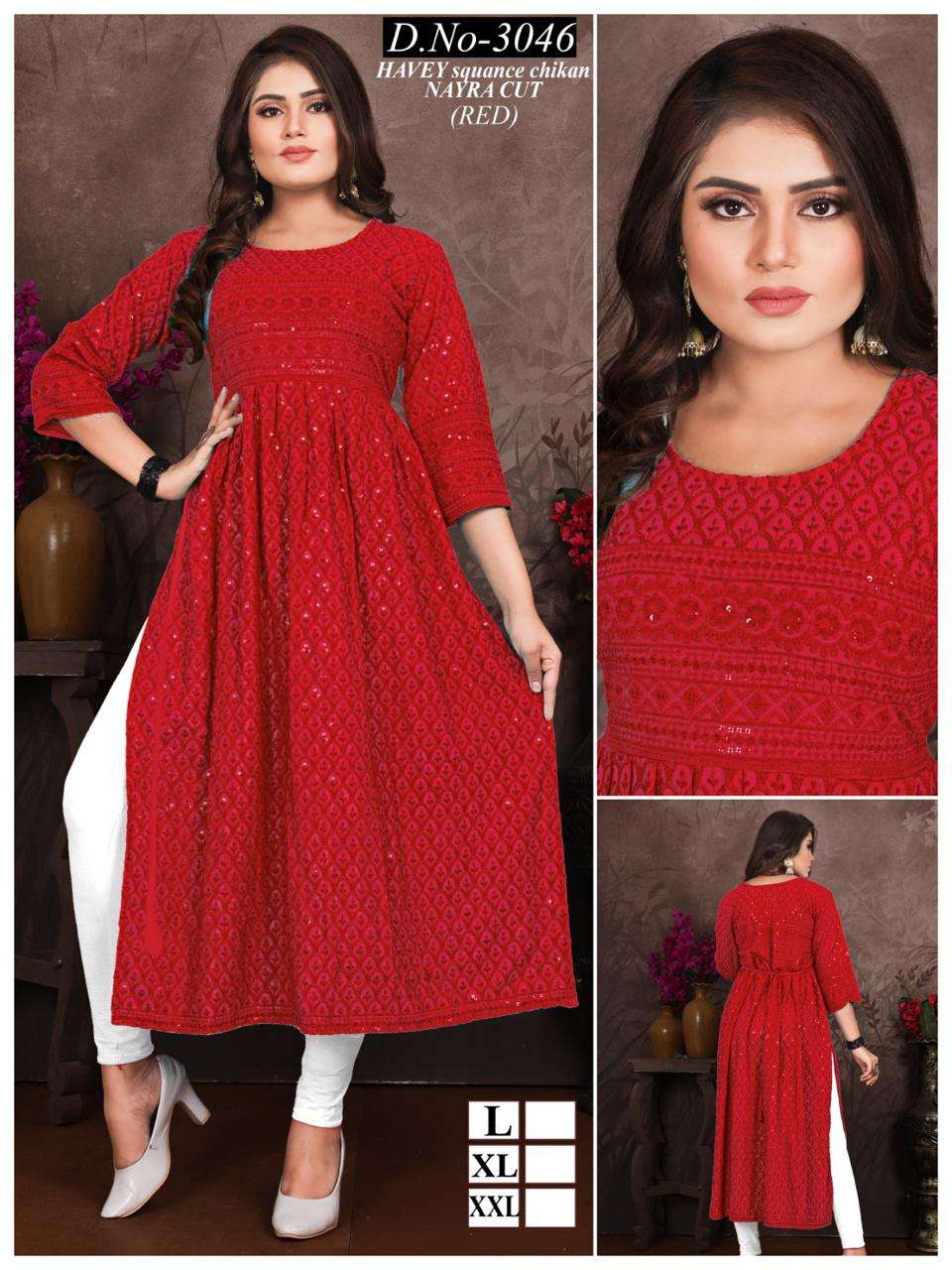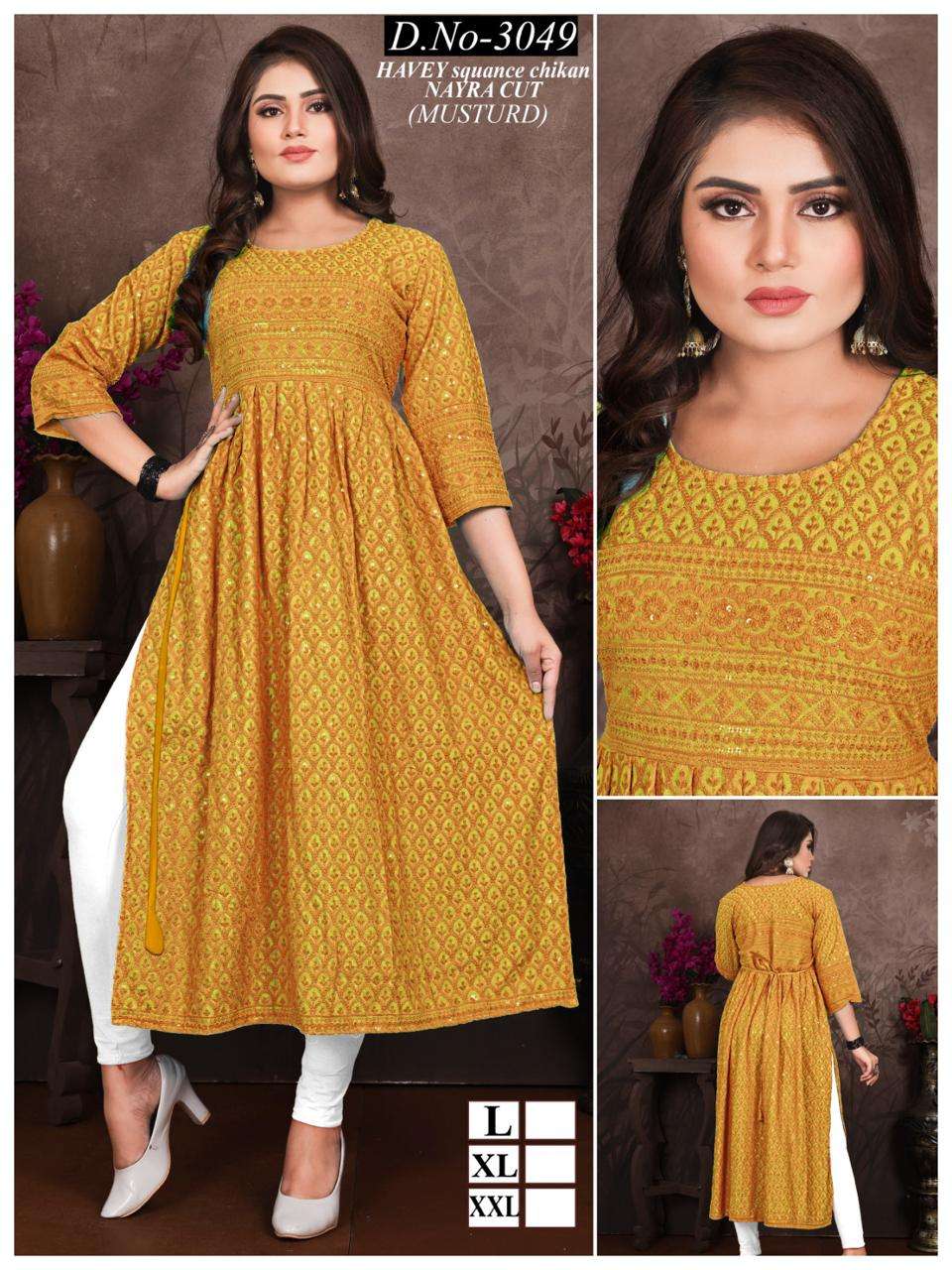 ANY COLOUR COMBO KURTI PIC & CHOOSE RAYON CHIKAN SQUANCE NAYRA CUT COMBO SET WHOLESALER BEST RATE