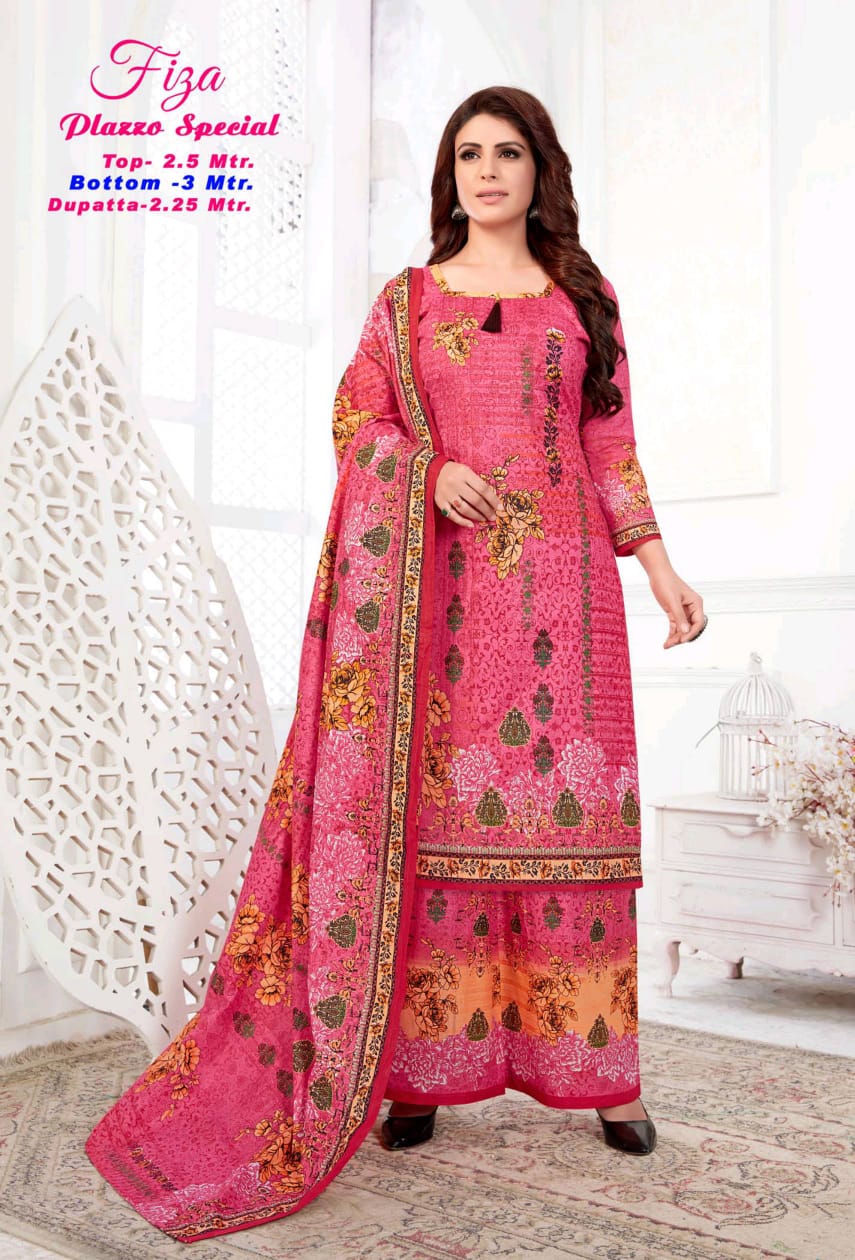 PRSENTS NEW COLLECTION FIZA VOL-4 PLAZZO SPECIAL Thanks coustomers for your love and support PURE PREMIUM COTTON PRODUCT LATEST COLOURS.... BEST DESIGNED BEST PRICE FABRIC USED:- Top:- COTTON2.40mtr Bot:- COTTON 3.00 mtr Dup:-COTTON MUL2.25mtr HEAVY COTTON RATE:- 350+5%GST EXTRAORDINARY POUCH PACKING+ 10 pcs |