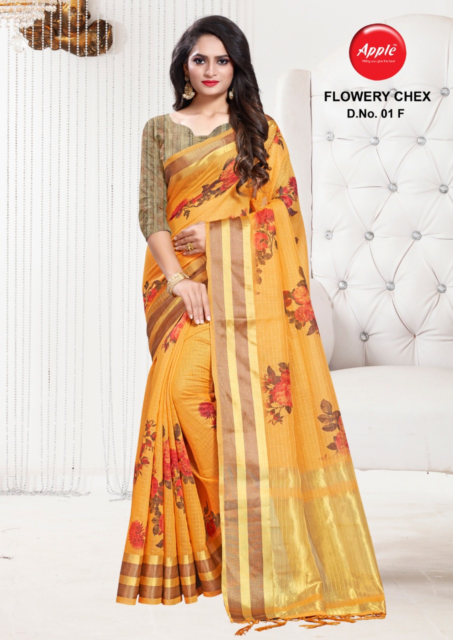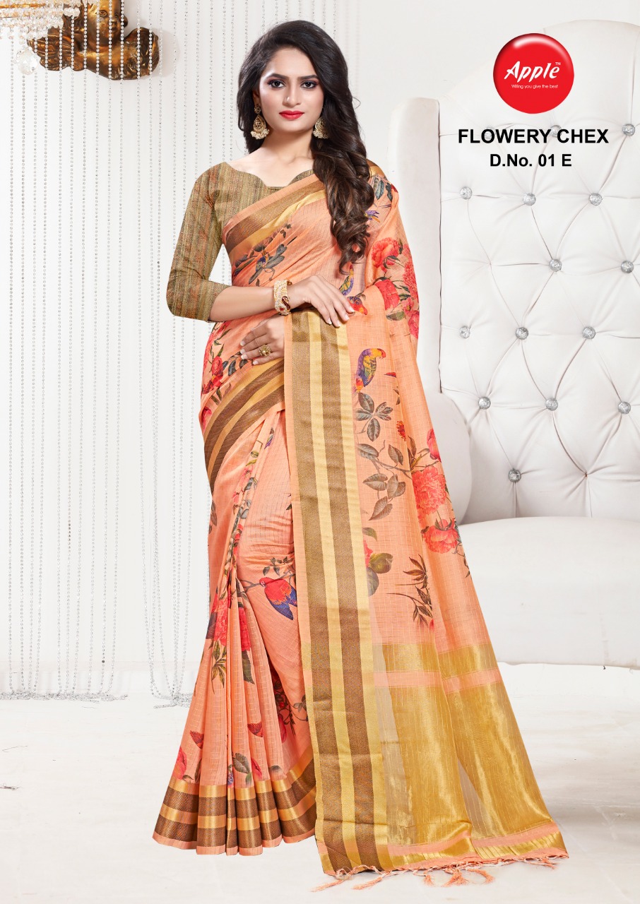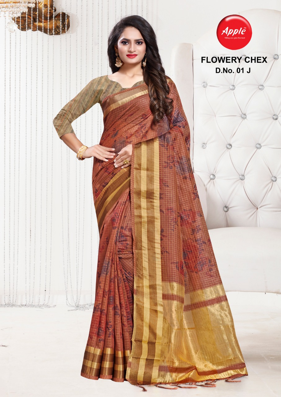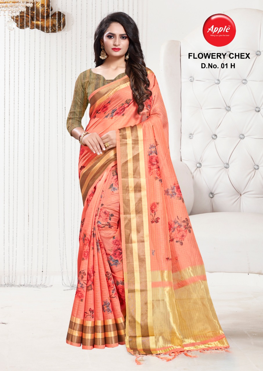 Apple Flowery Chex Cotton Digital Printed Designer Saree Wholesaler