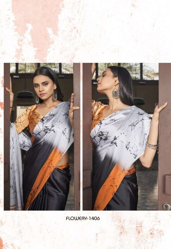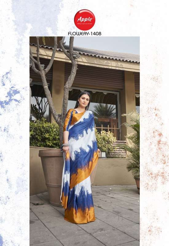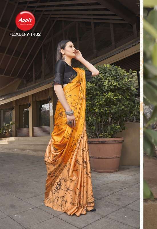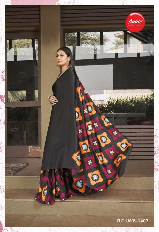 apple flowery vol 14 japan crape printed fancy sarees