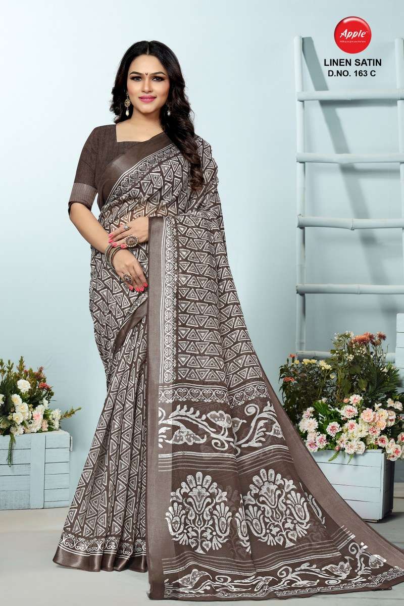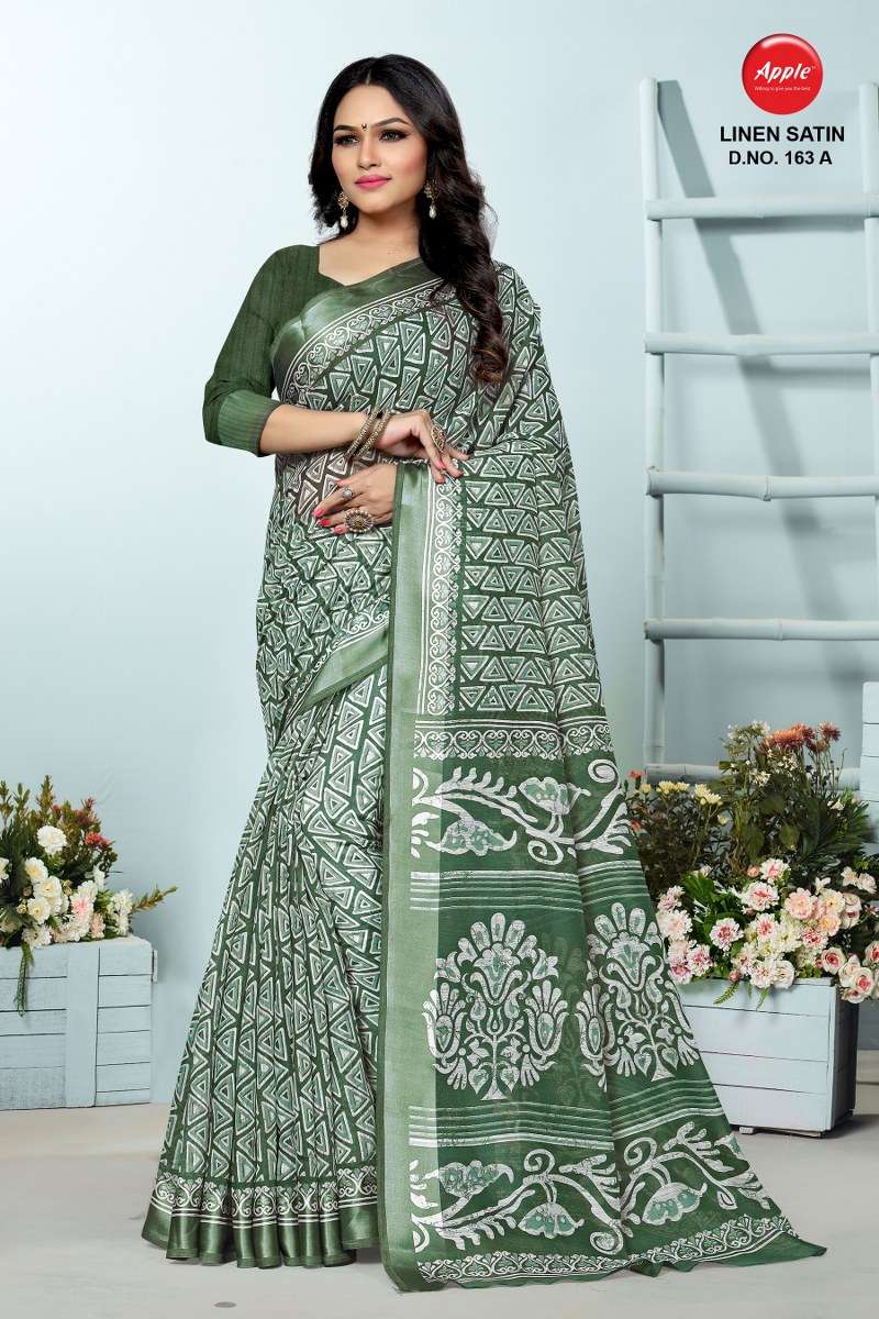 apple linen satin 163 design cotton sarees