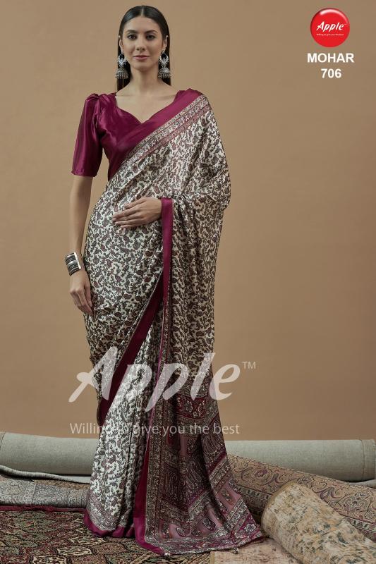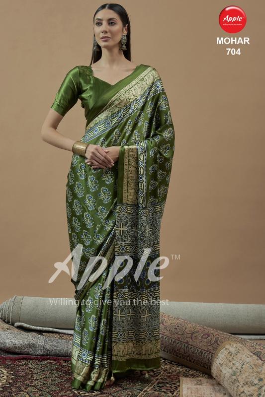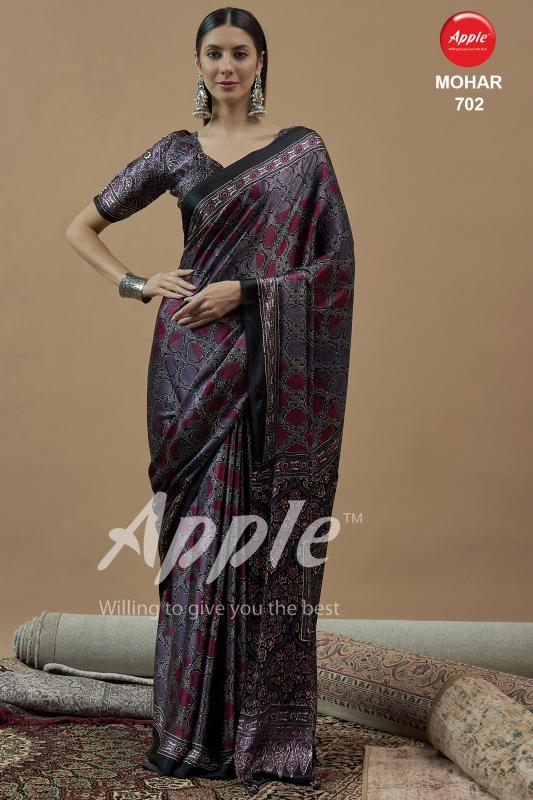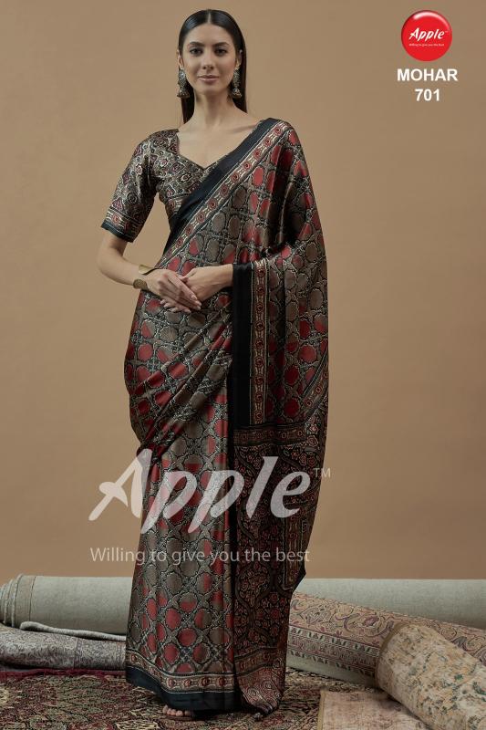apple mohar vol 7 japan satin ajrakh fancy printed womens saree