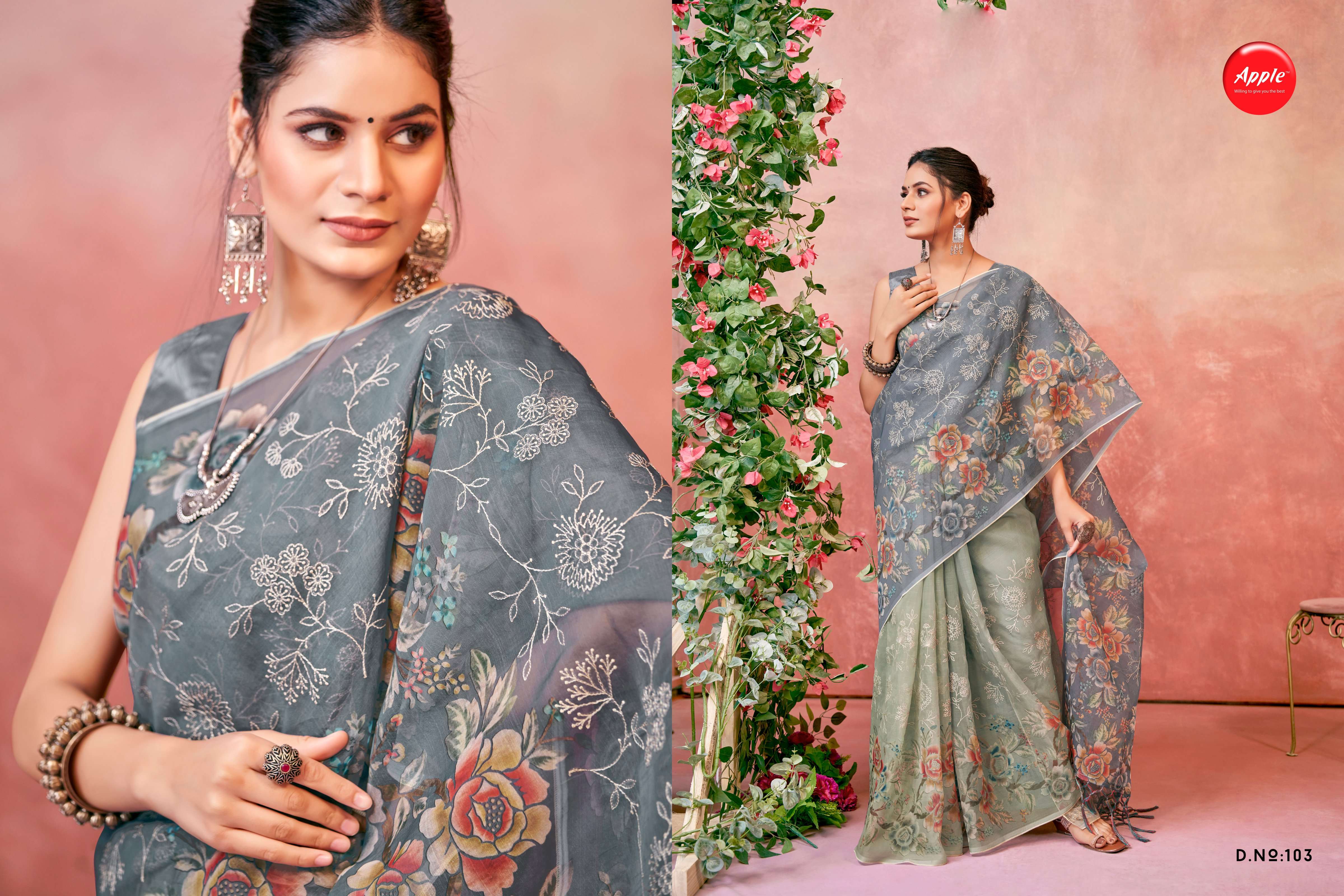 apple present zero ora vol 1 fancy organza sarees wholesaler