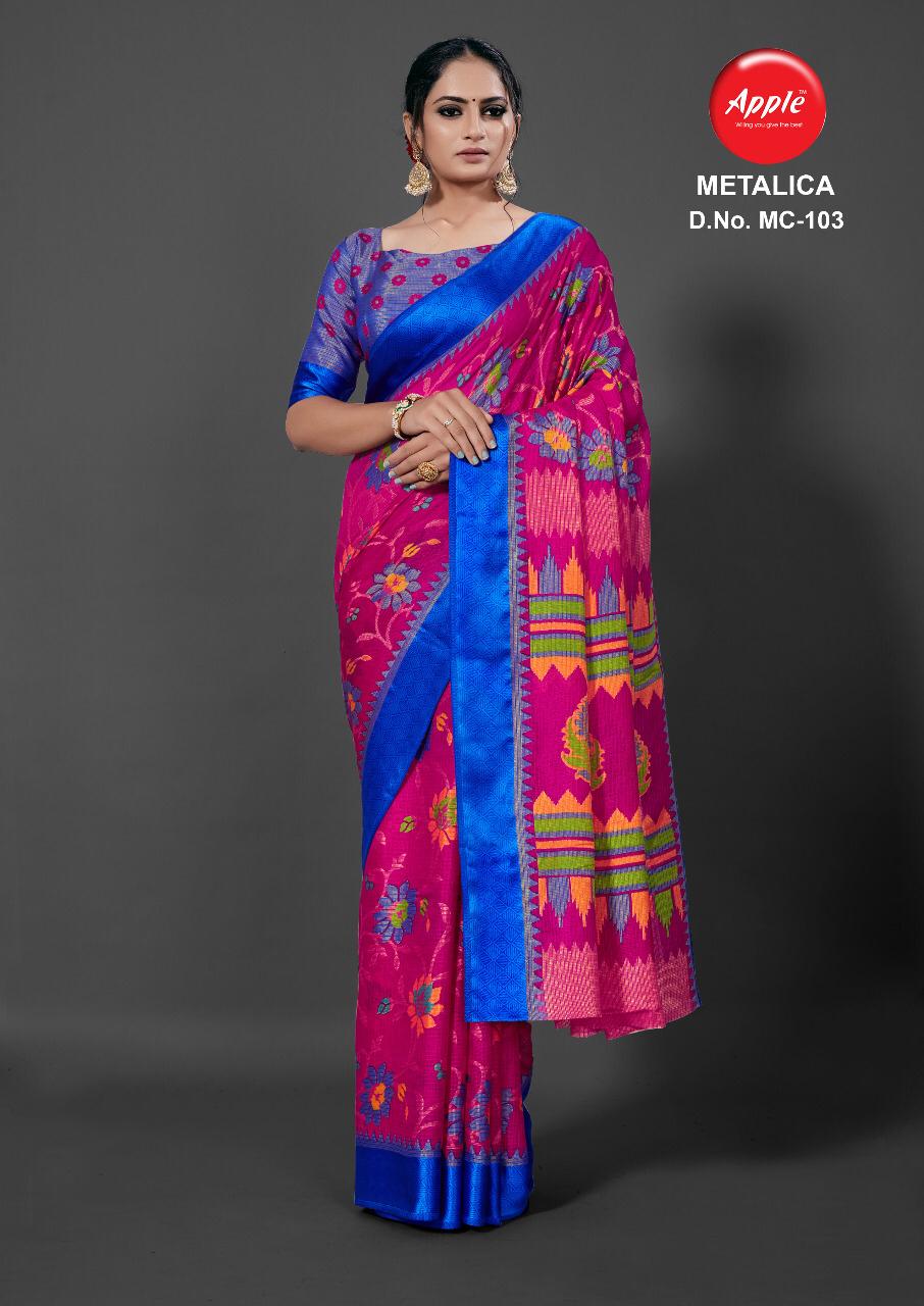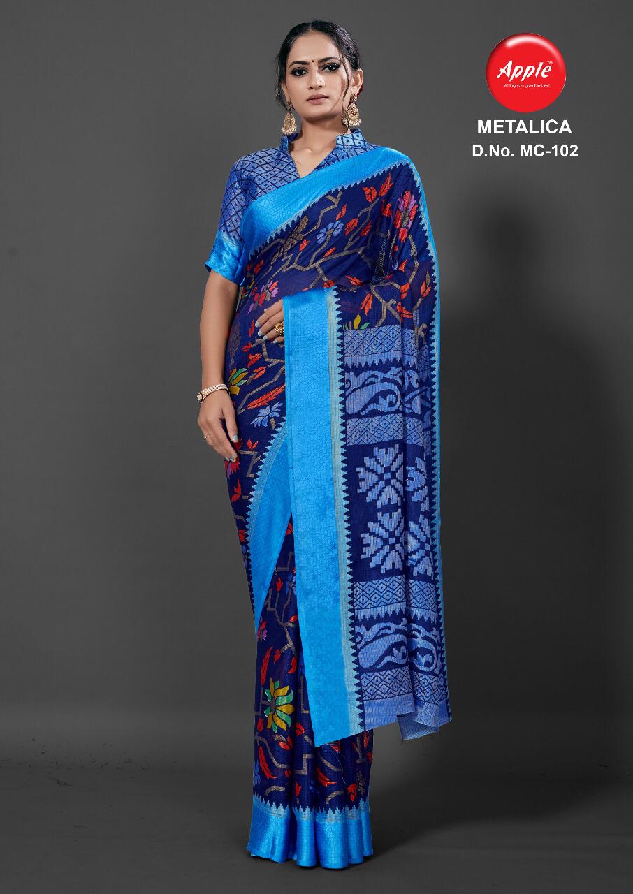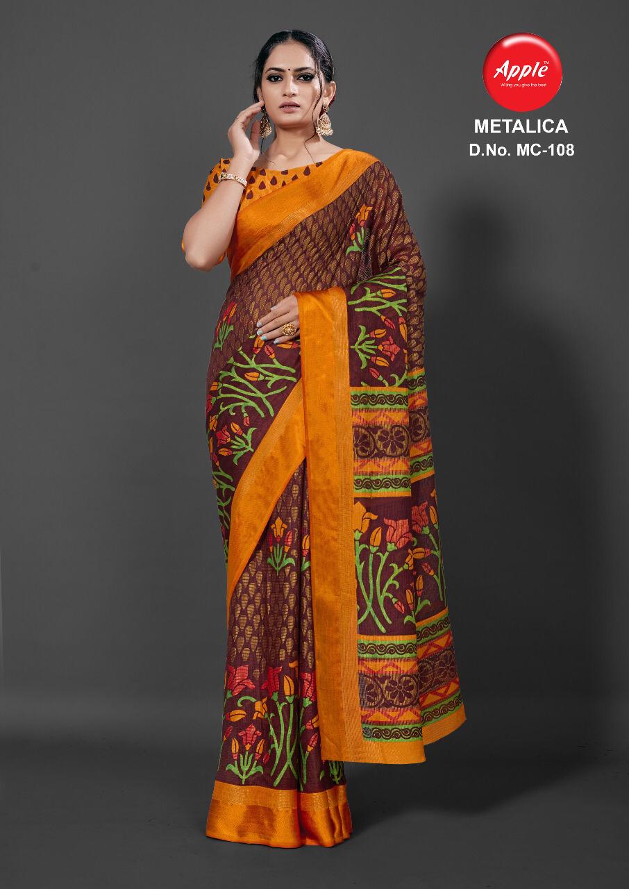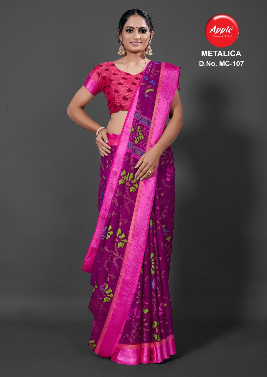 Apple Presenting Metalica Brasso Weaving Casual Wear Synthetic Saree Wholesale Price