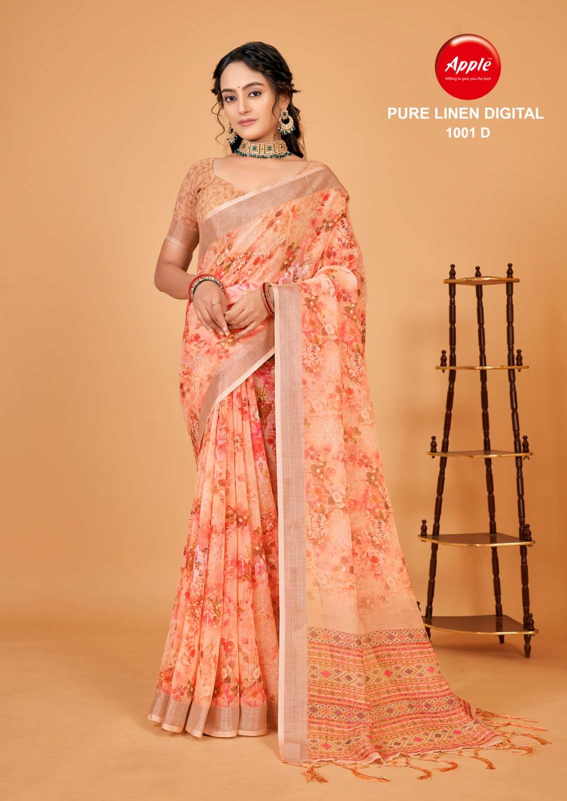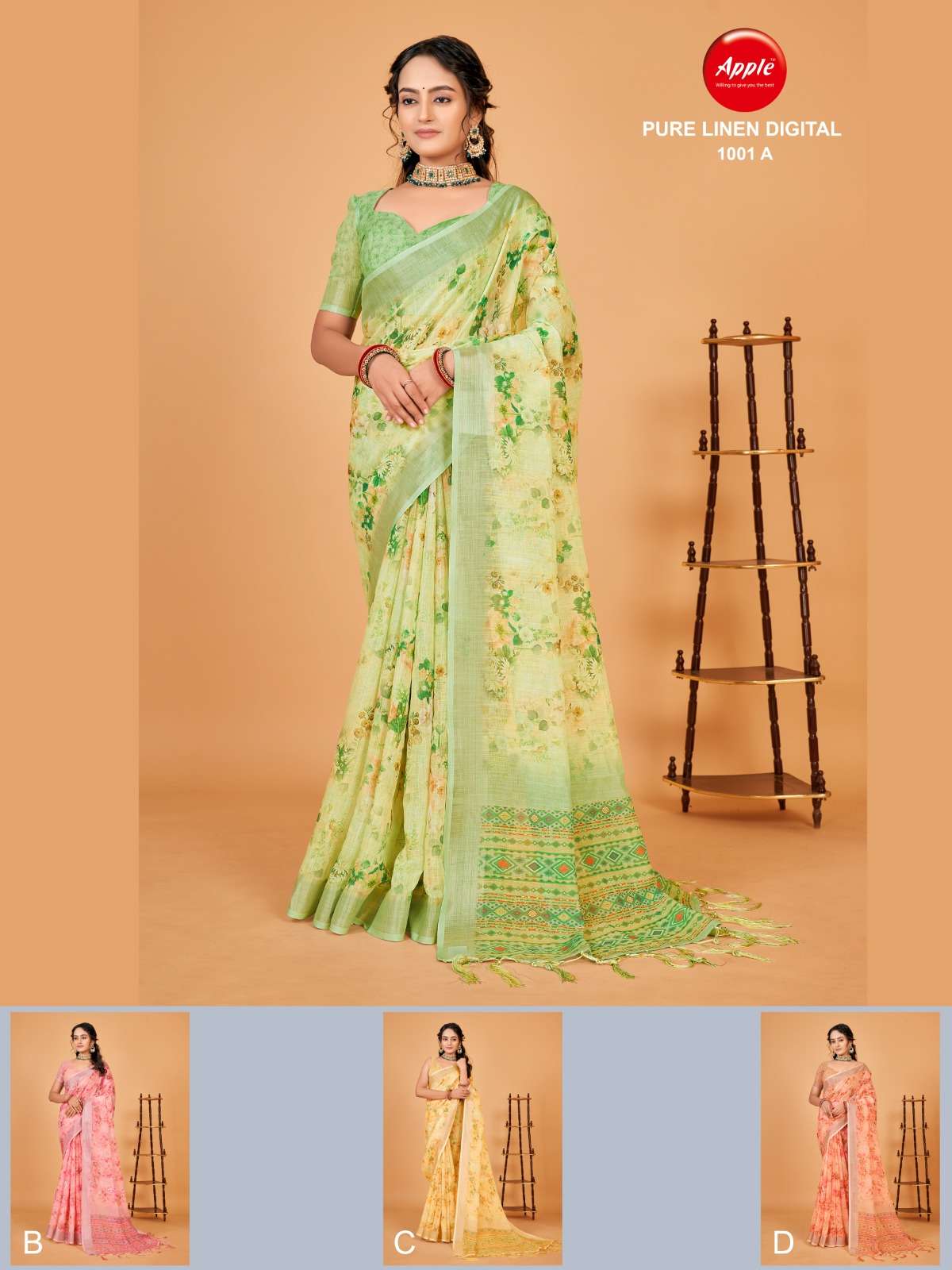 apple pure linen 1001 set of 4 colour matching printed saree
