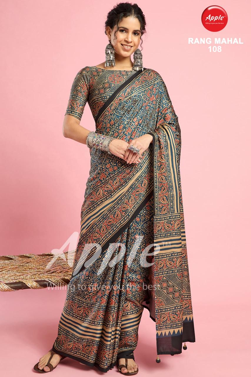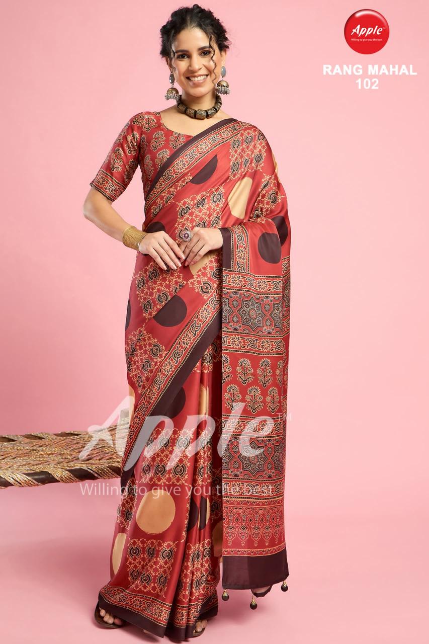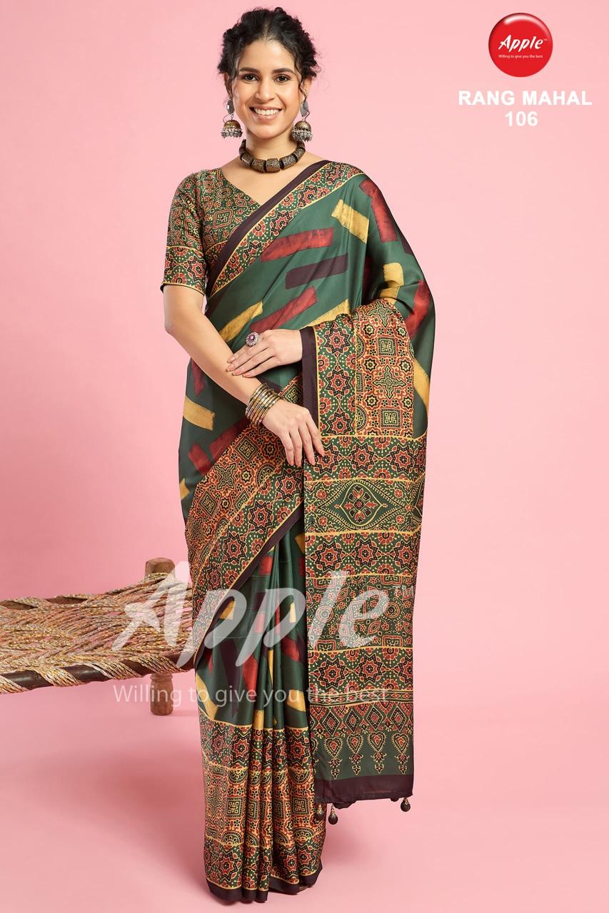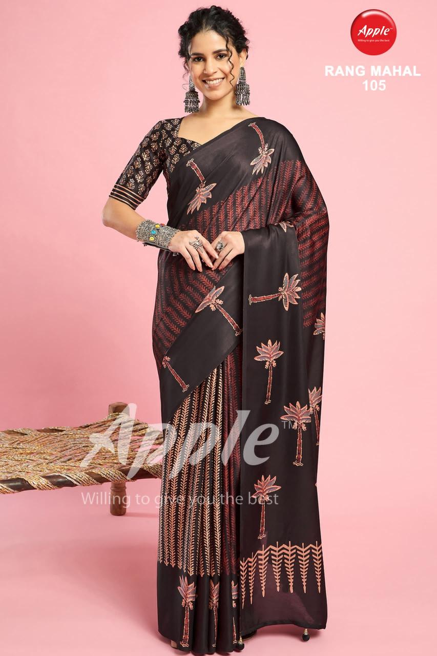 apple rang mahal 101-108 series new design modal satin saree supplier