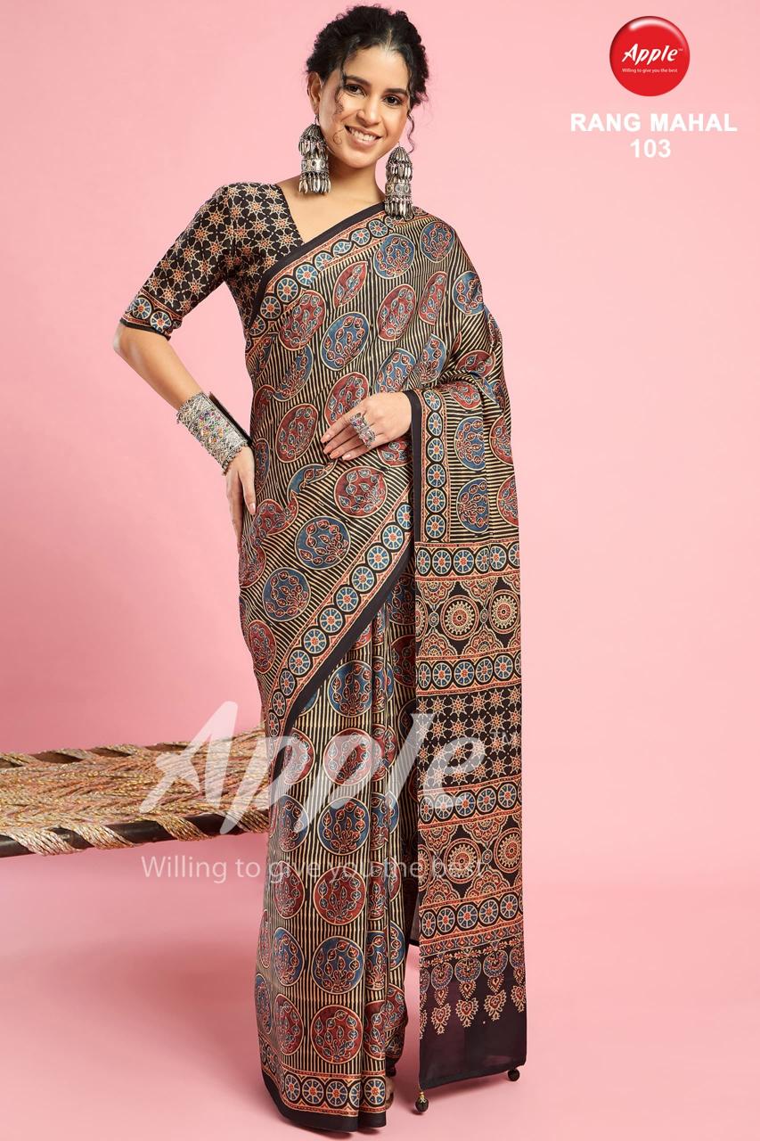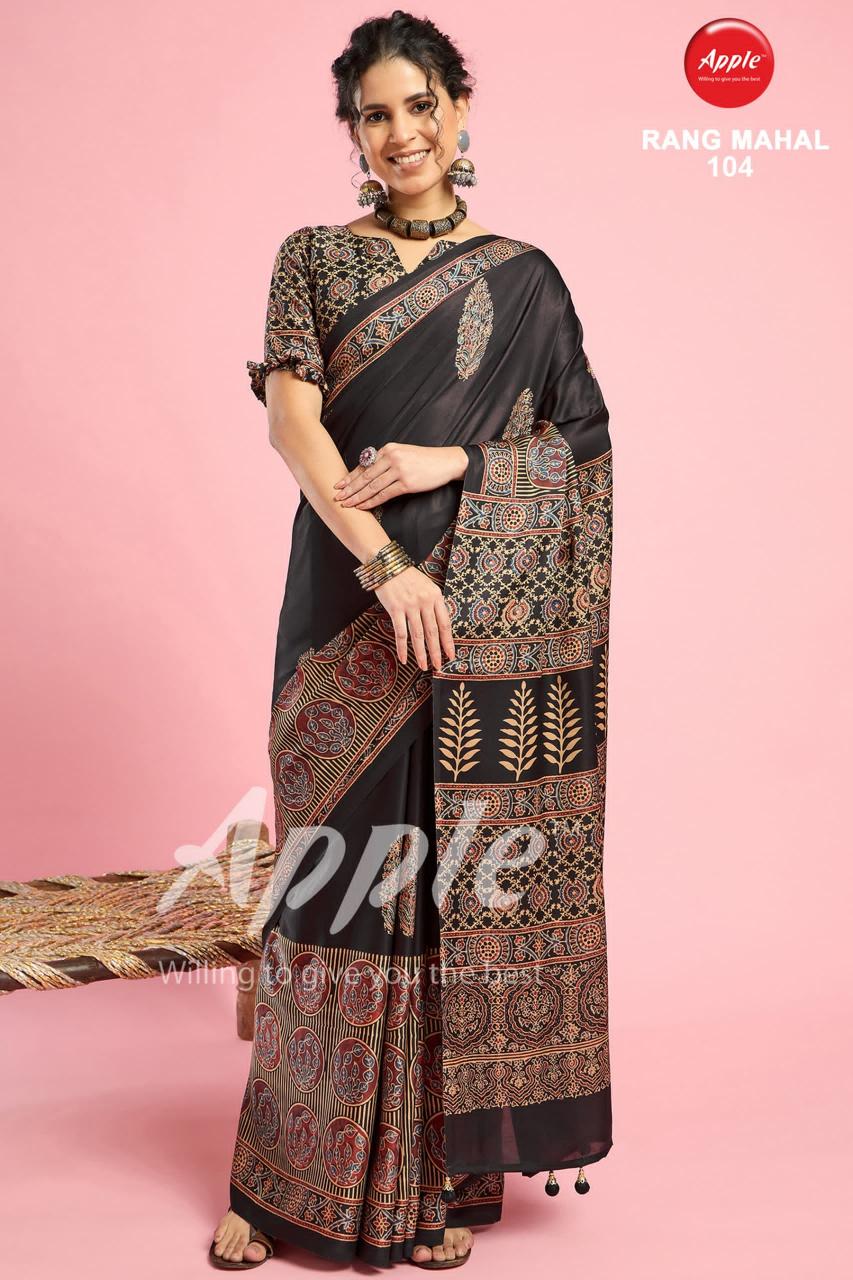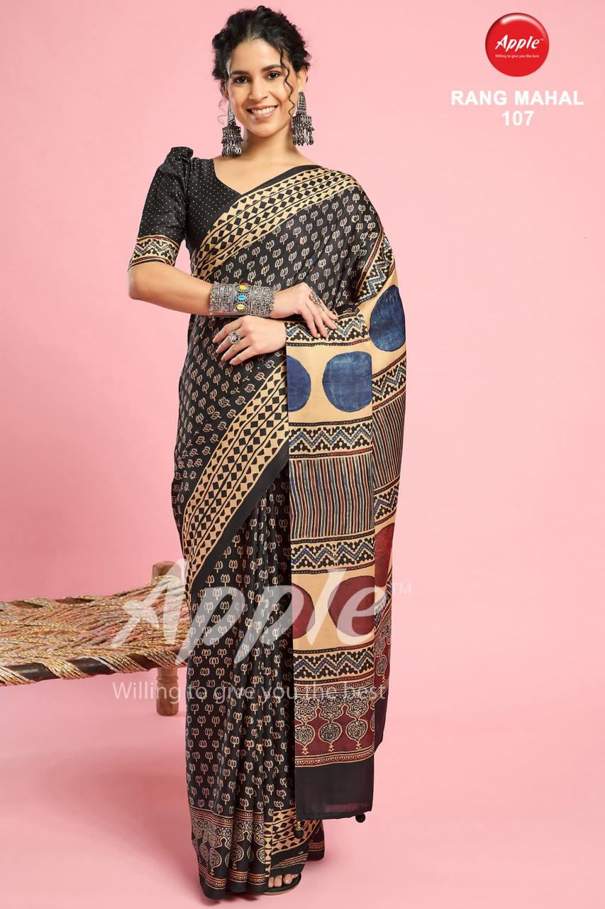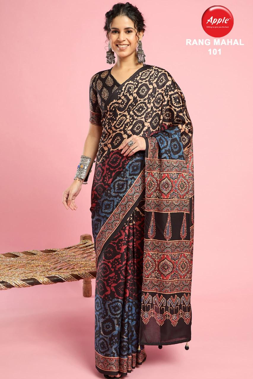 apple rang mahal 101-108 series new design modal satin saree supplier