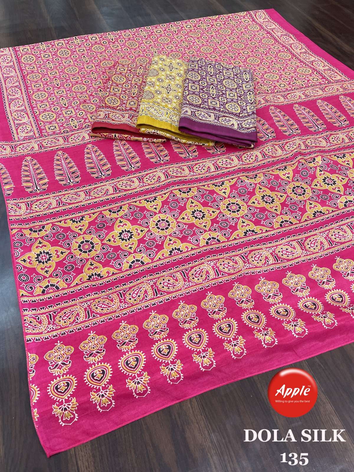 apple saree surat dola silk 135-146 fancy saree supplier