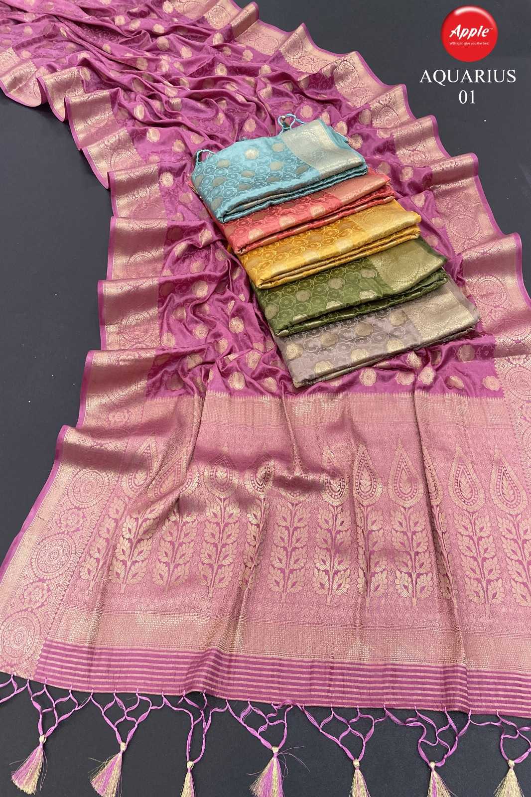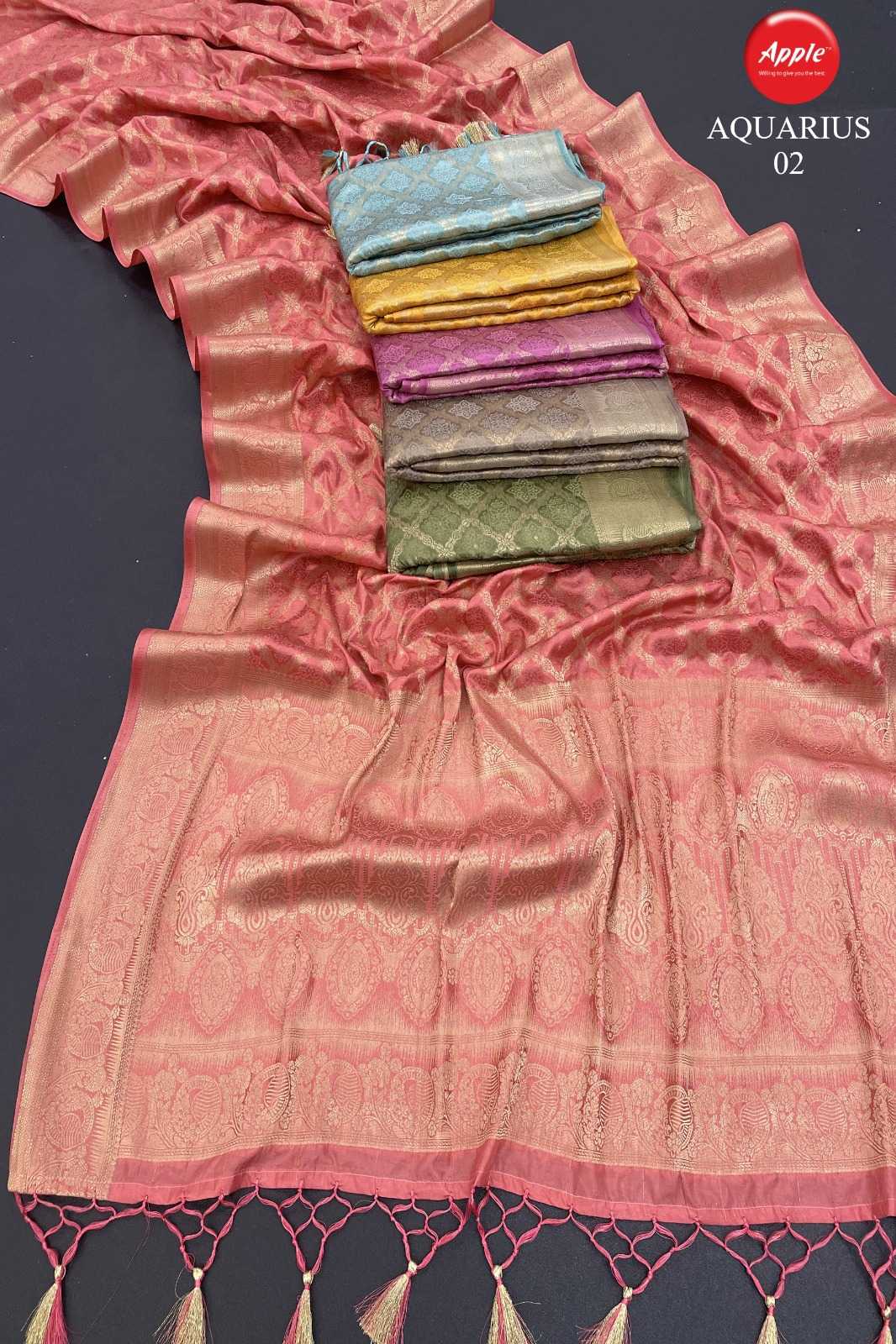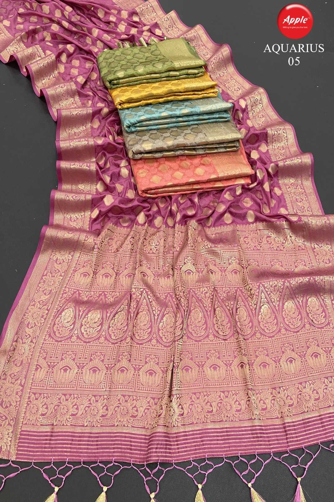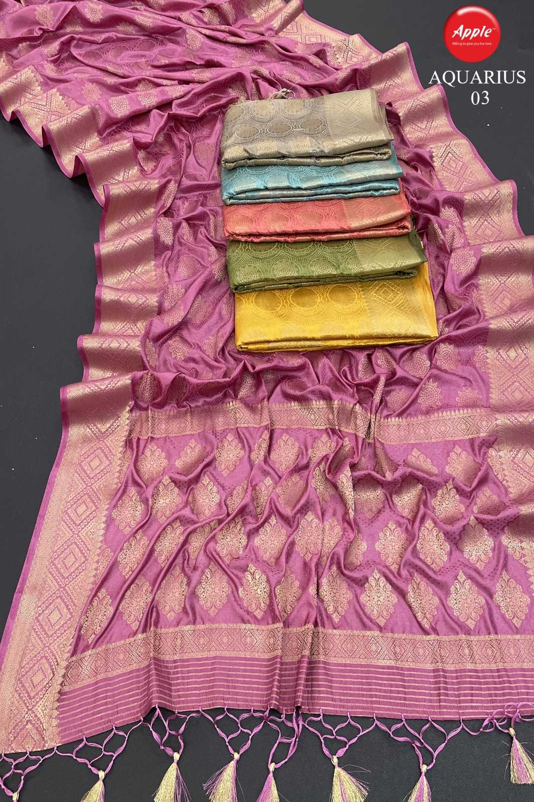 apple sarees aquarius 01-05 fancy satin silk saree online trader