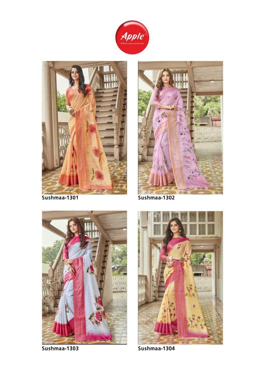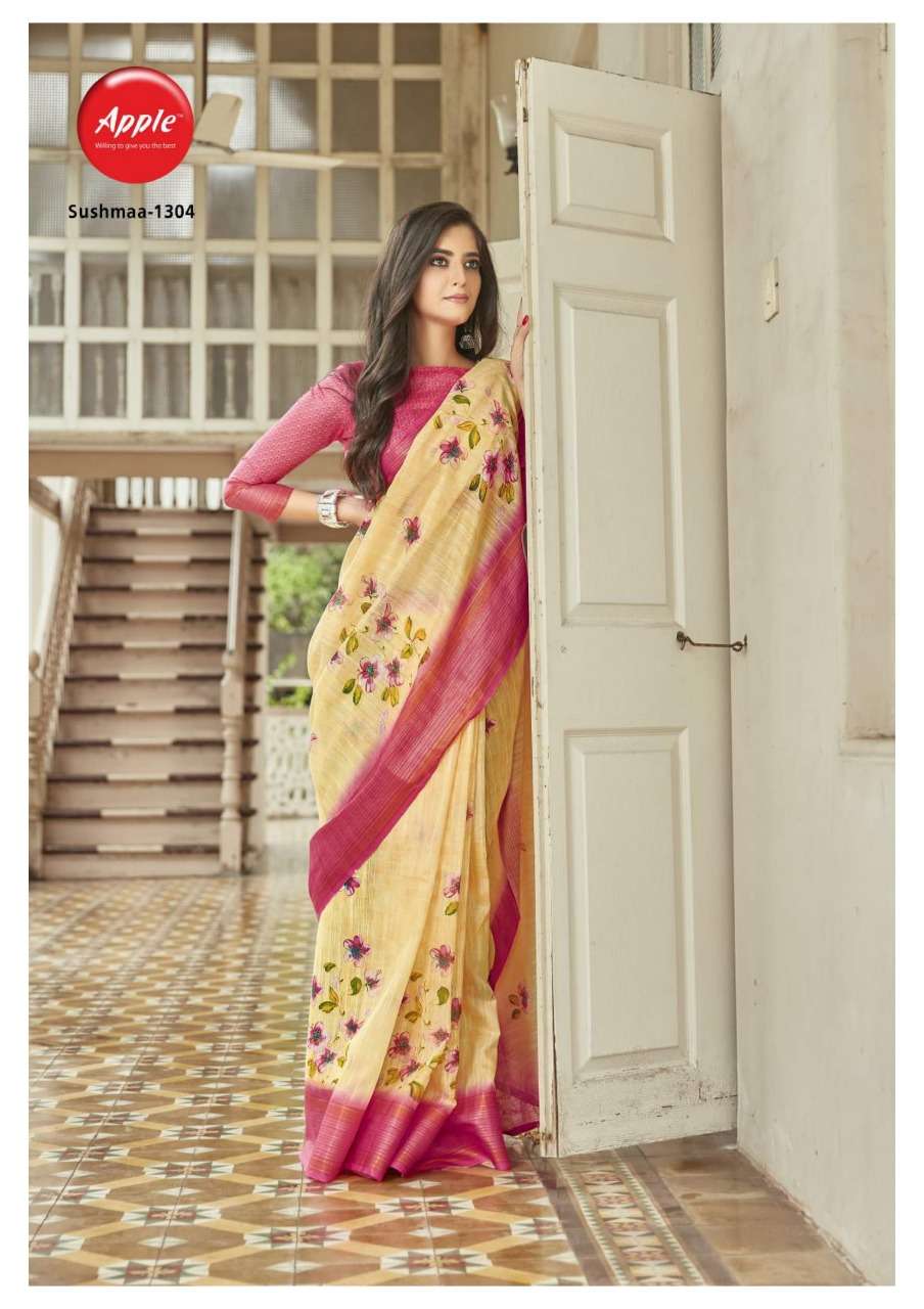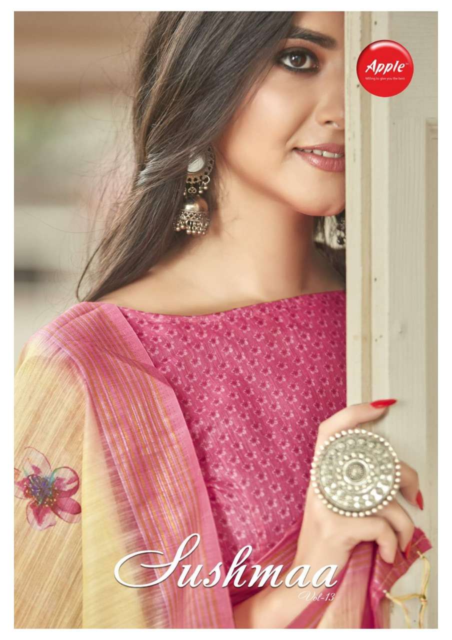 Apple sushmaa vol 13 soft linen digital printed sarees wholesaler in surat
