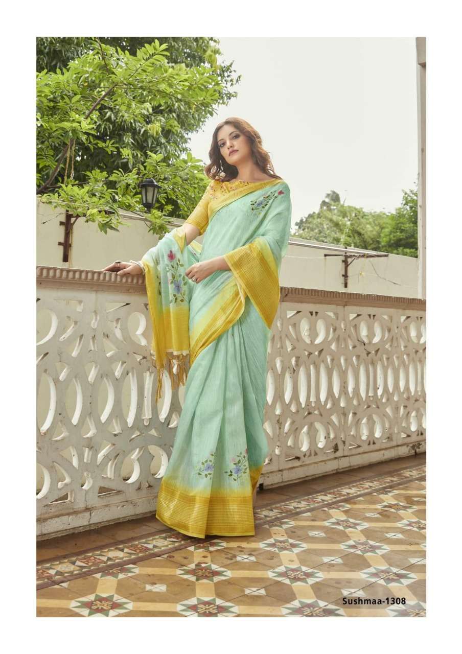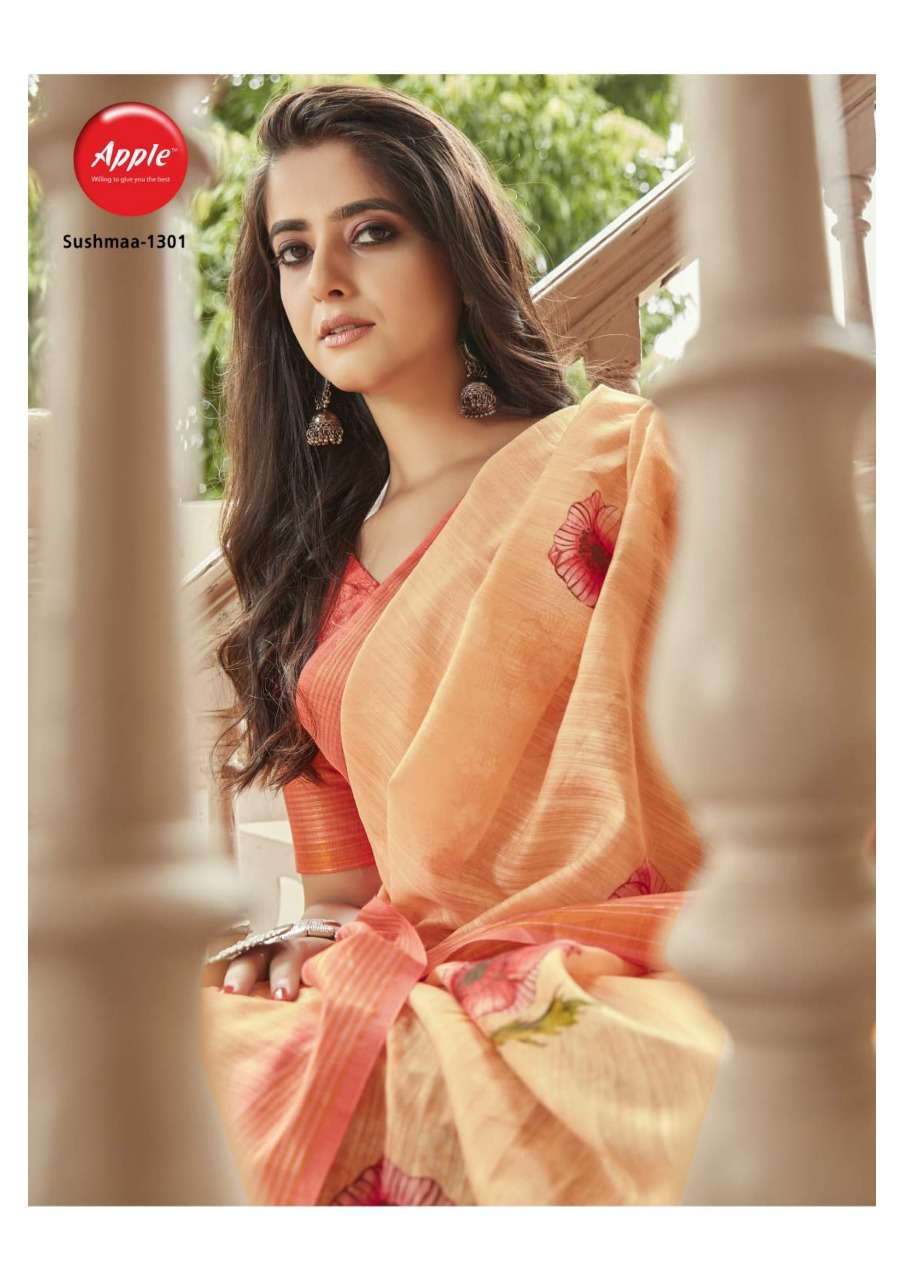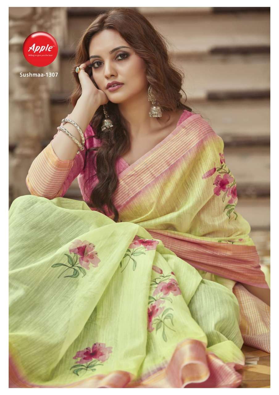 Apple sushmaa vol 13 soft linen digital printed sarees wholesaler in surat