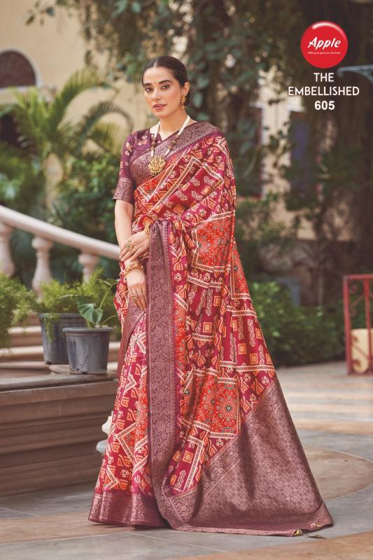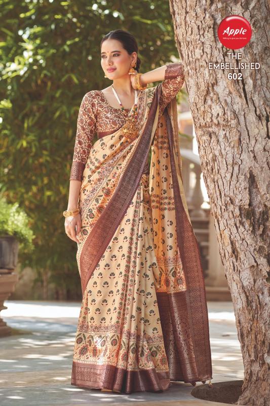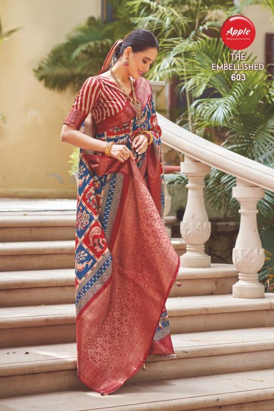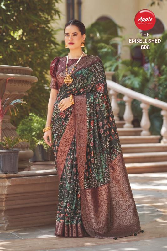 apple the embellished vol 6 beautiful print italian silk unique saree