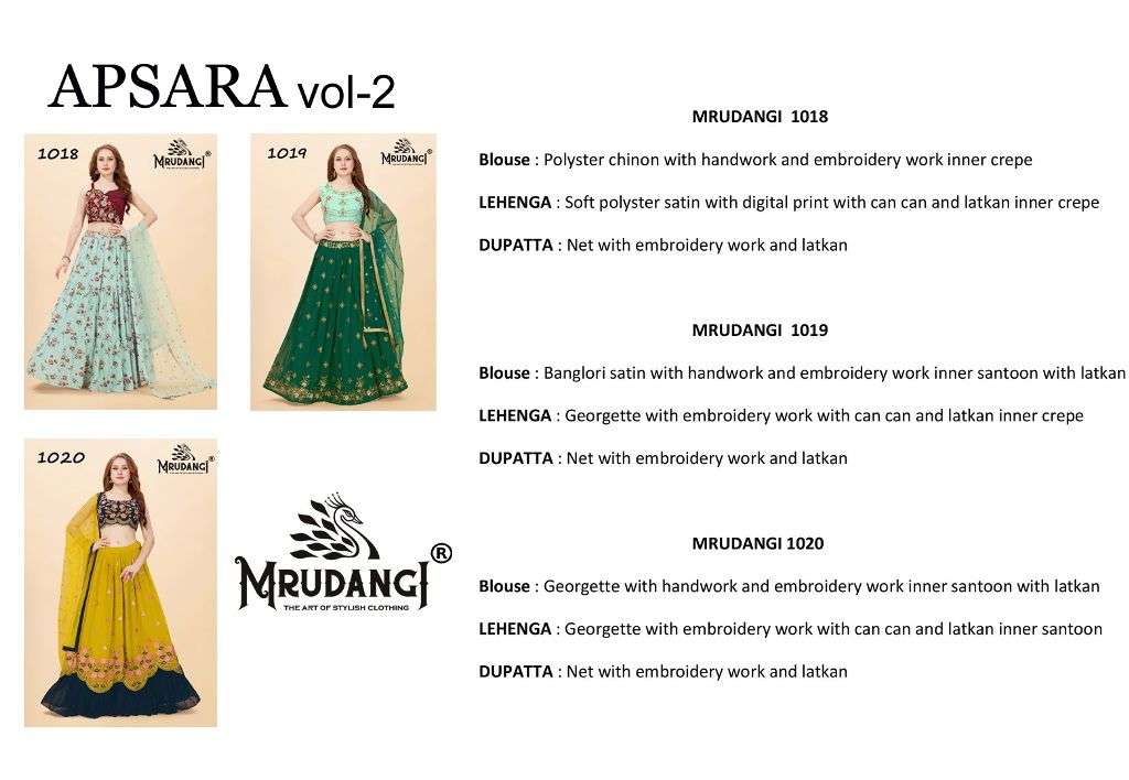 MRUDANGI®️ APSARA VOL:-2 New Designer LEHENGHA CHOLI Exclusive Collection Total 3 Design Size - L , XL (2 IN MARJIN SO YOU CUSTOMISE M TO XXL) RATE |