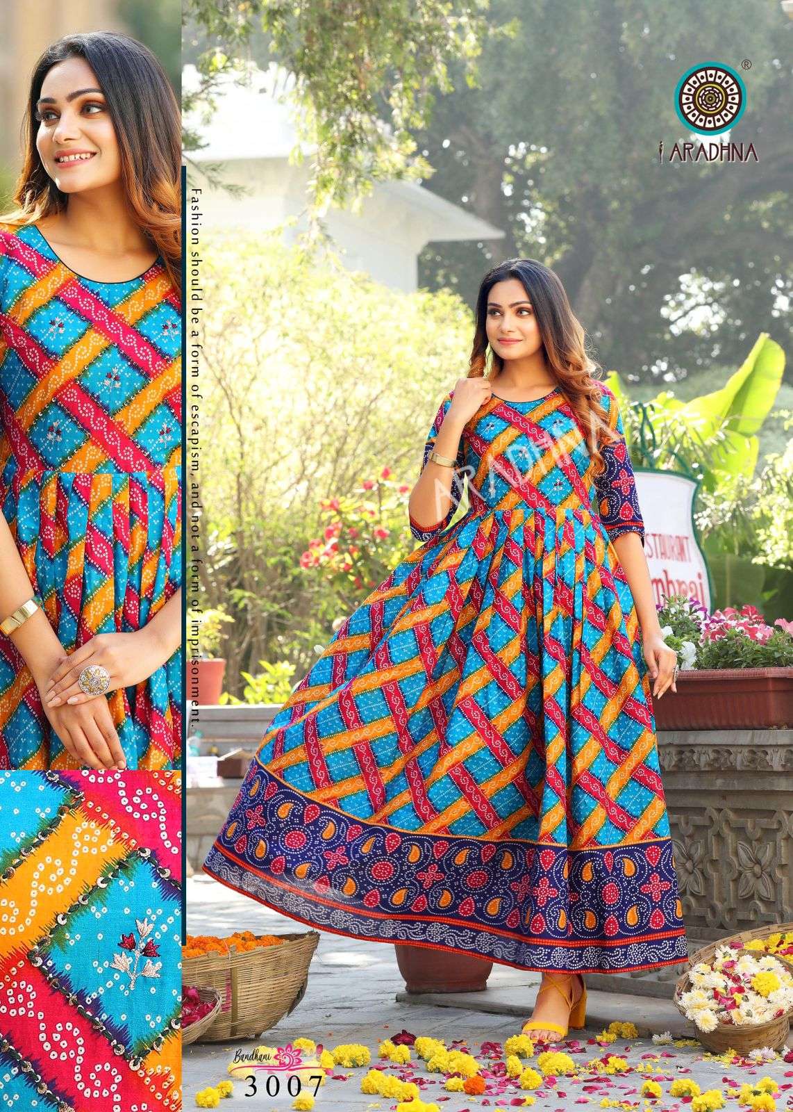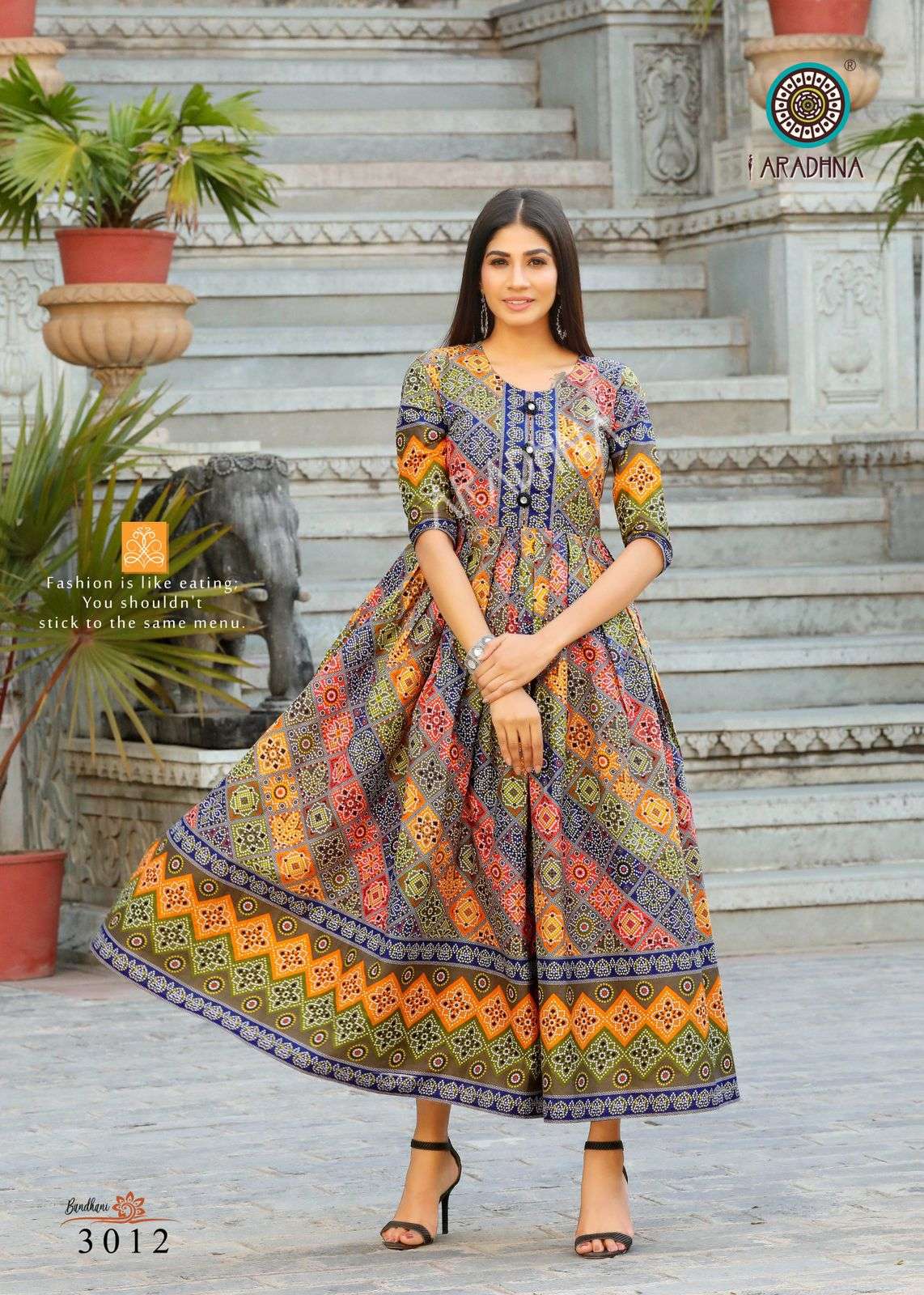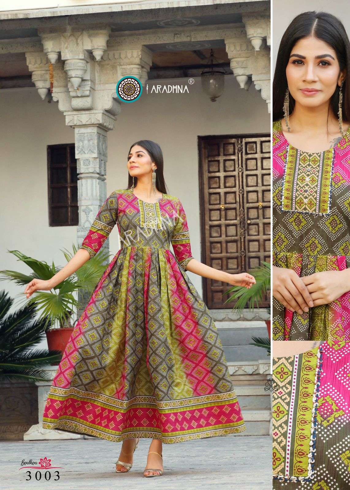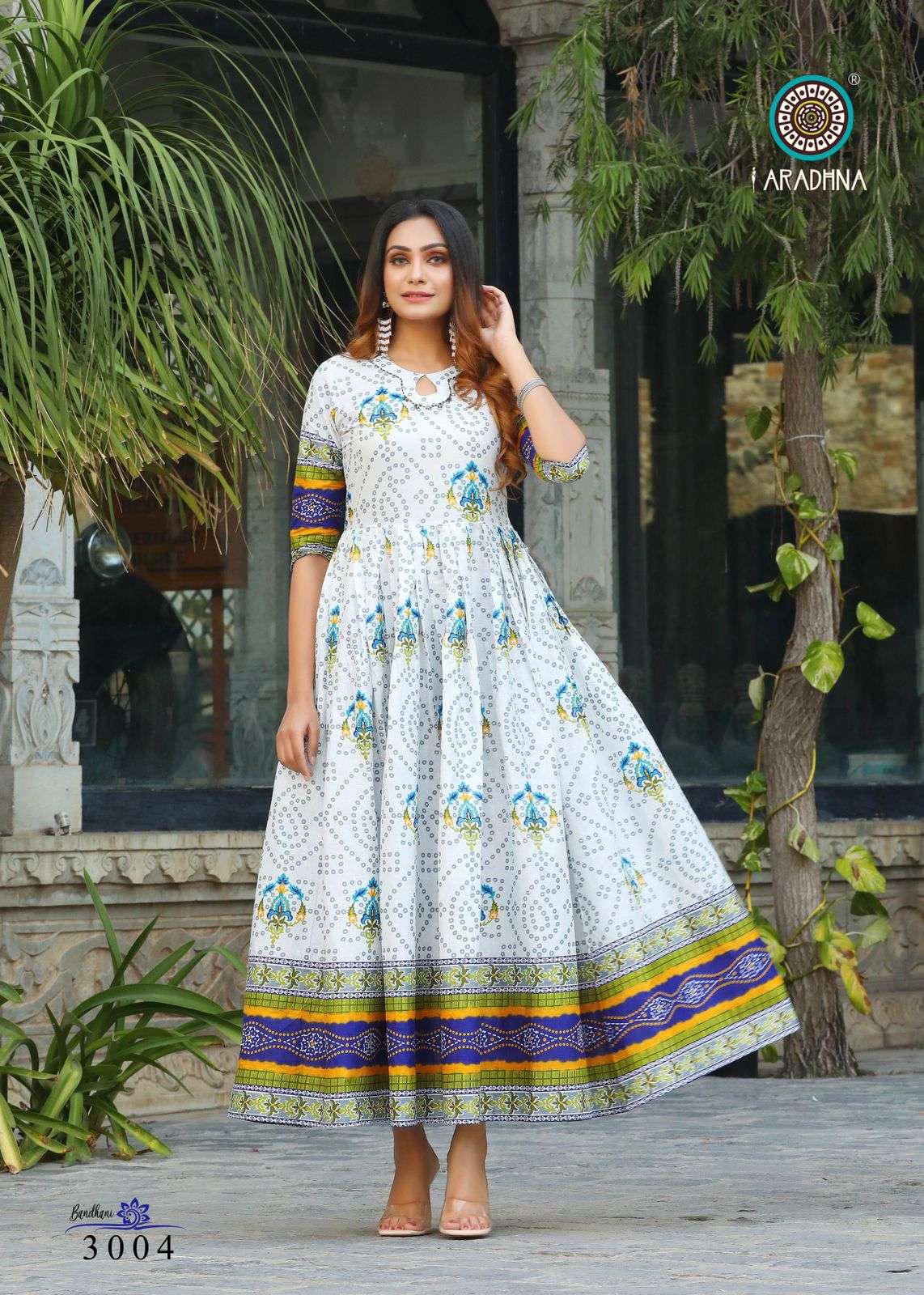 aradhna bandhani vol 3 cotton anarkali kurta best wholesale price