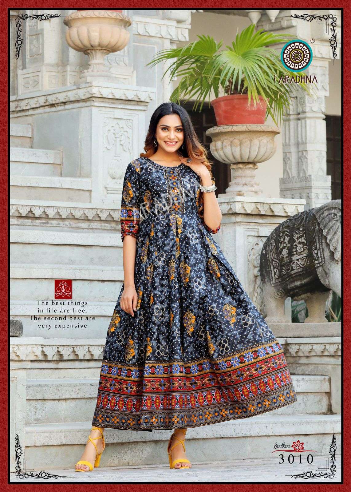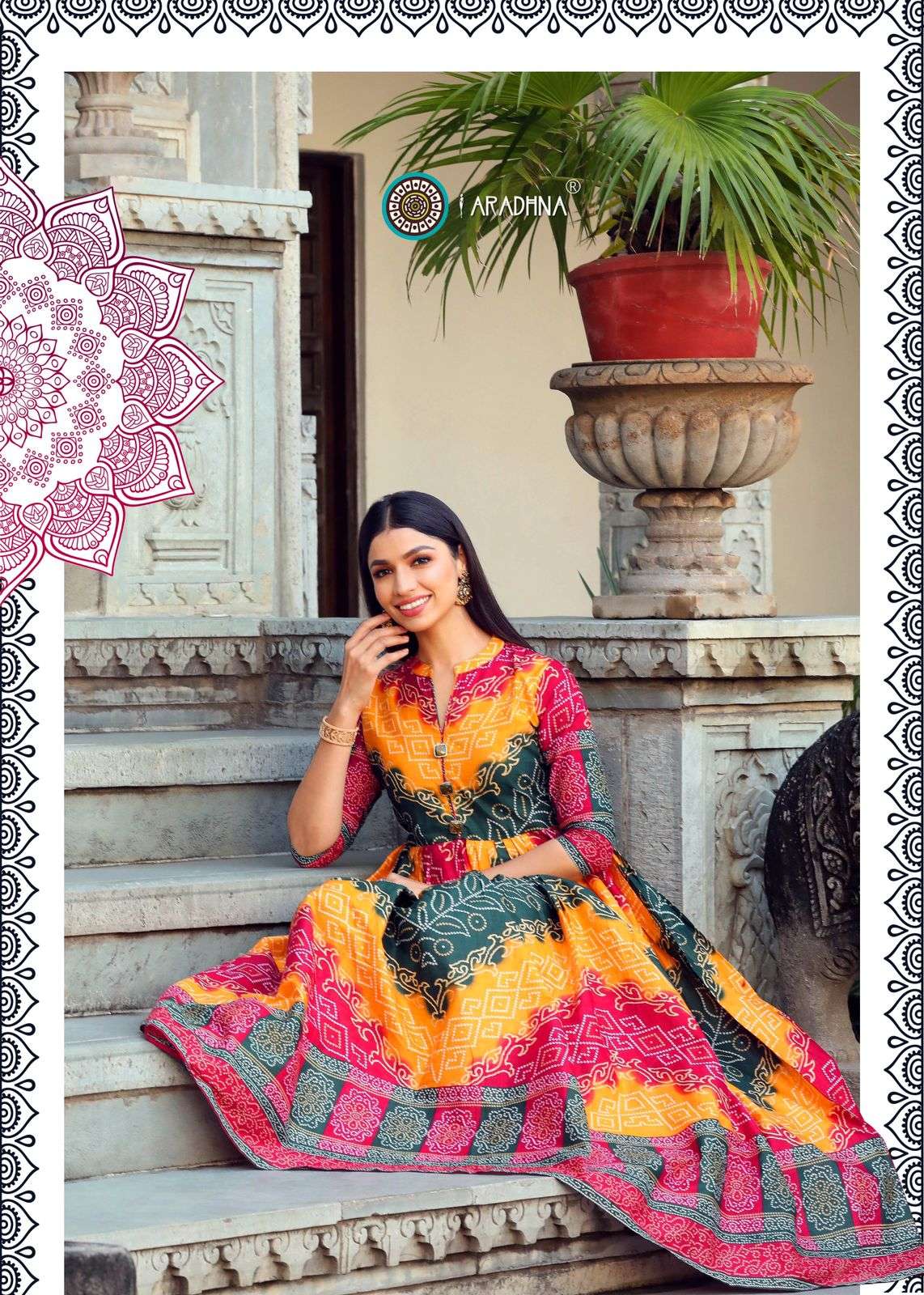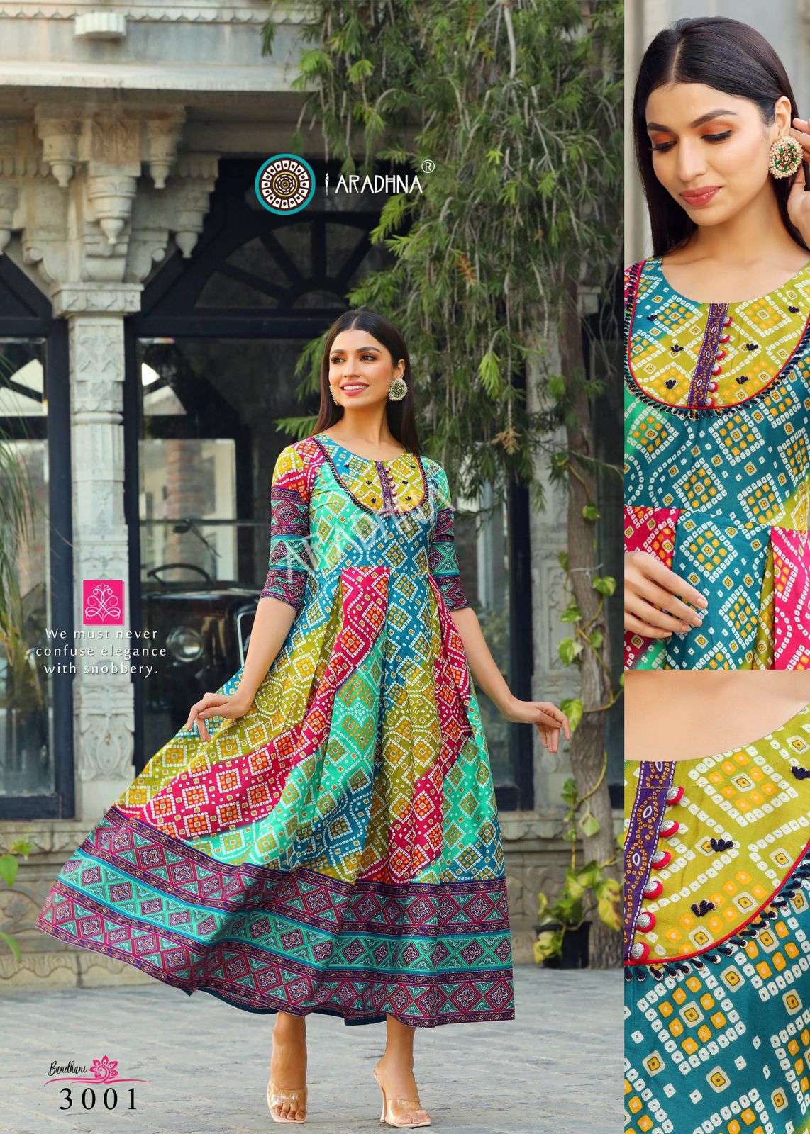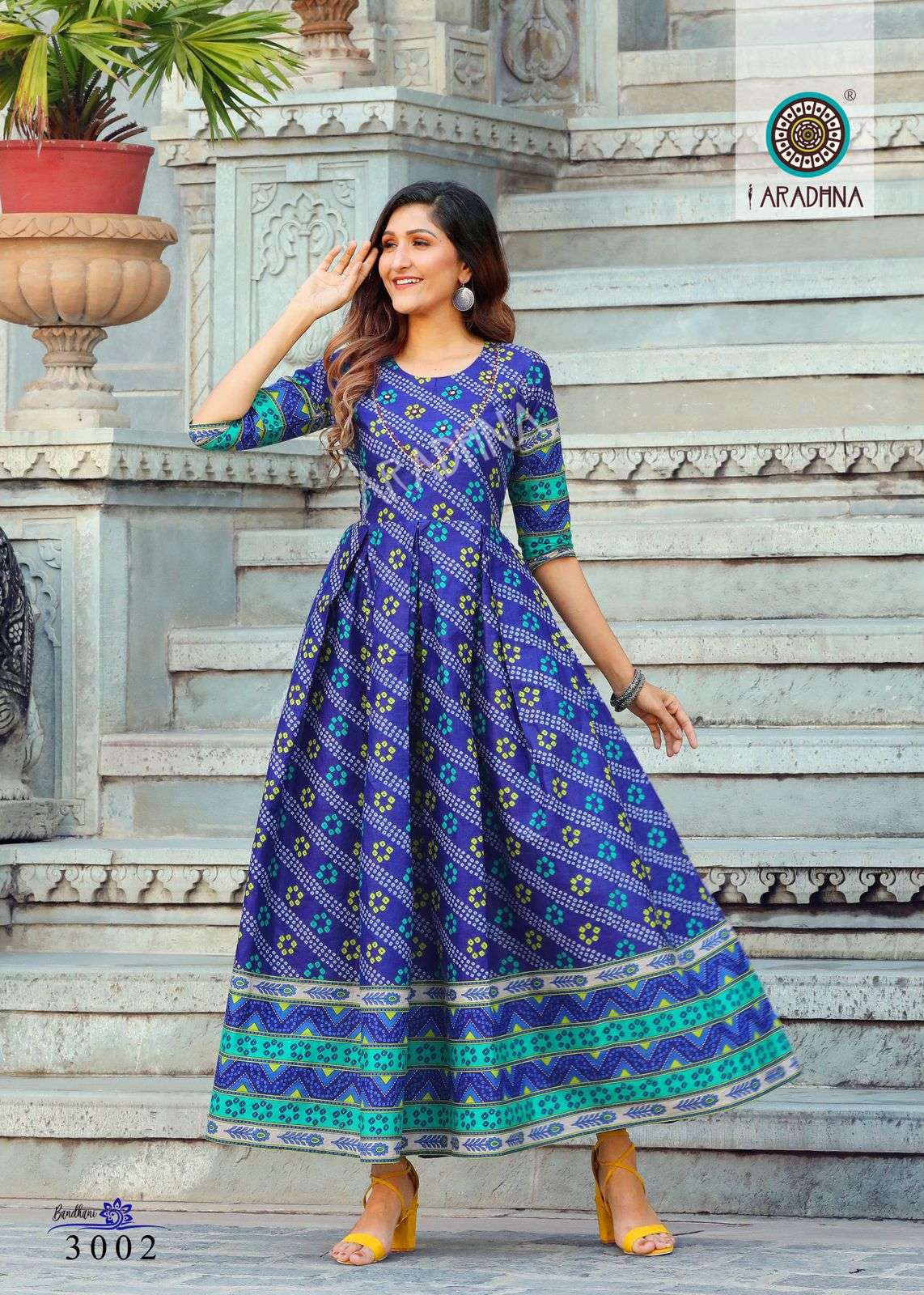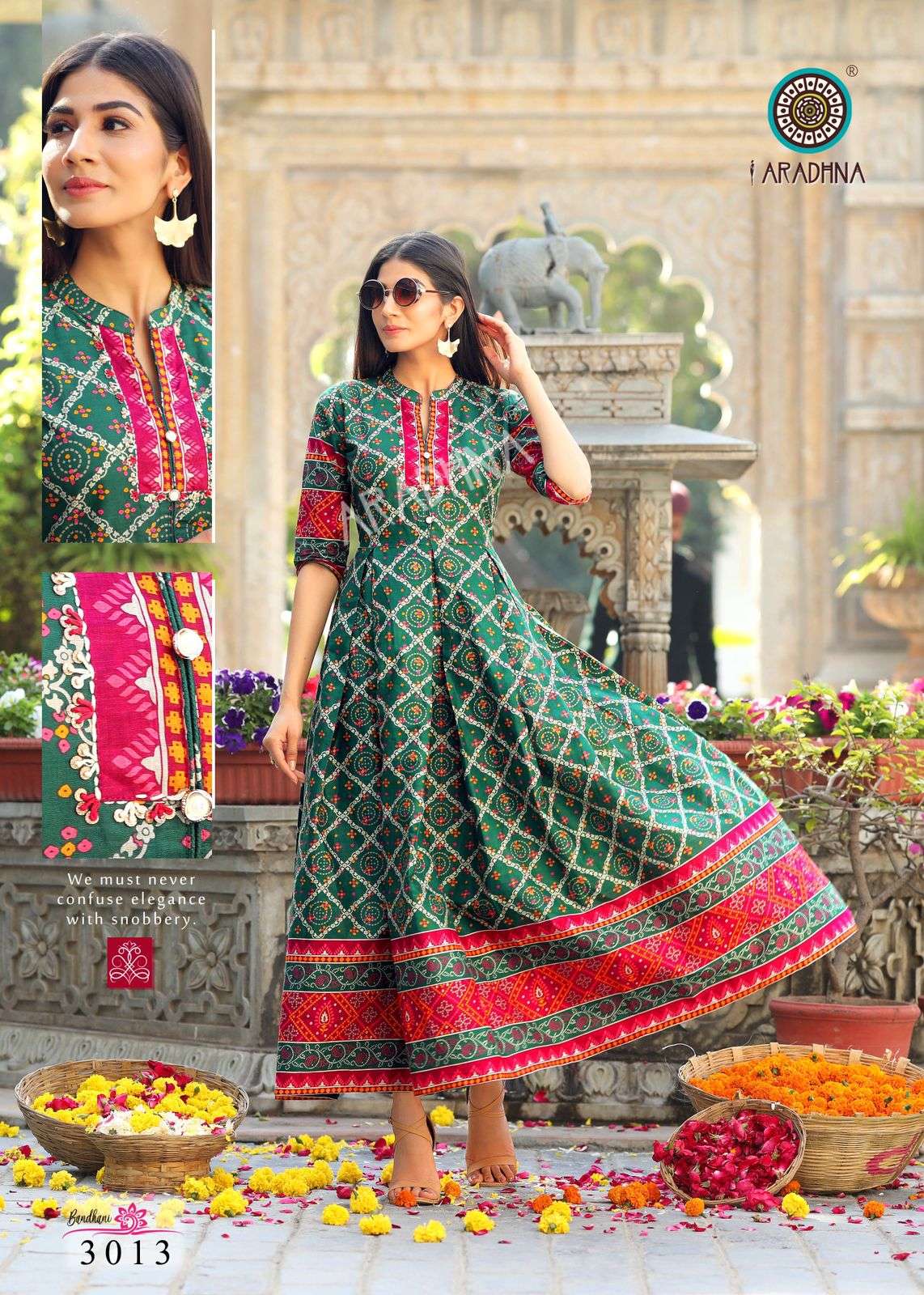 aradhna bandhani vol 3 cotton anarkali kurta best wholesale price