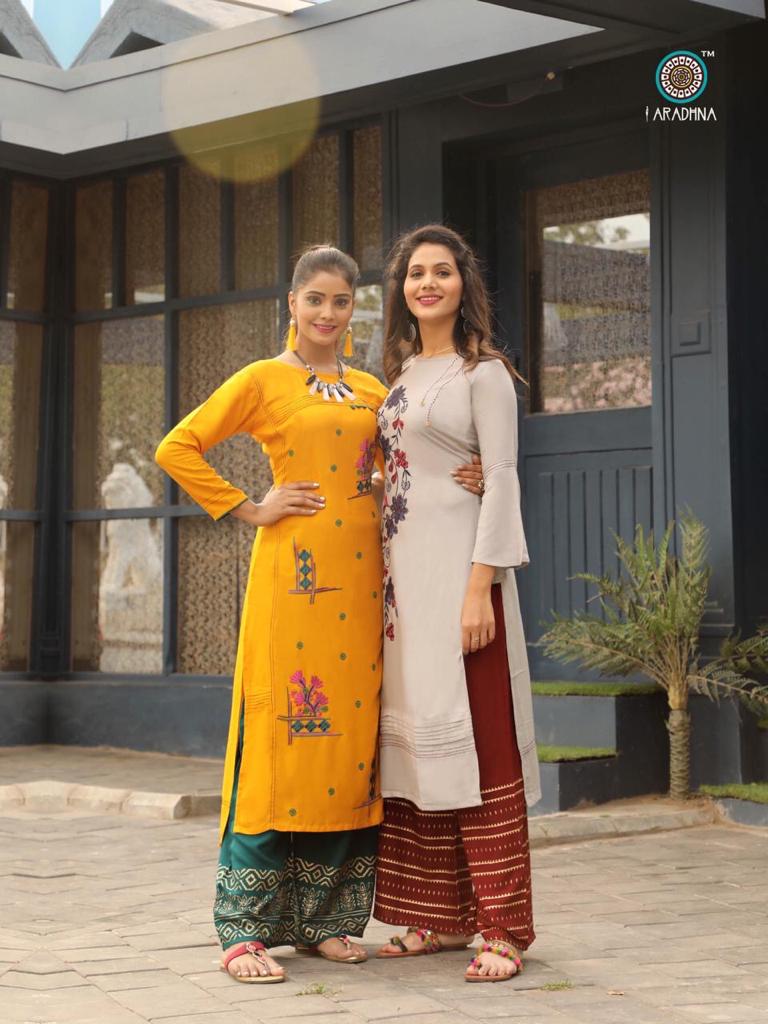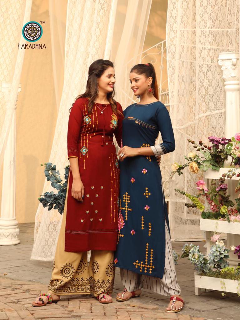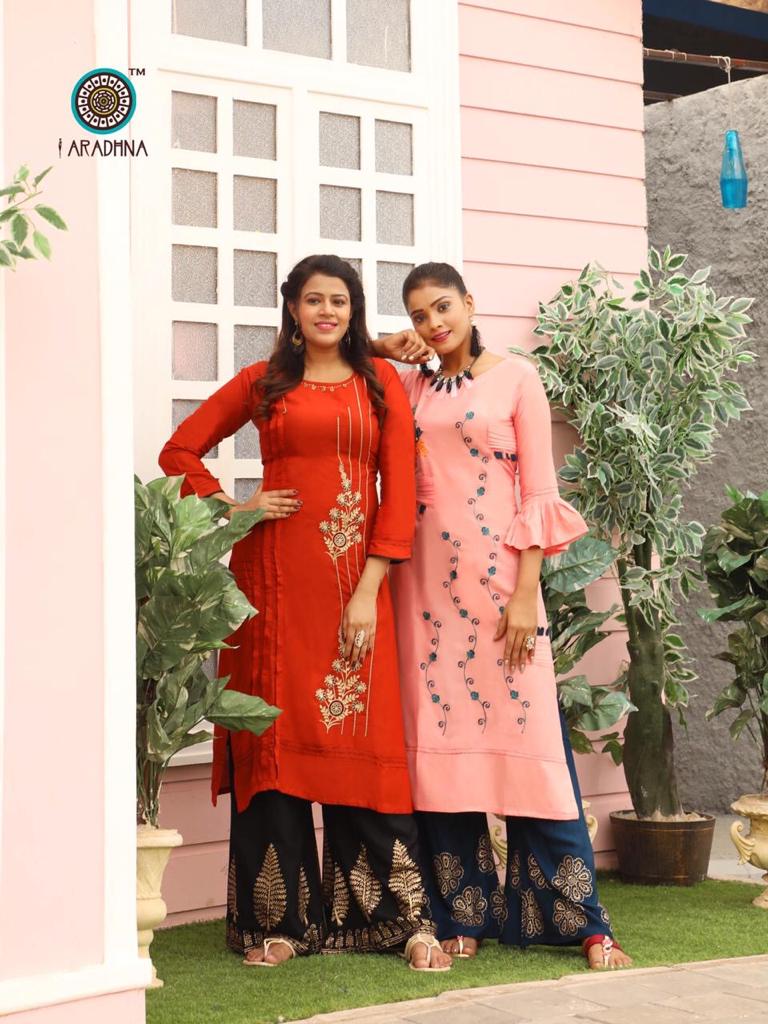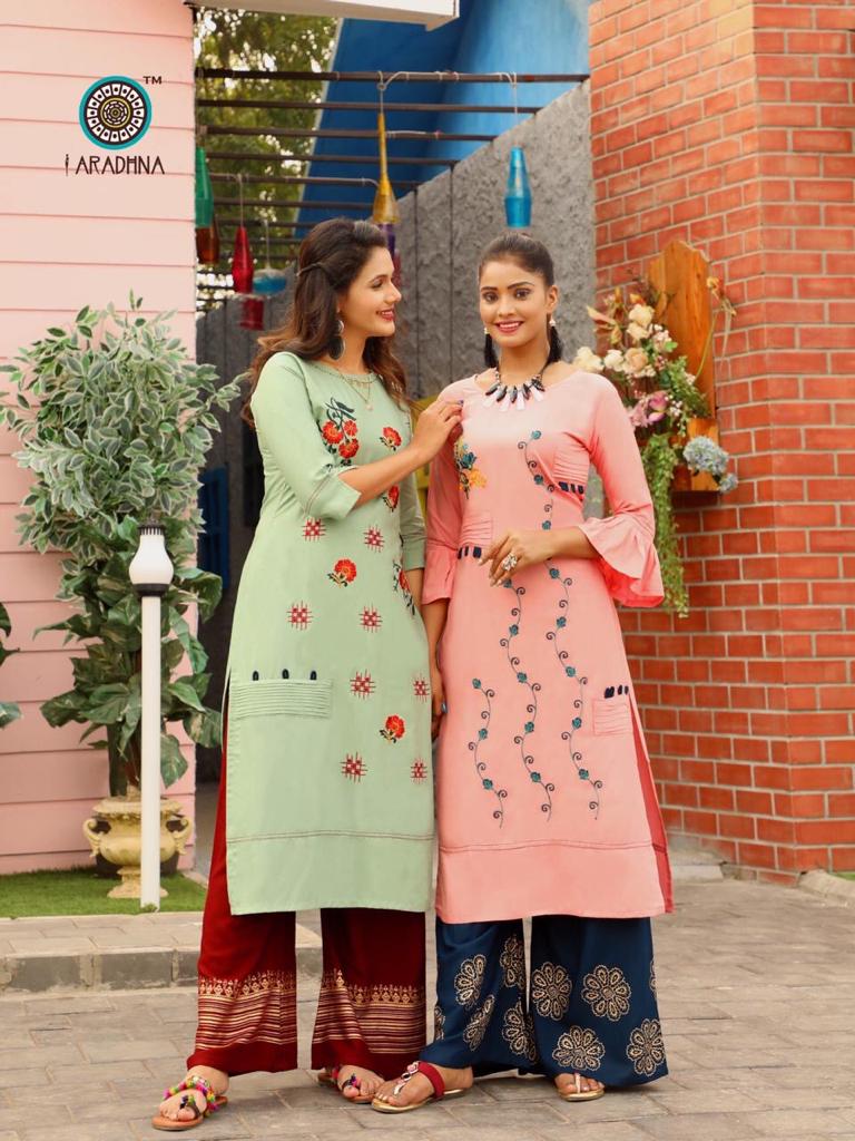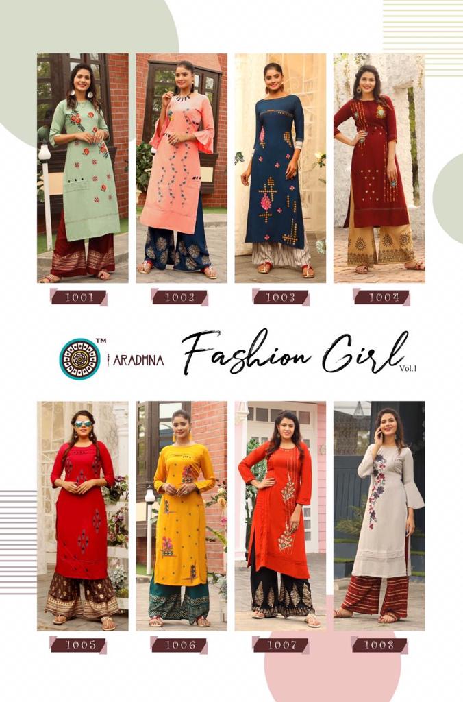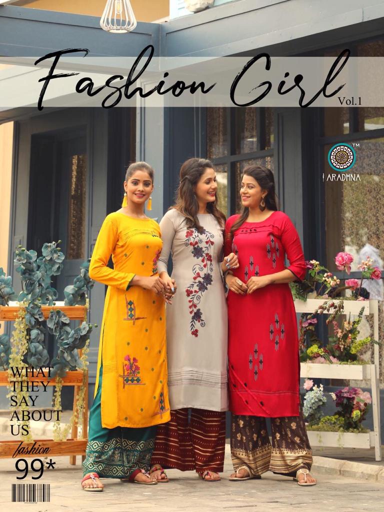 Aradhna Fashion Girl Vol 1 Rayon Embroidery Designer Kurti With Palazzo