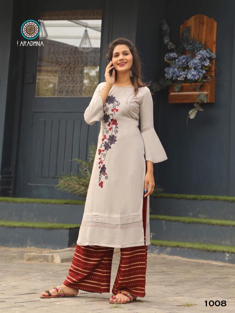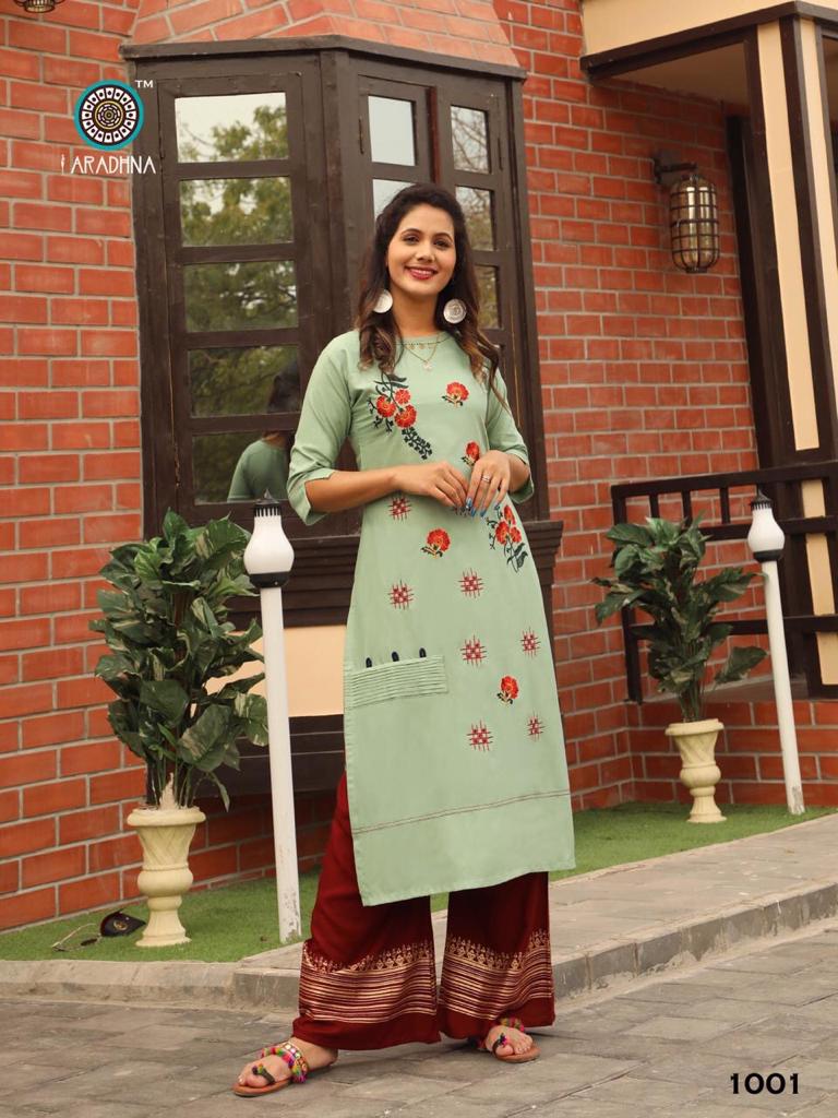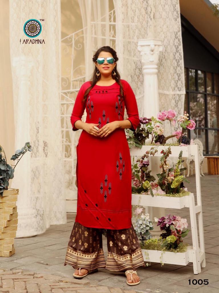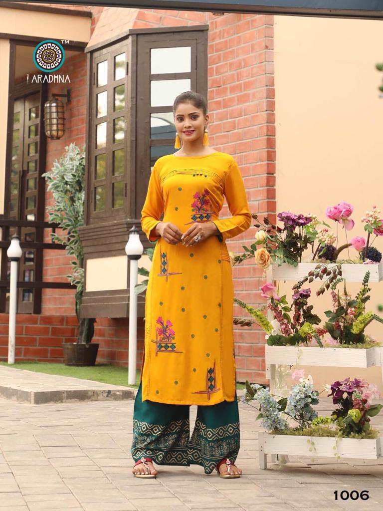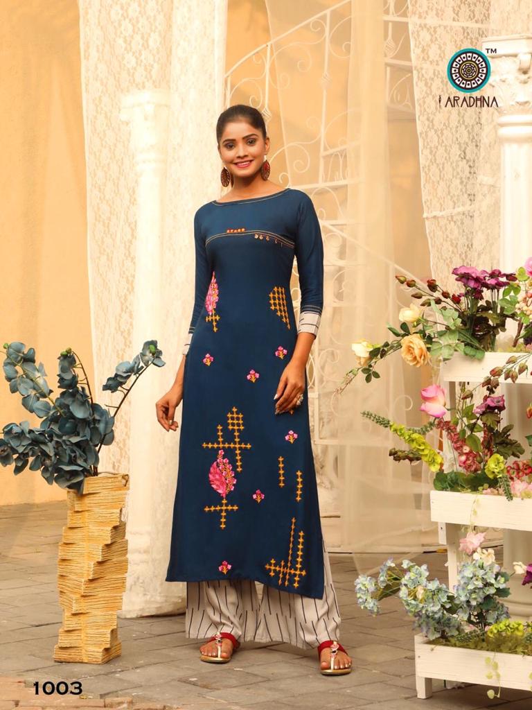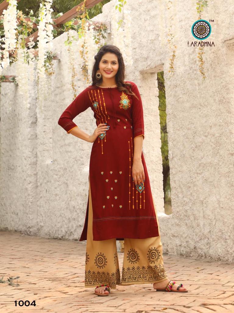Aradhna Fashion Girl Vol 1 Rayon Embroidery Designer Kurti With Palazzo