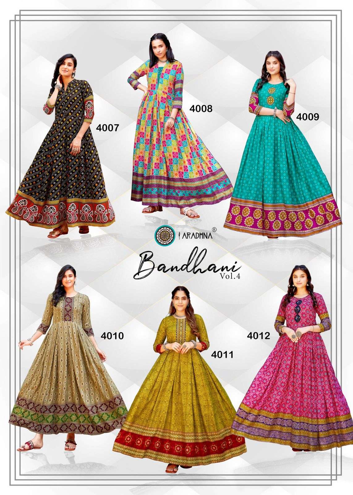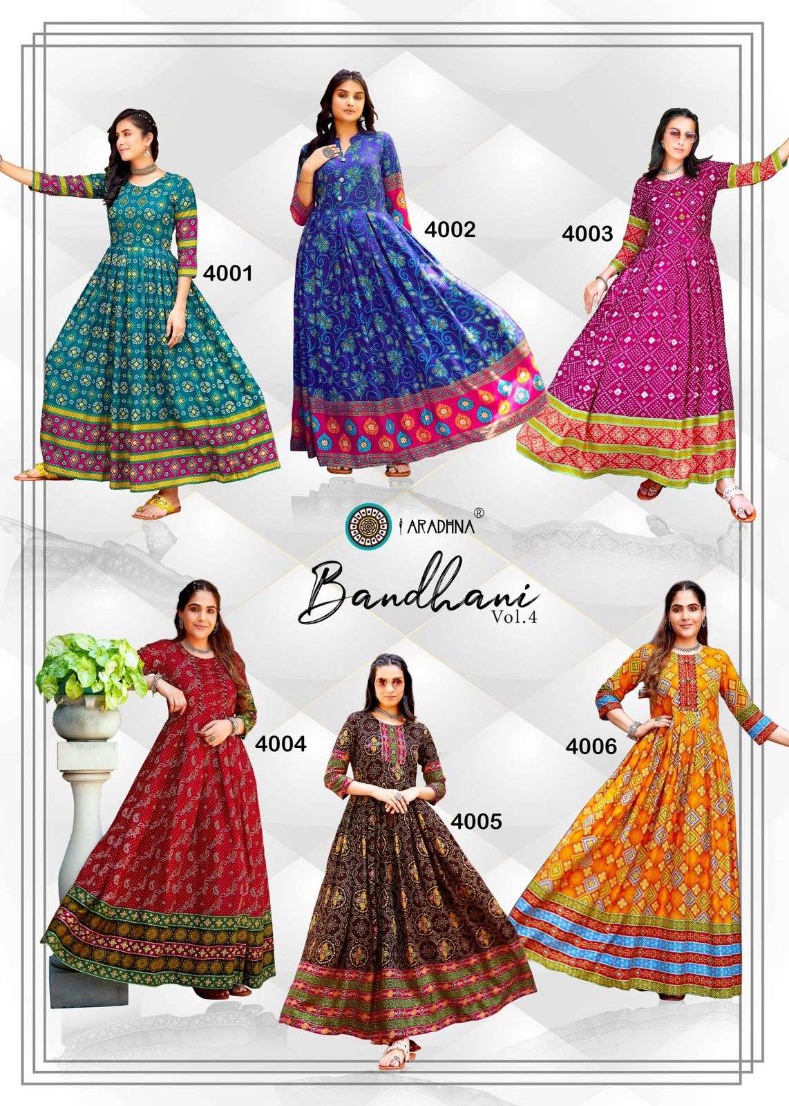 aradhna fashion present bandhani vol 4 bandhej print anarkali kurti wholesale rate