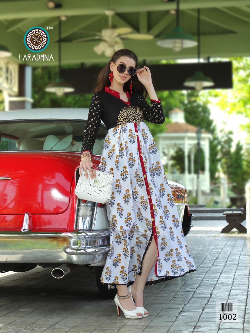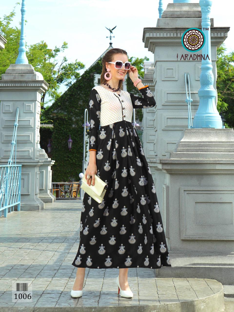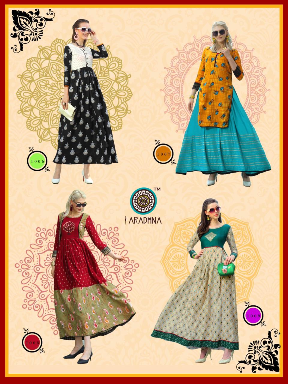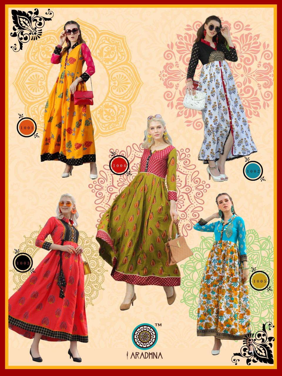 Aradhna Present Glamour Reyon Printed Long Gown Style Kurti Wholesaler