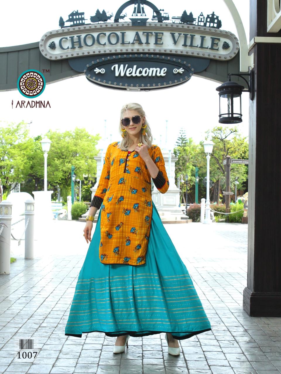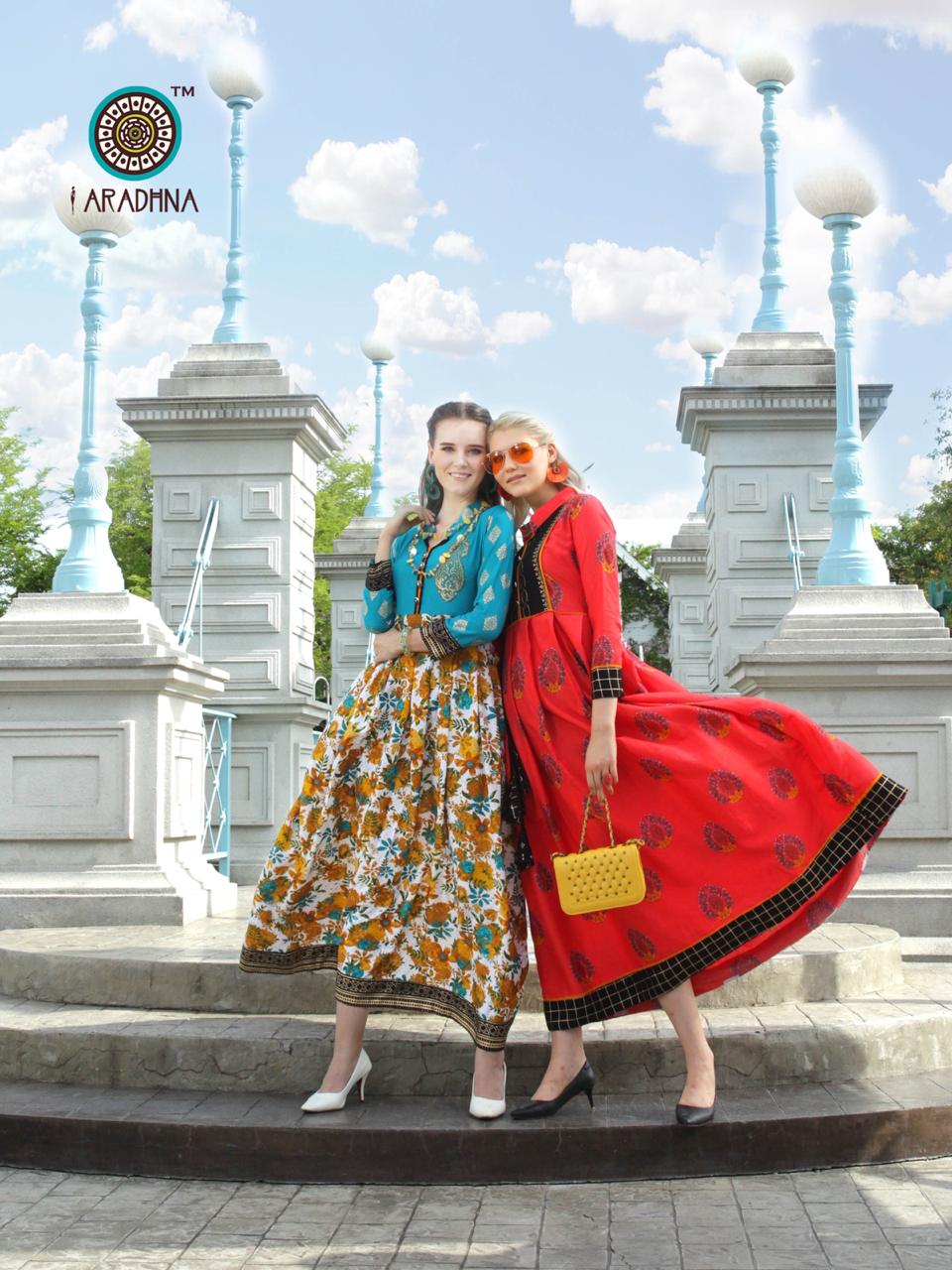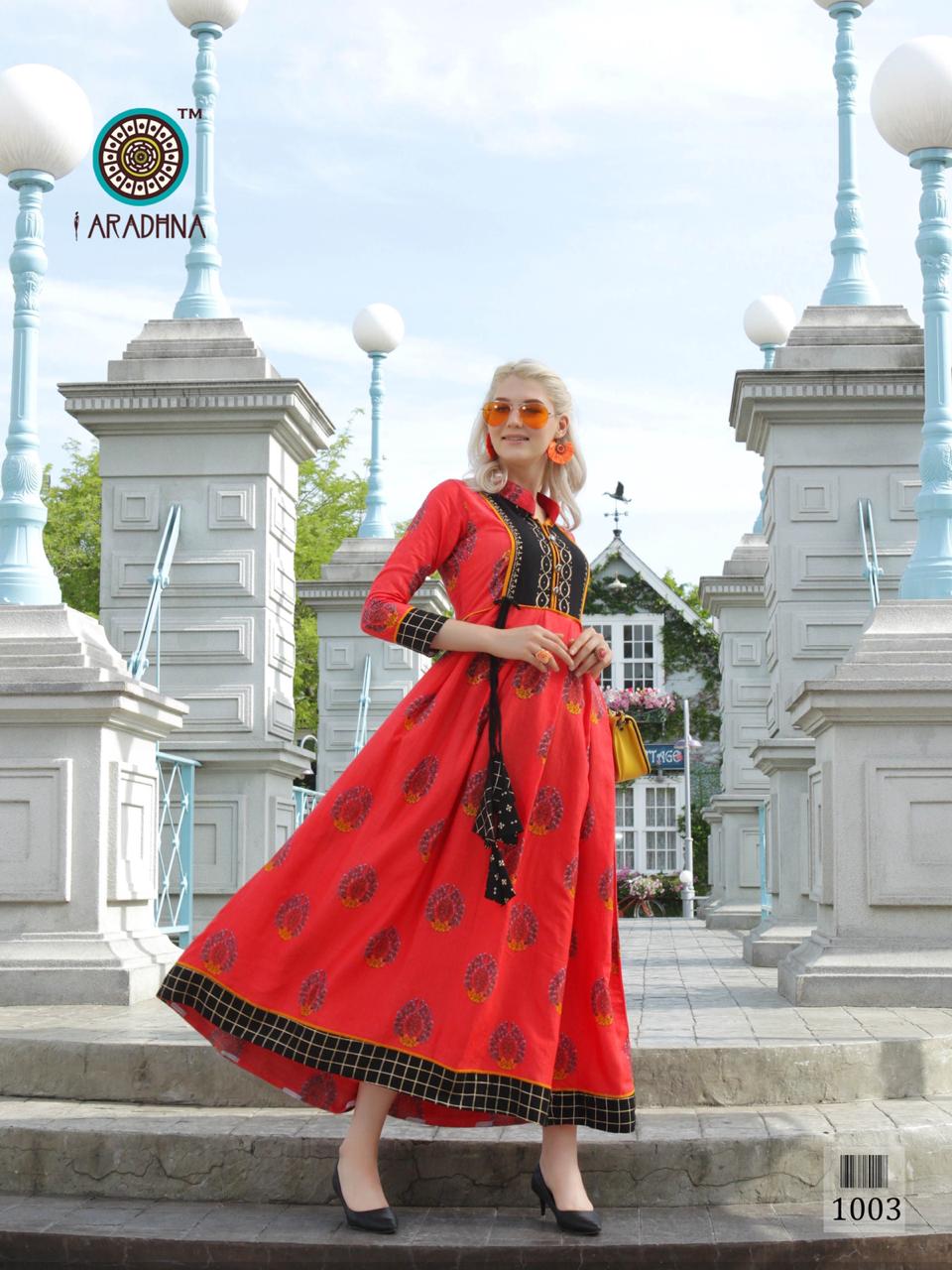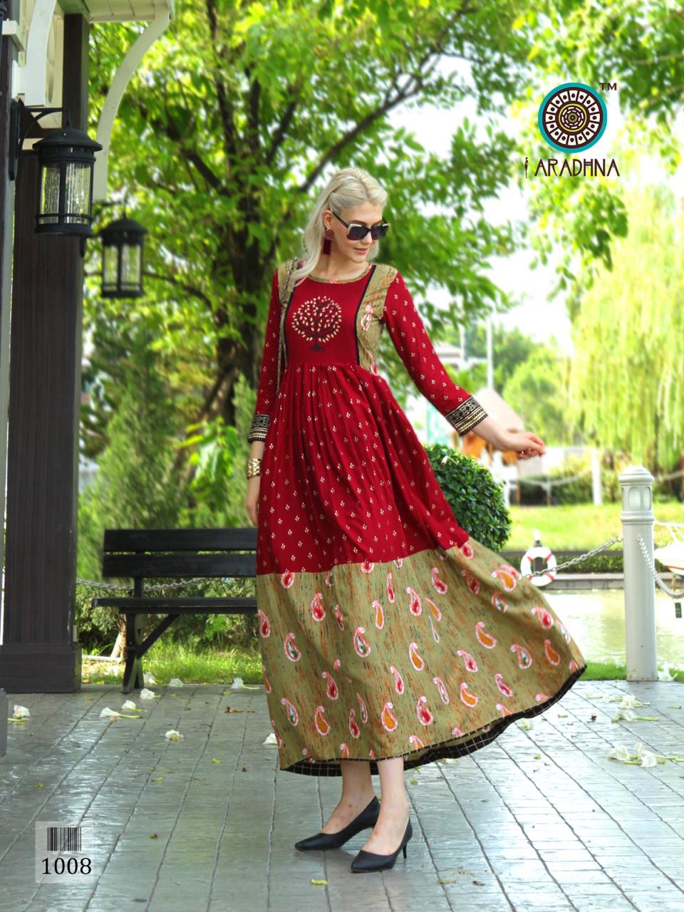 Aradhna Present Glamour Reyon Printed Long Gown Style Kurti Wholesaler