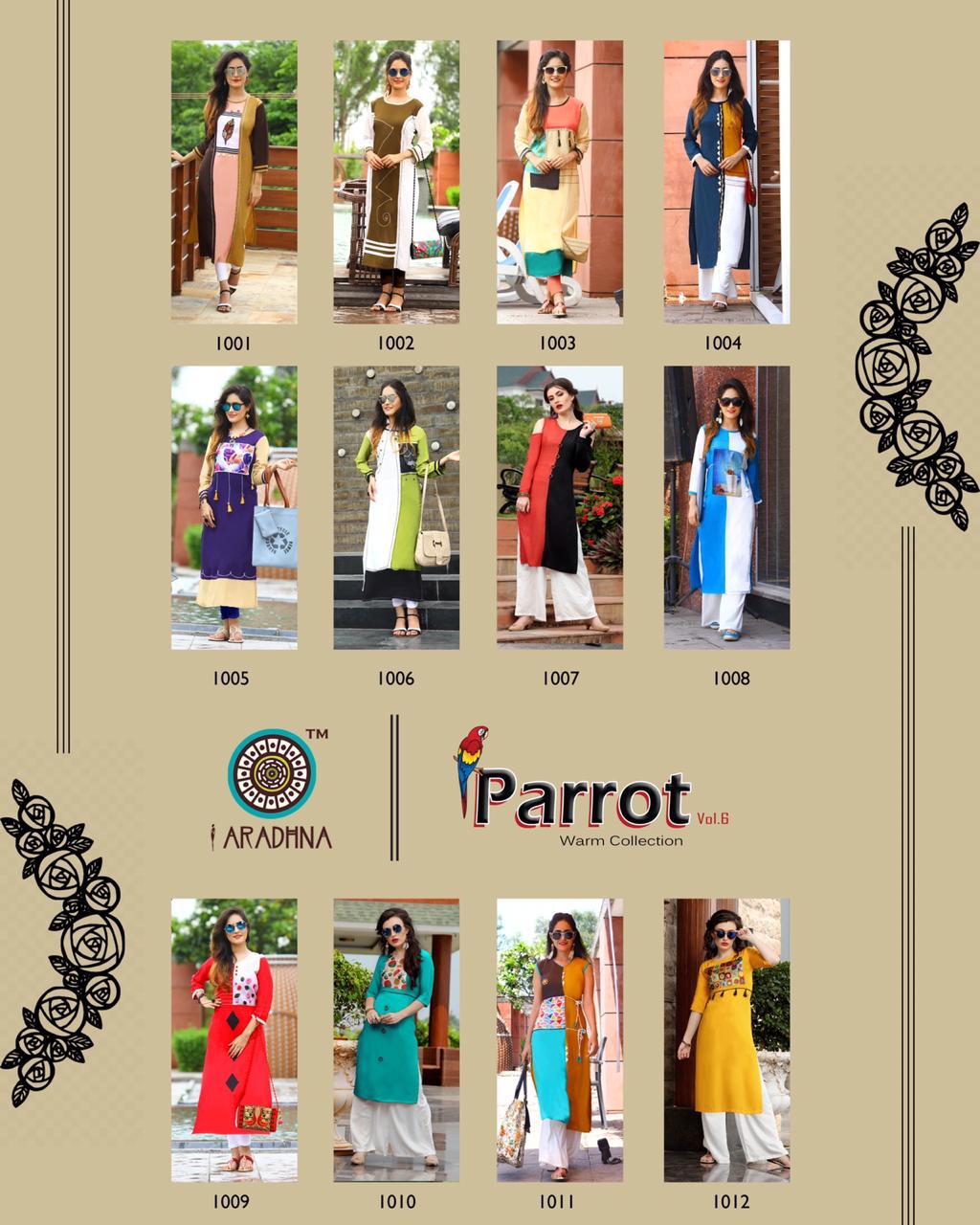 Aradhna Present Parrot Vol 6 Reyon Formal Wear Kurti Collection