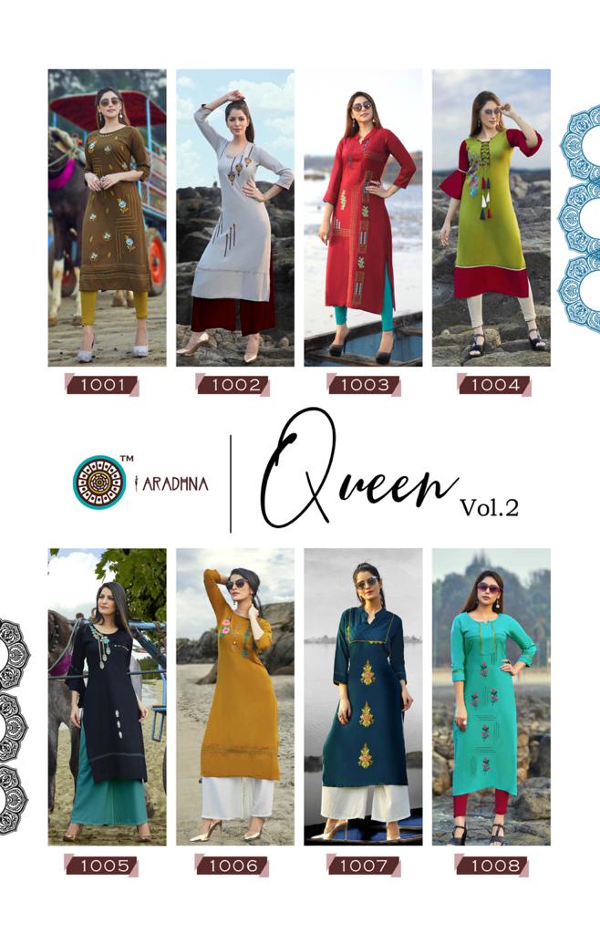 Aradhna Queen Vol 2 Rayon Embroidery Formal Wear Summer Kurtis