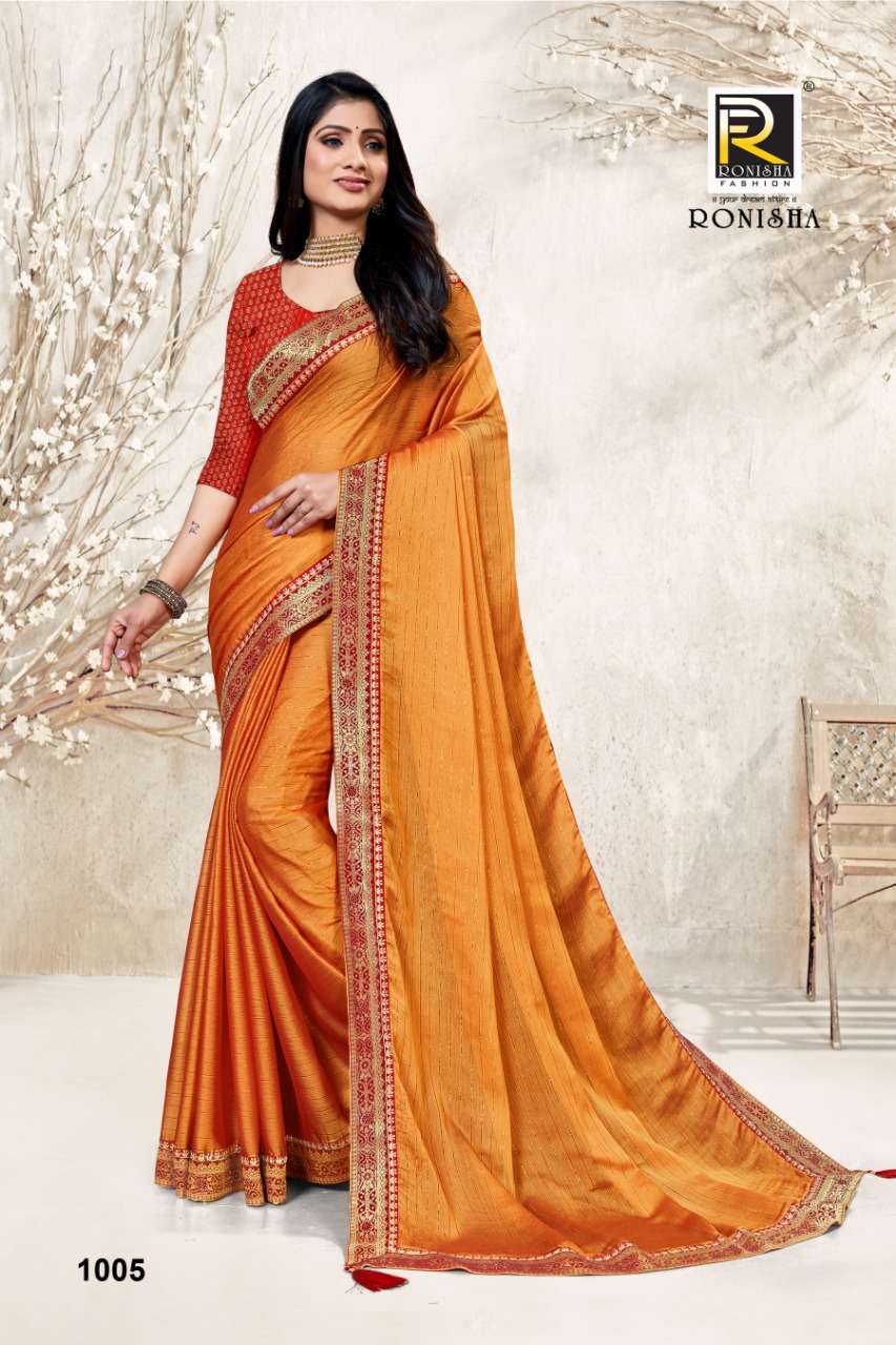Archana by ranjna saree fastive wear rainbo jari stylish border blouse saree Collection