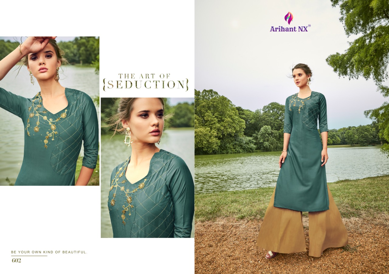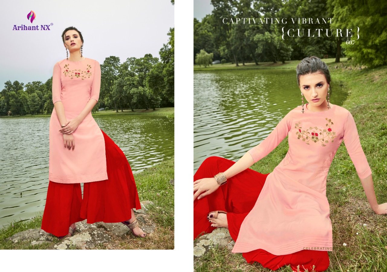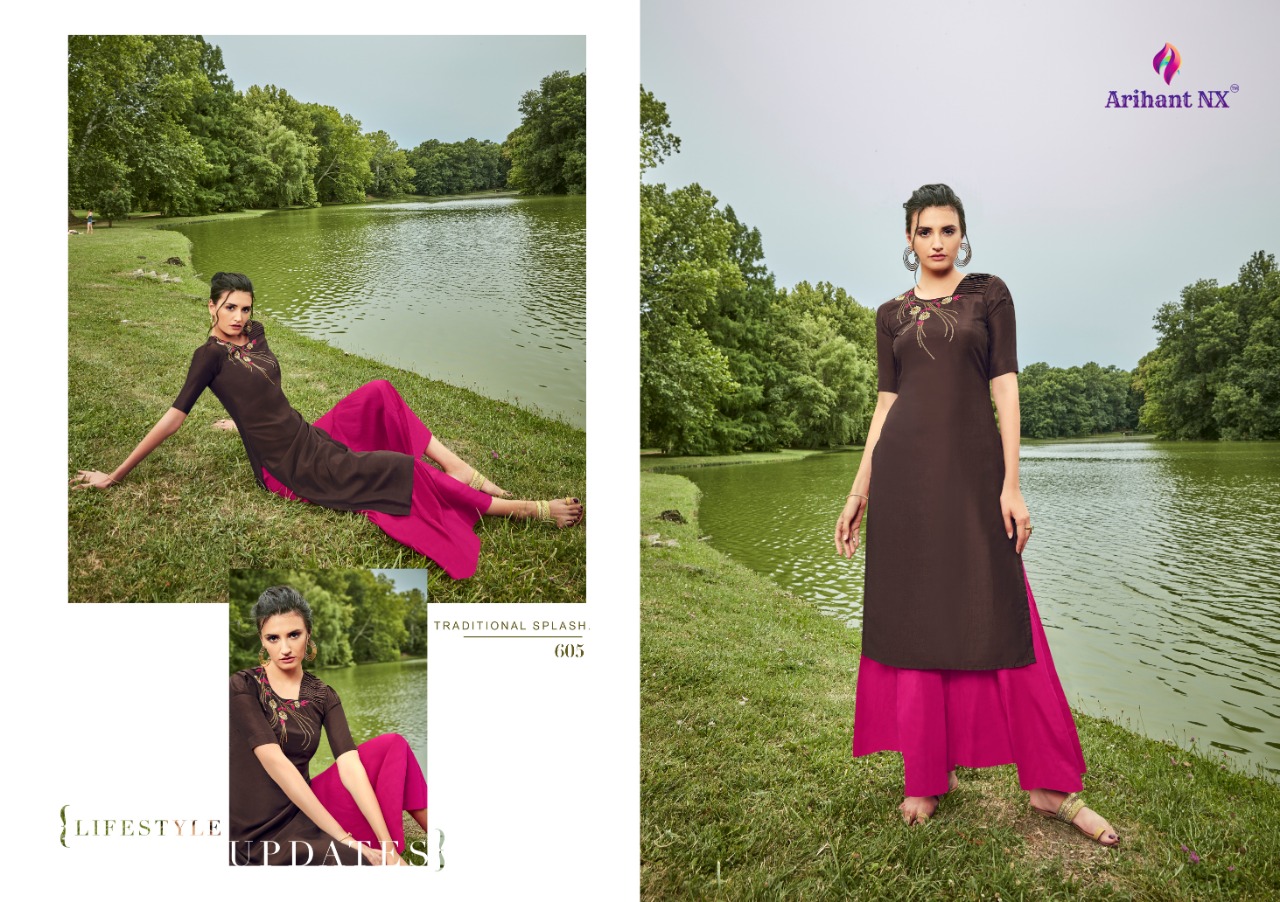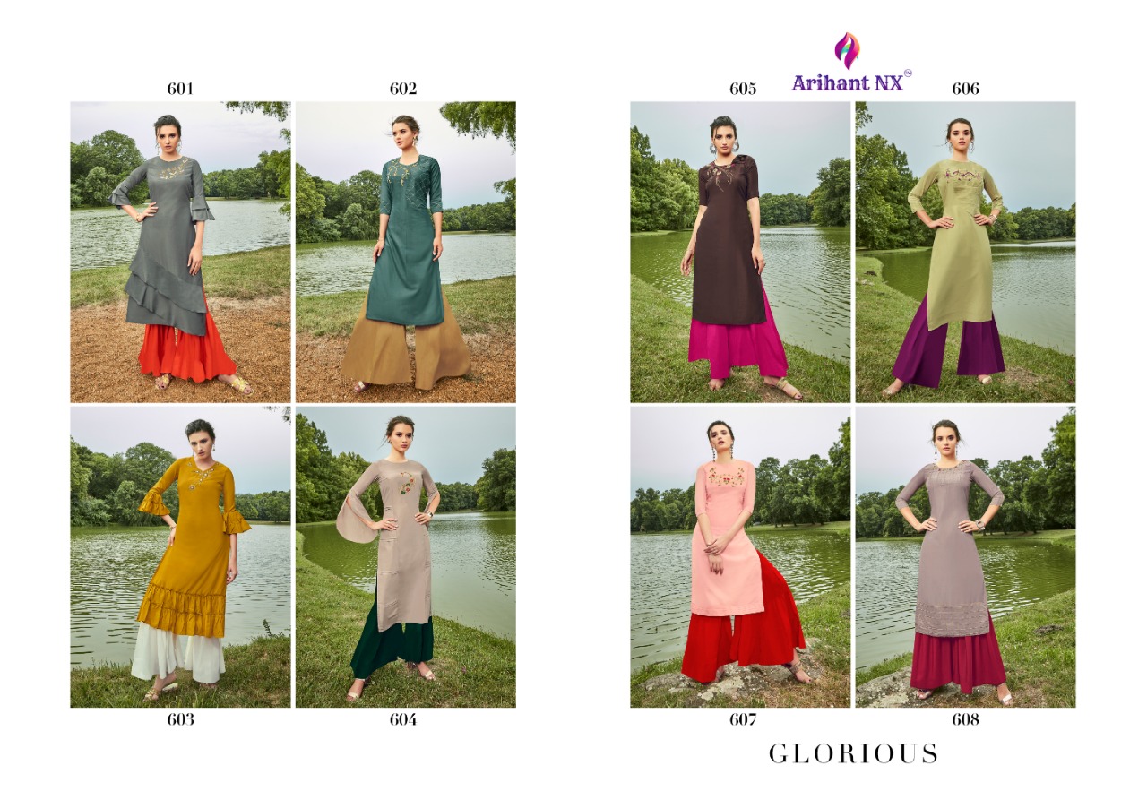 Arihant Designer Glorious Maslin Silk 601-608 Series Top With Plazzo Readymade Catlog