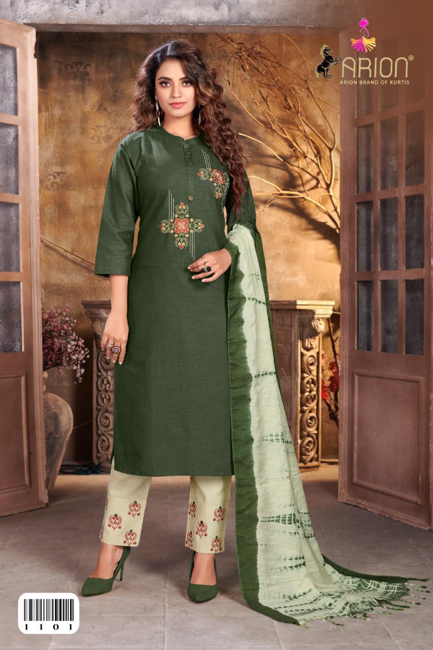 Arion Launch Surbhi Vol 1 Linen Readymade Top Bottom With Dupatta Set