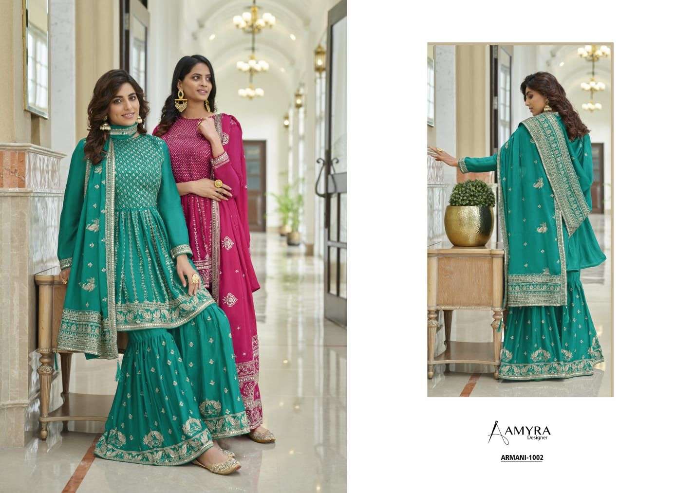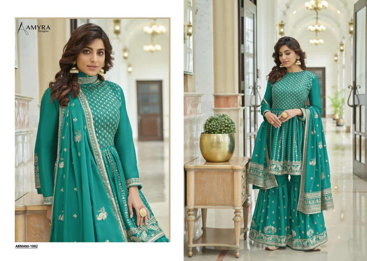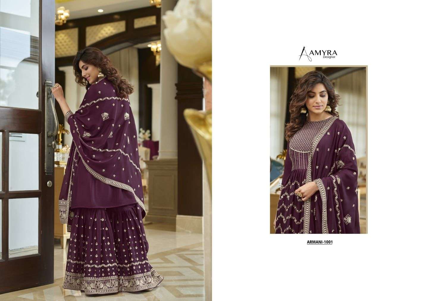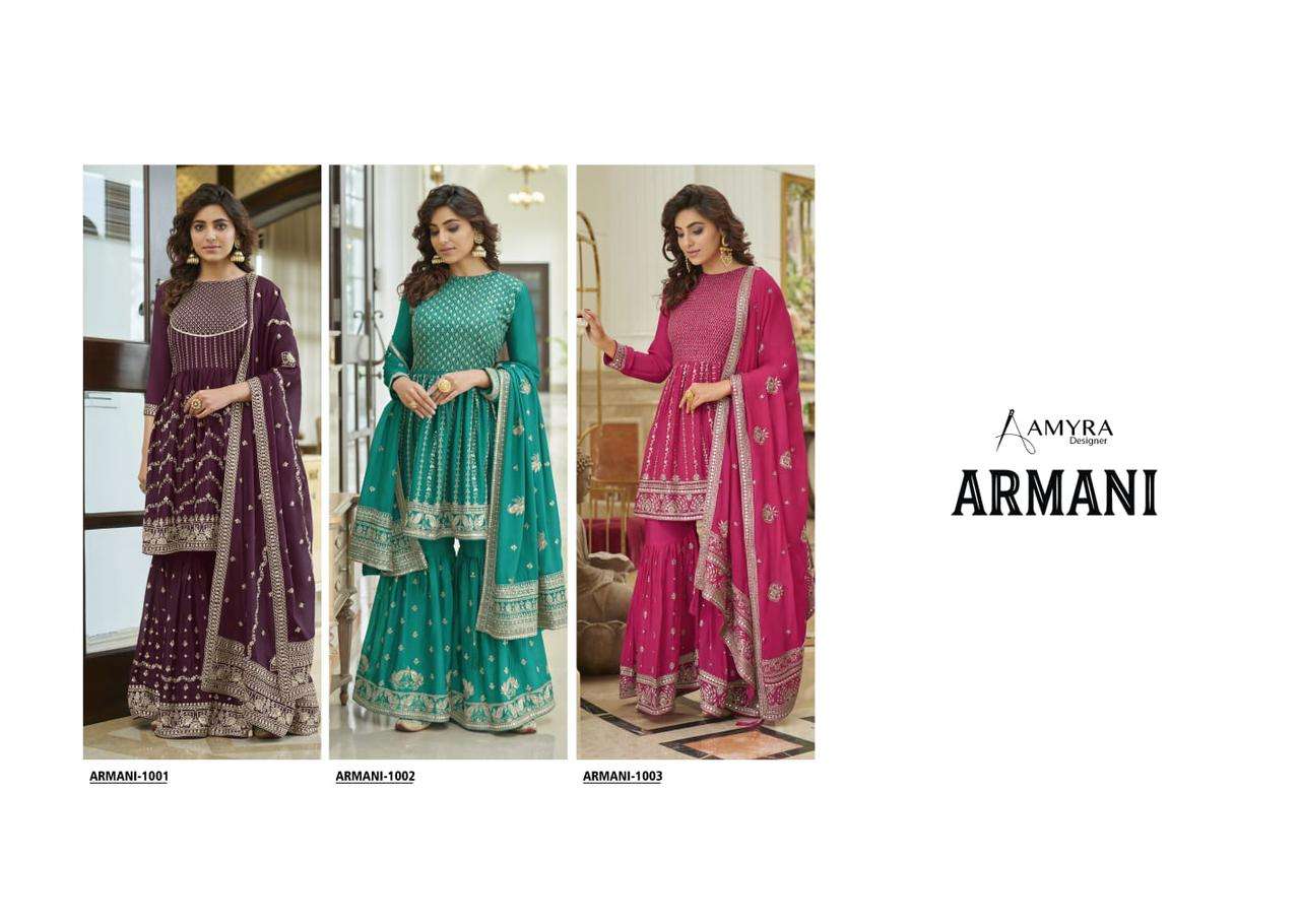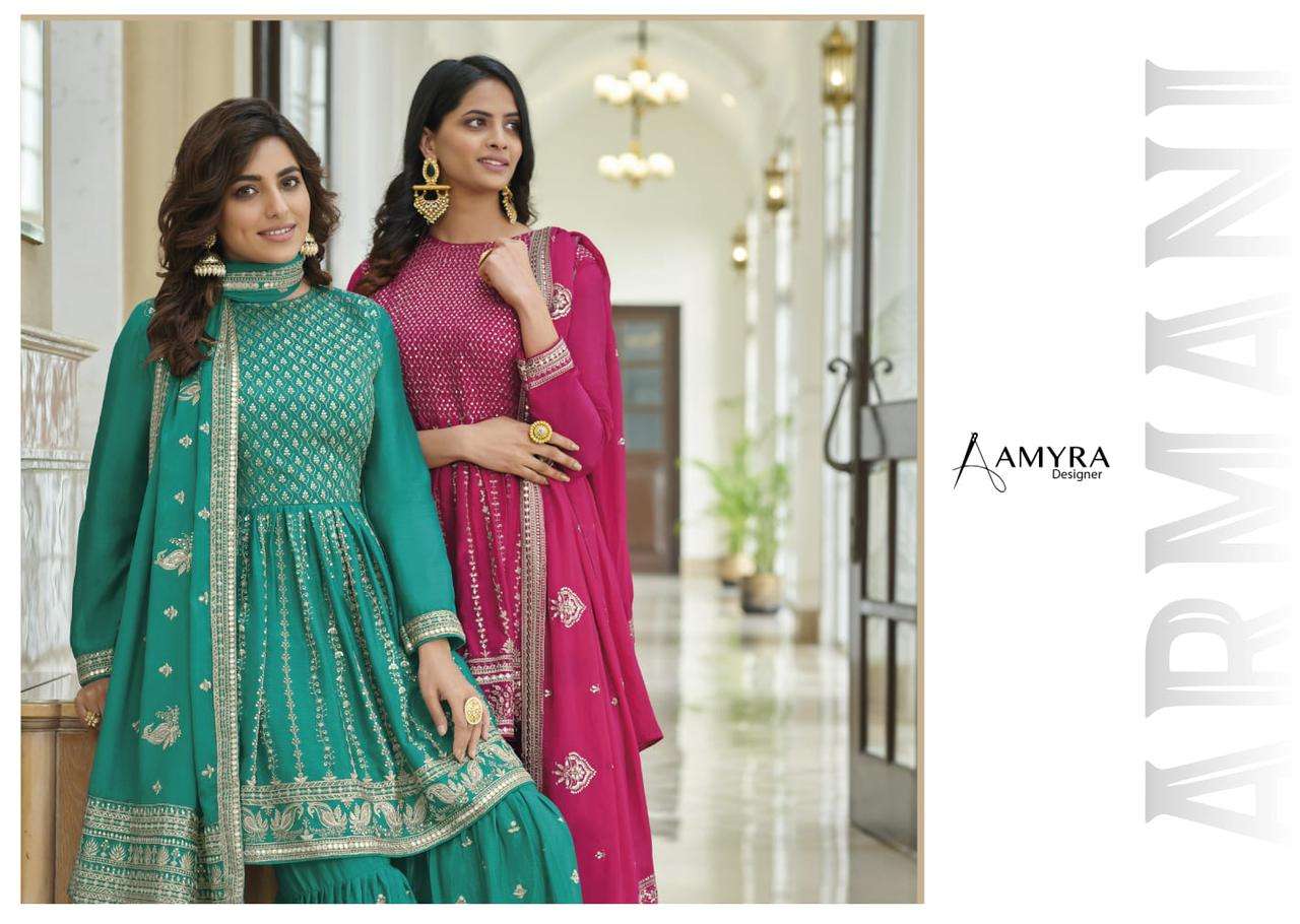 armani by amyra chinon embroidery readymade top with garara & dupatta