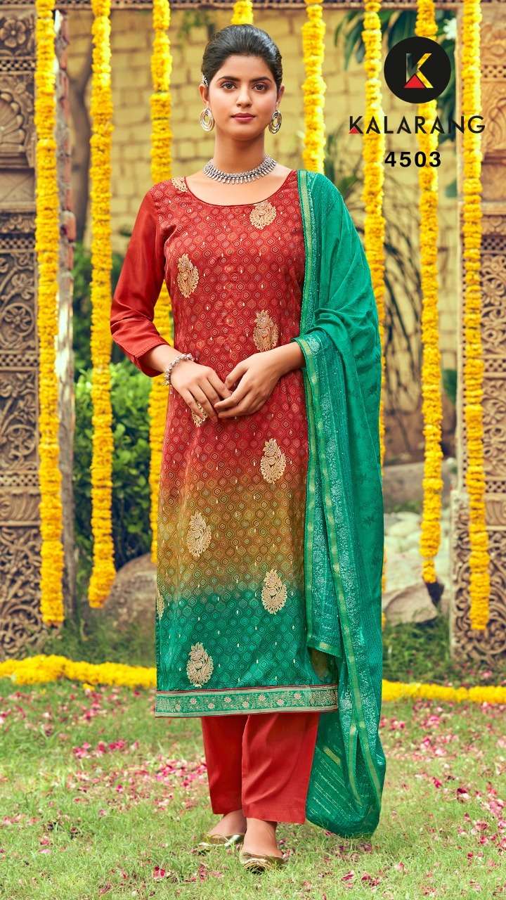 Kalarang Fashion Presents Latest Collection Launched on 08-09-2022. Presenting Beautiful collection of 4 PCS with Unstitched .