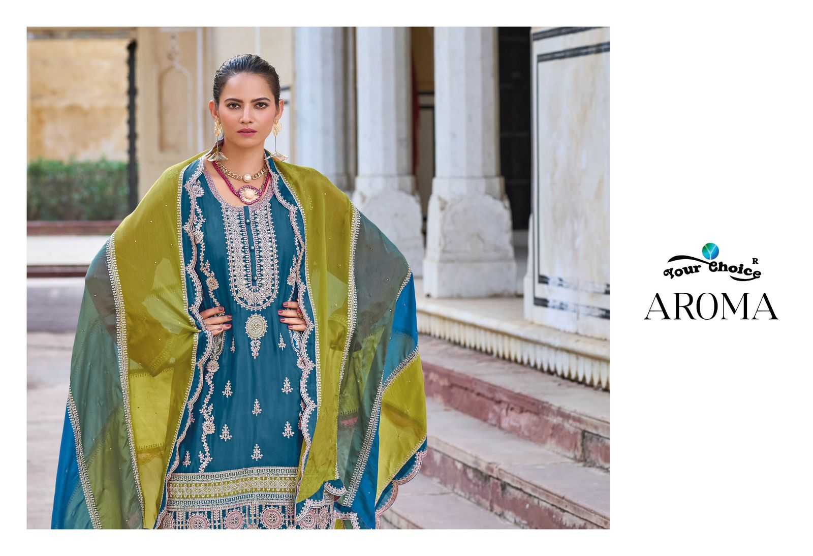 Your choice®️©️ Catlog ———AROMA Fabrics—👚Real Chinon Rate ——-2895/- Des———-3 pcs only Notes ——-Fully Readymade Dishpatching- Saturday |